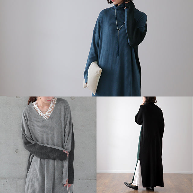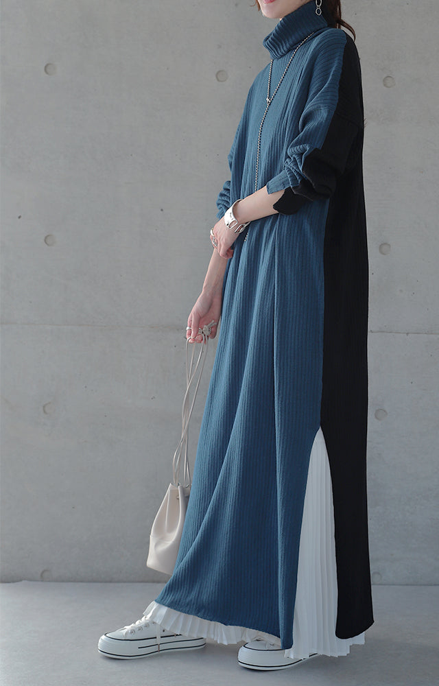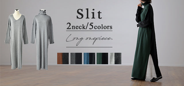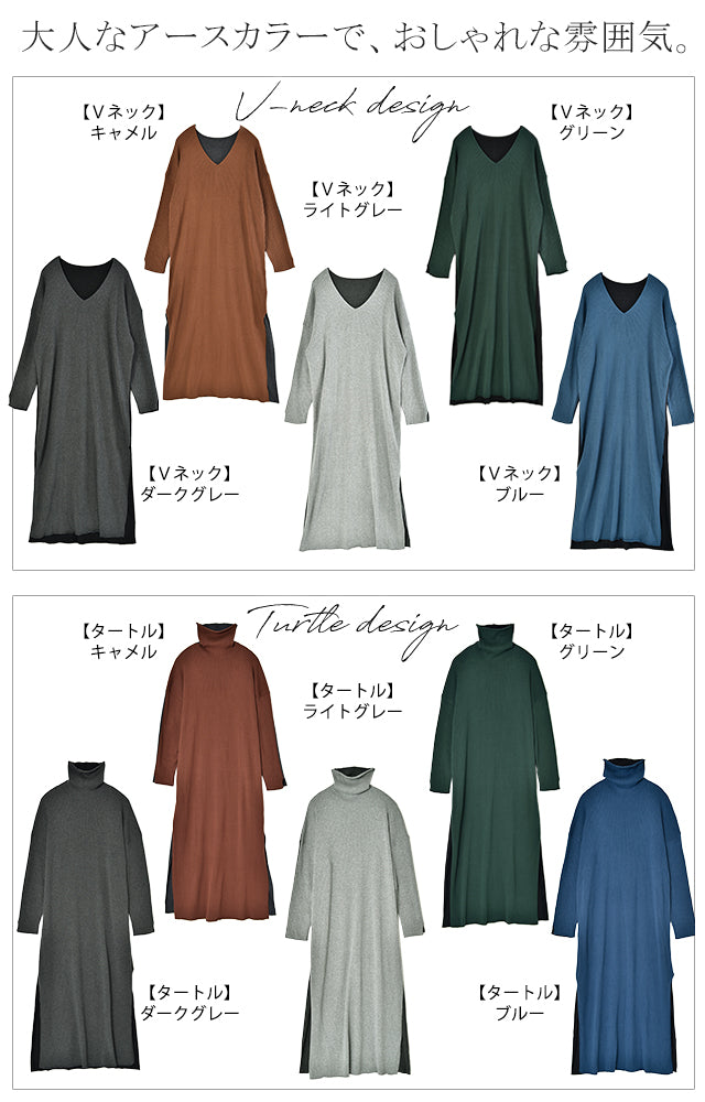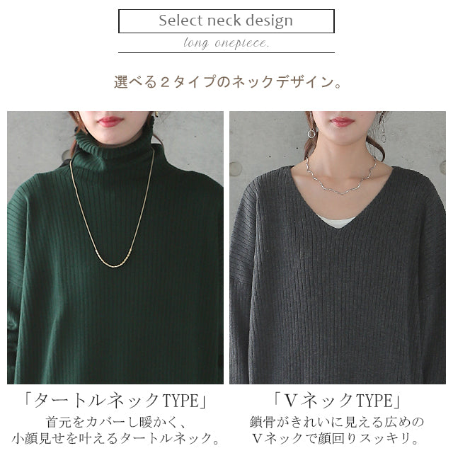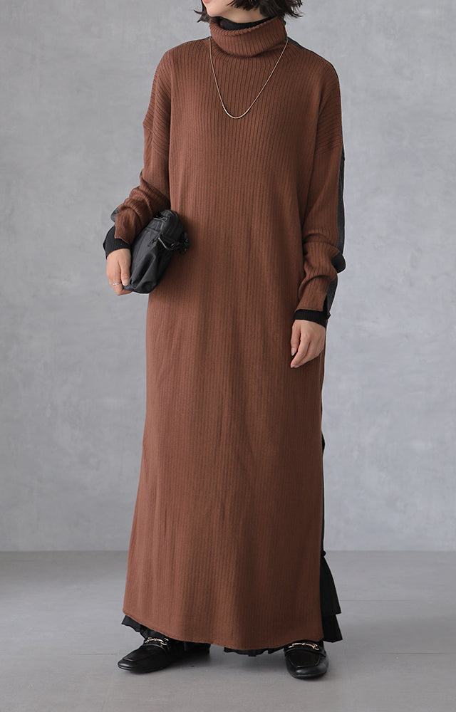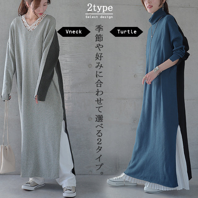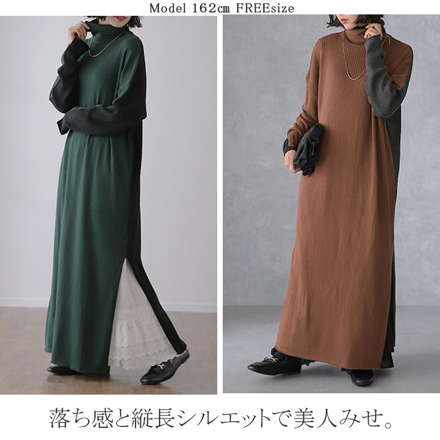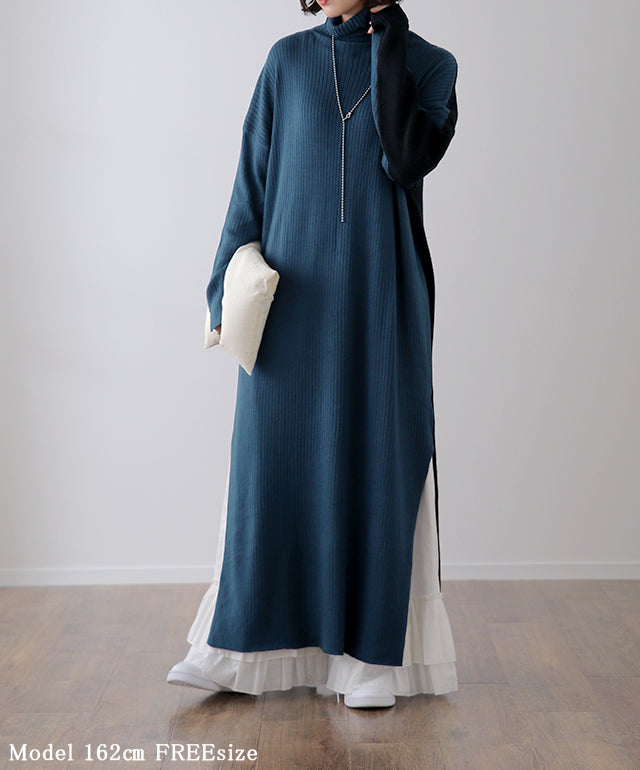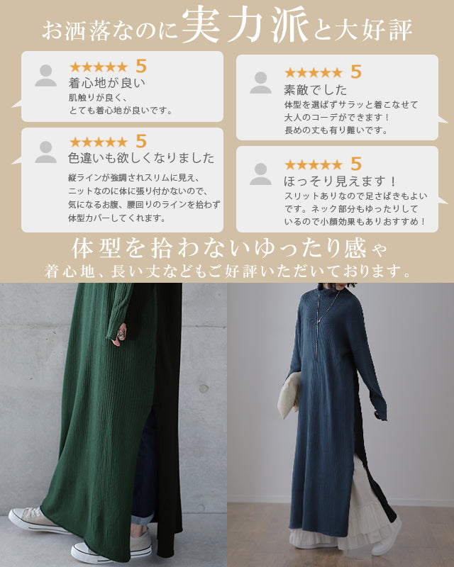 ニットワンピース ニット タートルネック ハイネック ワンピース ロングワンピース ロングワンピ ニットワンピ スリットワンピース リブニット リブ スリット 長袖 ドロップショルダー きれいめ レディース 大きいサイズ 体型カバー 春 夏