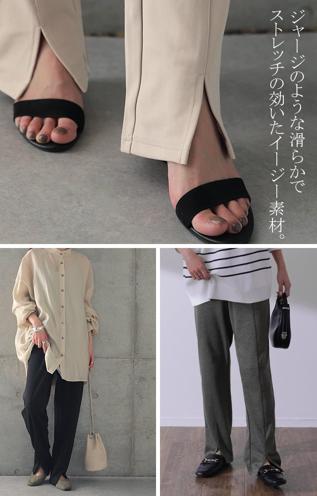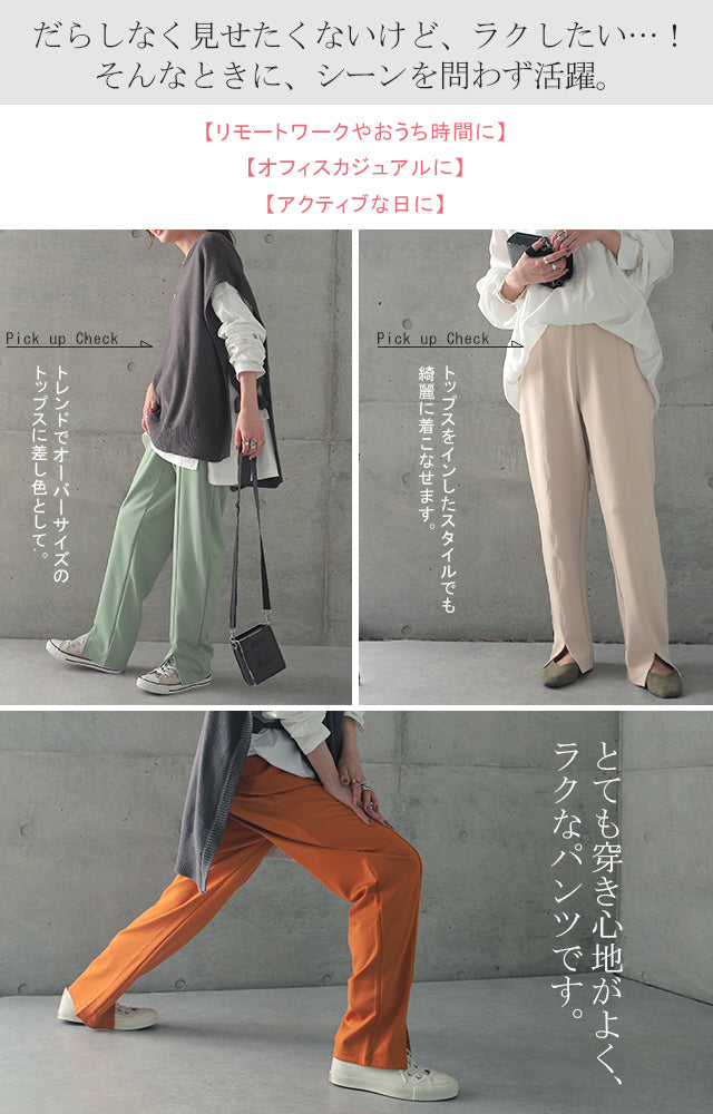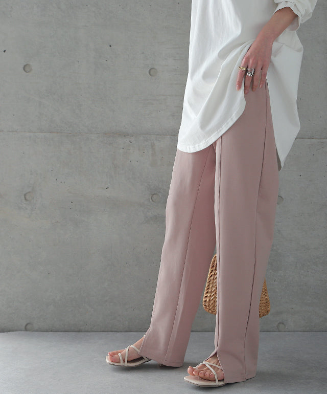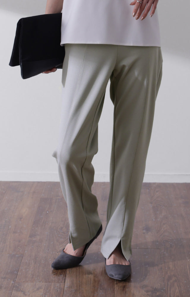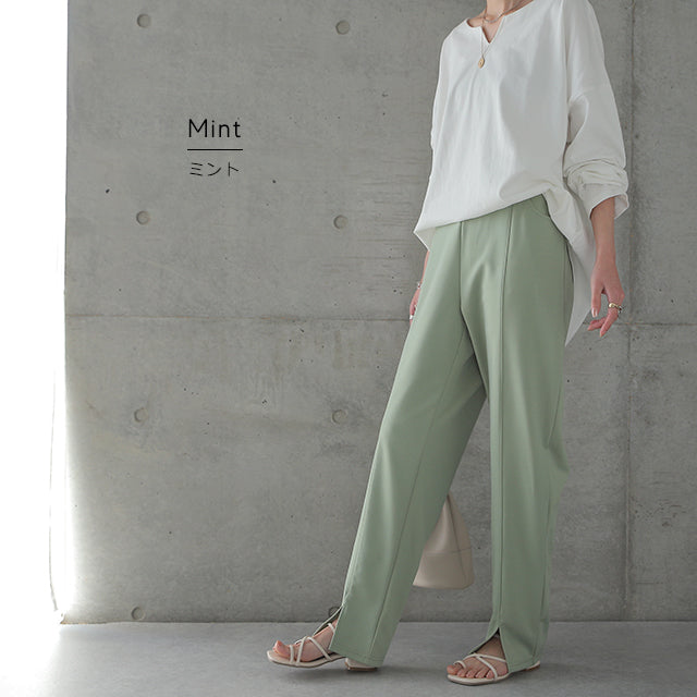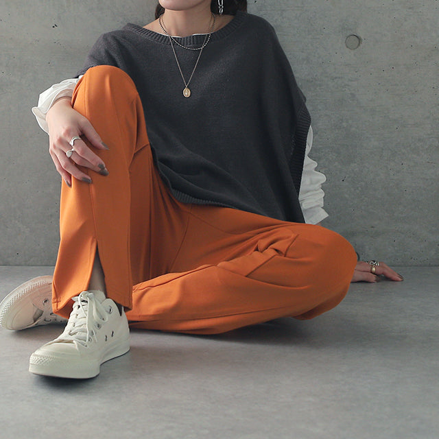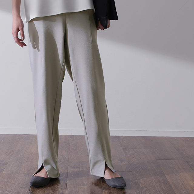 シンプルながら、裾前スリットがアクセントになったイージーパンツ。ストレッチの効いた素材を使用しているので、穿き心地も抜群。リラックスした雰囲気を演出しながらも、こなれた雰囲気で着こなしていただけます。■モデル着用アイテム ⇒ トップス■モデル着用アイテム ⇒ トップス■モデル着用アイテム ⇒ インナー / アウター■モデル着用アイテム ⇒ トップス※モデル着用商品は在庫切れ・販売終了・リンク切れの場合がございます。
