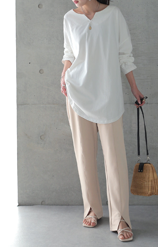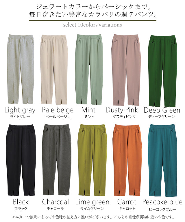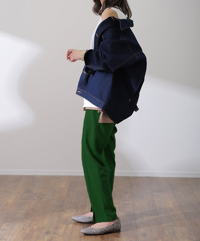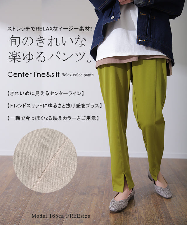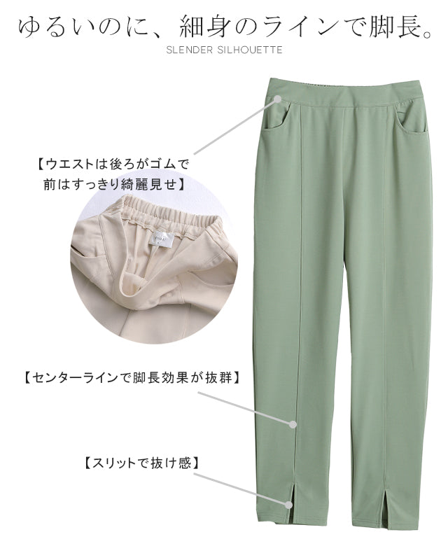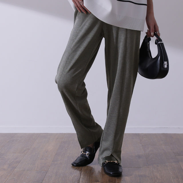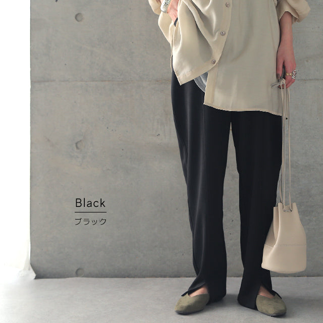 シンプルながら、裾前スリットがアクセントになったイージーパンツ。ストレッチの効いた素材を使用しているので、穿き心地も抜群。リラックスした雰囲気を演出しながらも、こなれた雰囲気で着こなしていただけます。■モデル着用アイテム ⇒ トップス■モデル着用アイテム ⇒ トップス■モデル着用アイテム ⇒ インナー / アウター■モデル着用アイテム ⇒ トップス※モデル着用商品は在庫切れ・販売終了・リンク切れの場合がございます。