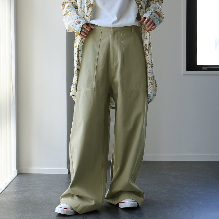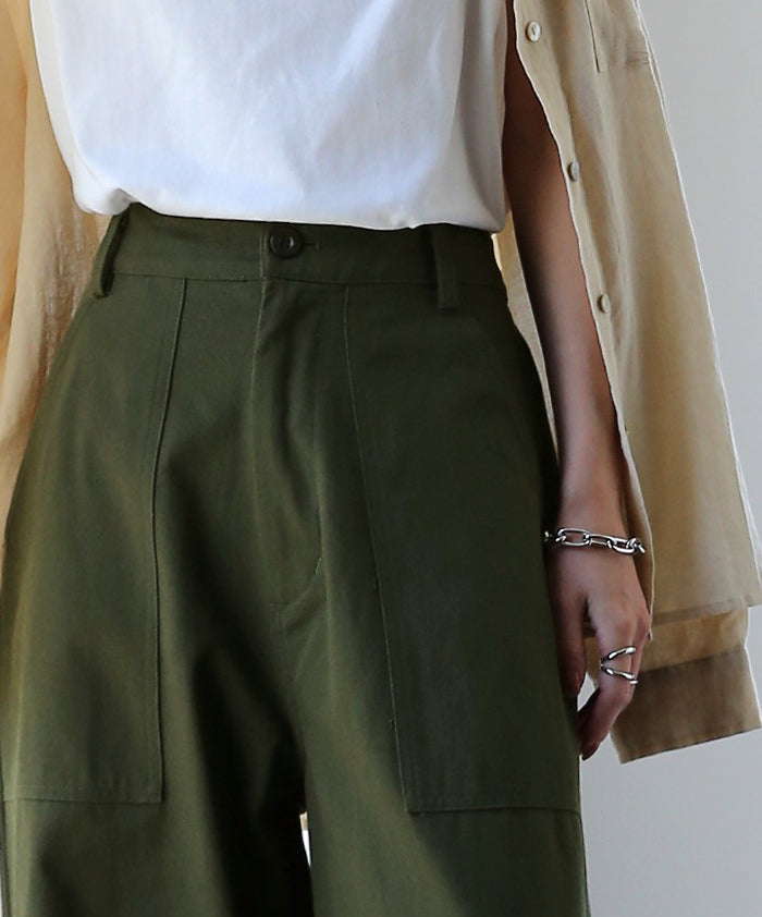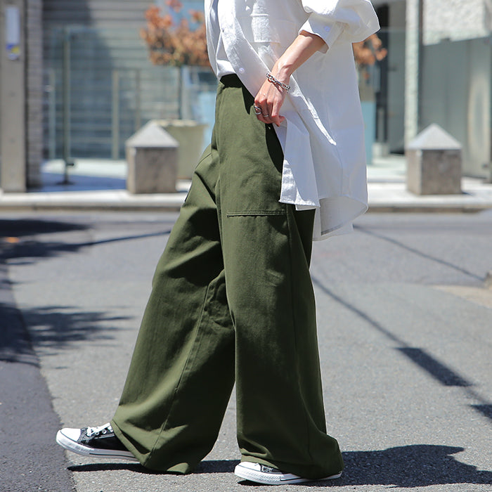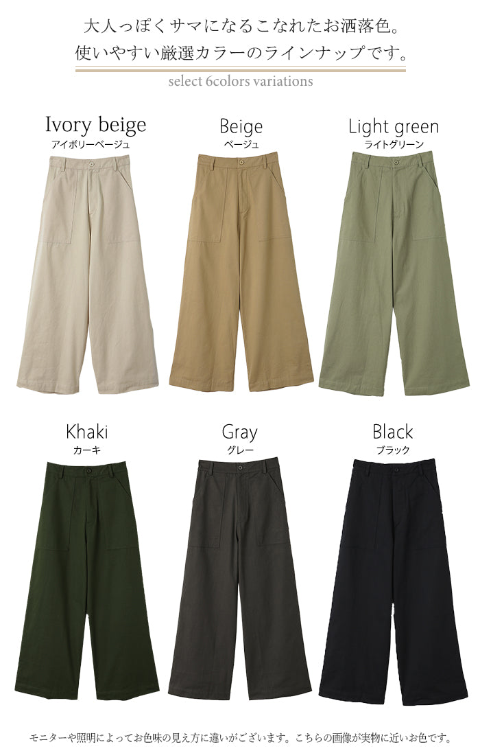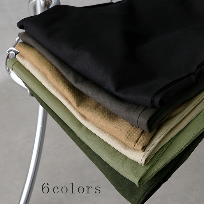 素材は柔らかい質感でしなやかなチノ素材を使用。ハードな印象を持ちやすいベイカーパンツですが、穿きやすさはしっかり追及しました。お色味は形を生かすミリタリールックのアースカラーを採用。メンズライクな印象がコーディネートに奥行きをプラスしてくれます。