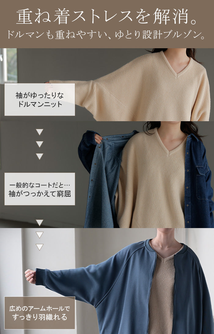 2025AW新作 アウター ブルゾン レディース ロング ■一部12月下旬入荷 ジャケット ジャンパー ボリュームスリーブ MA-1 裏毛 リブ ドルマン ラグランスリーブ 羽織 耐久性 速乾 ライトアウター オーバーサイズ 大きいサイズ 体型カバー お尻が隠れる MA1 おしゃれ 黒 グレー 秋 冬 HUG.U