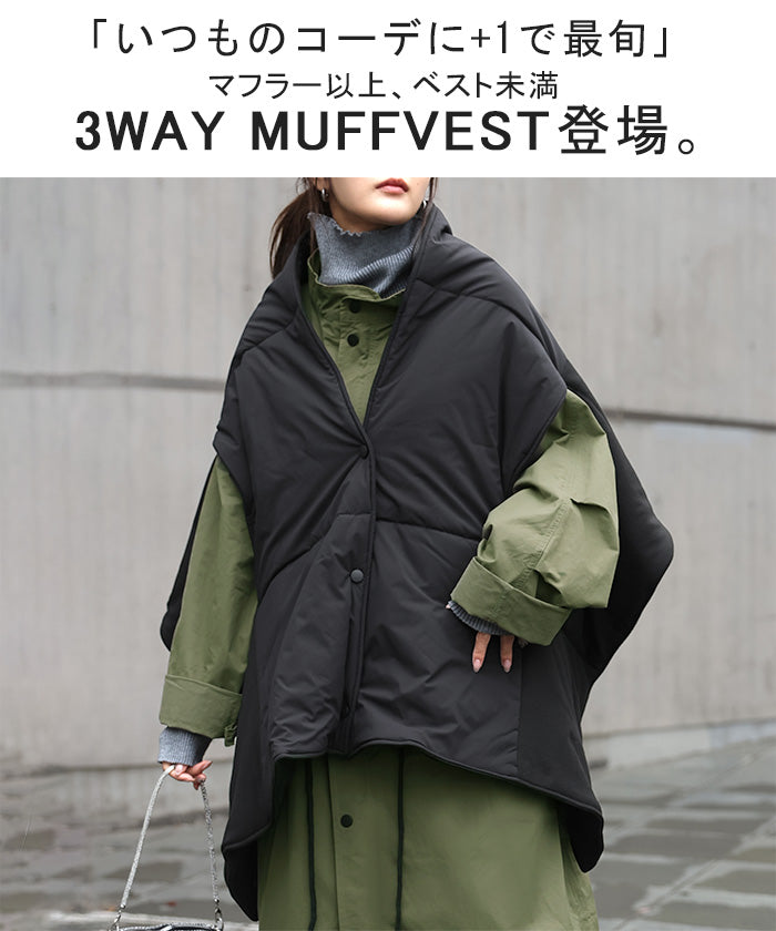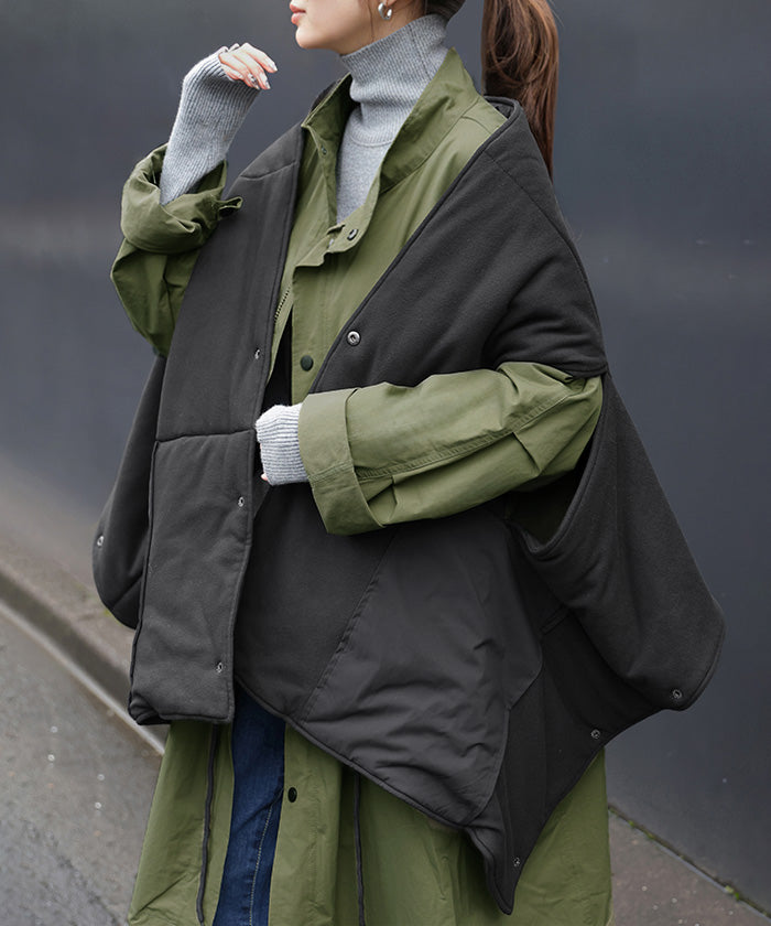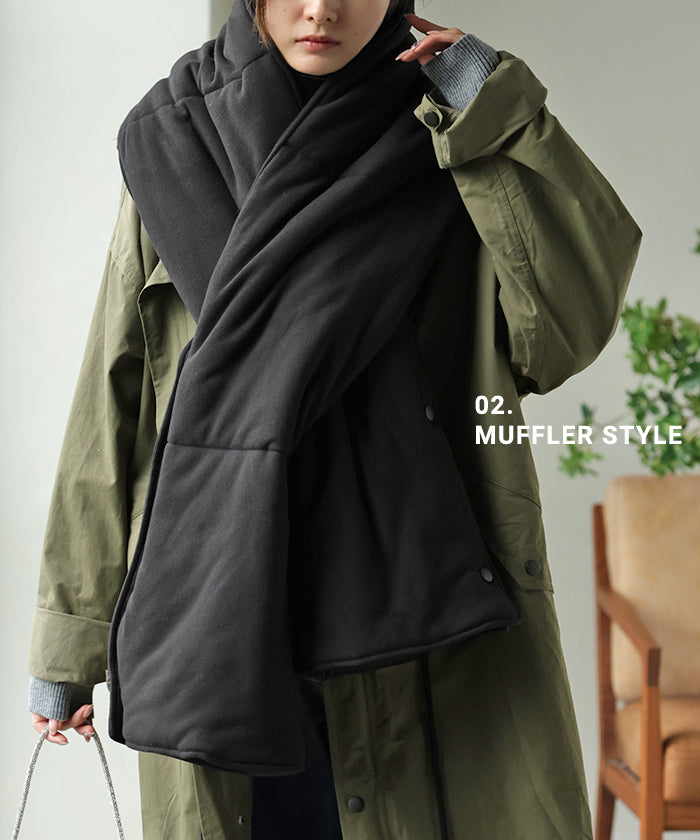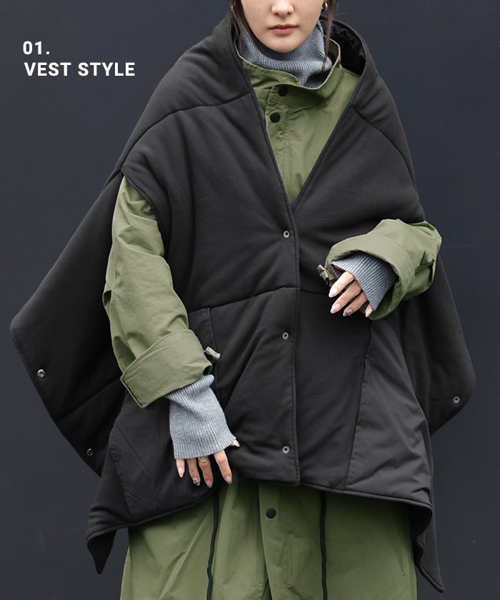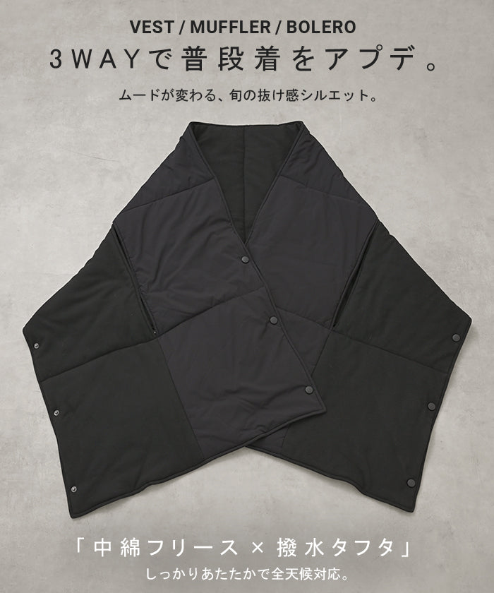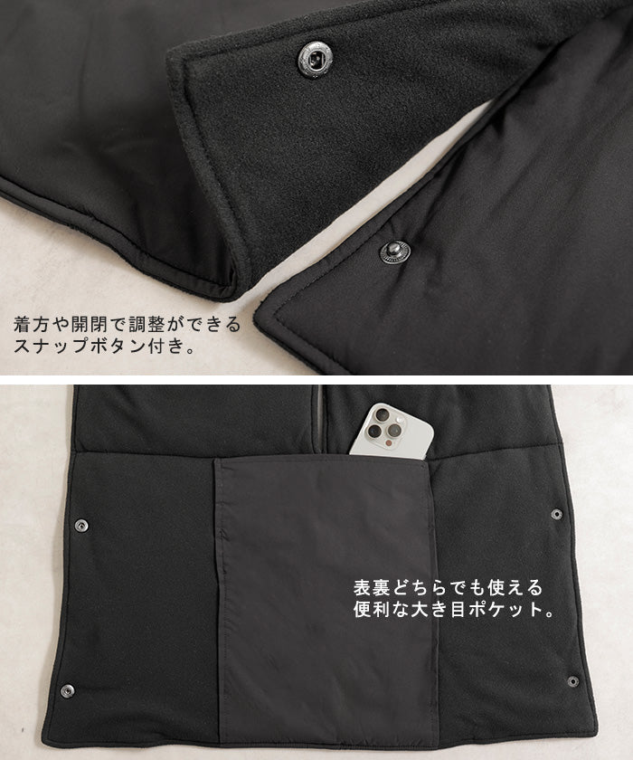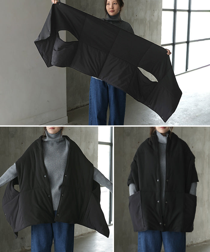 2025AW新作 ベスト 「 着る マフラー 」 ボレロ ■12月上旬入荷 レディース ロング 3WAY アウター ジャケット ショール リバーシブル フリース 中綿 大判 ブランケット 前開き 羽織 防寒 暖かい 軽量 ポケット ゆったり 大きいサイズ 体型カバー カジュアル 黒 ブラック 秋 冬 HUG.U