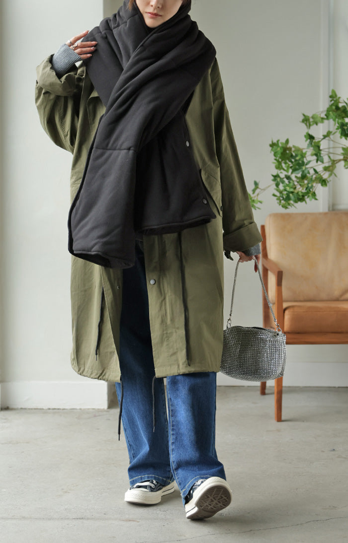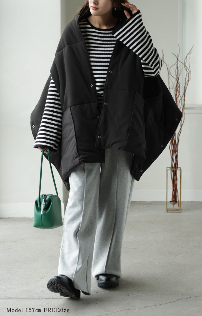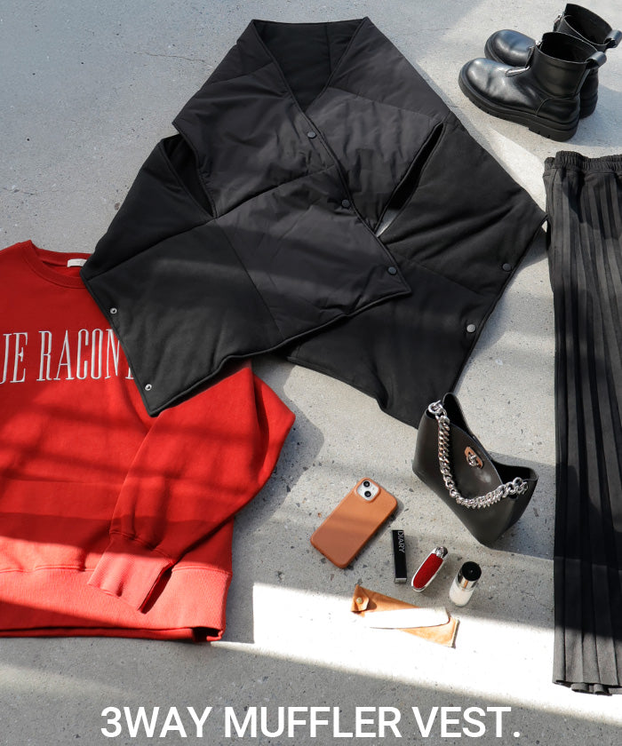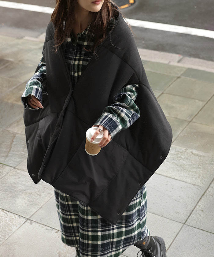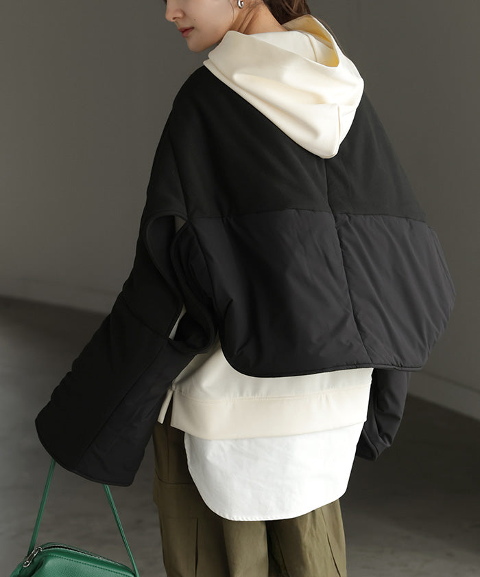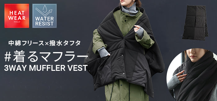 2025AW新作 ベスト 「 着る マフラー 」 ボレロ ■12月上旬入荷 レディース ロング 3WAY アウター ジャケット ショール リバーシブル フリース 中綿 大判 ブランケット 前開き 羽織 防寒 暖かい 軽量 ポケット ゆったり 大きいサイズ 体型カバー カジュアル 黒 ブラック 秋 冬 HUG.U