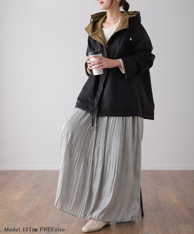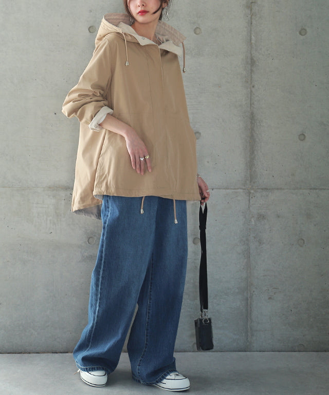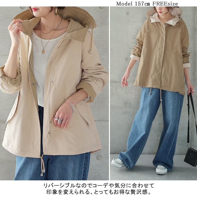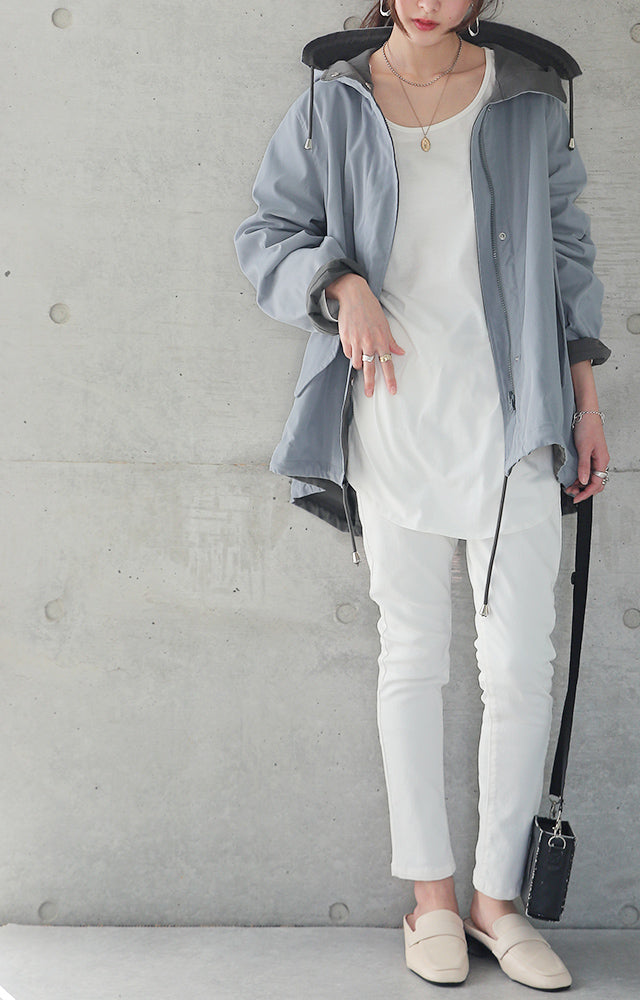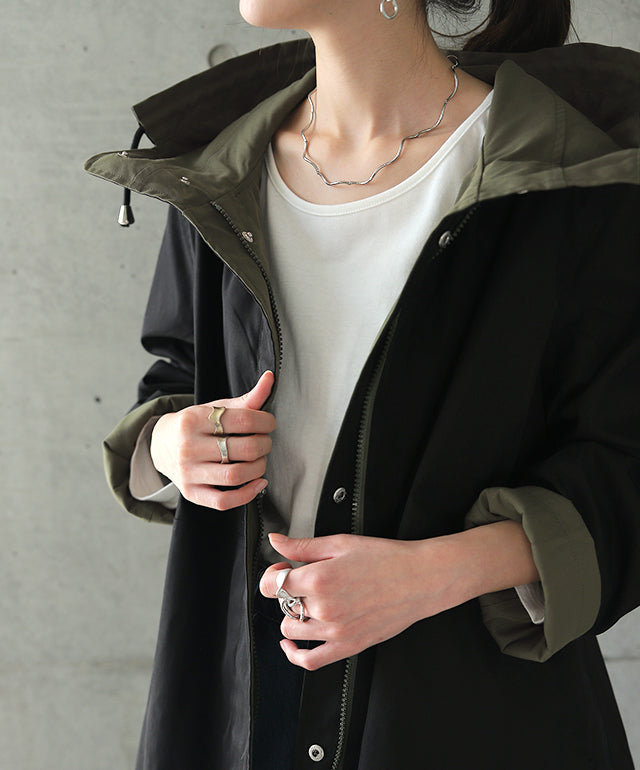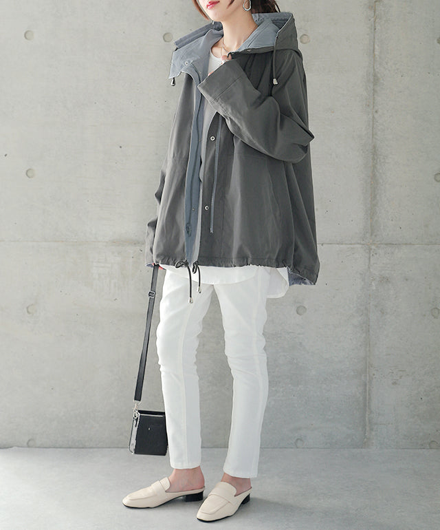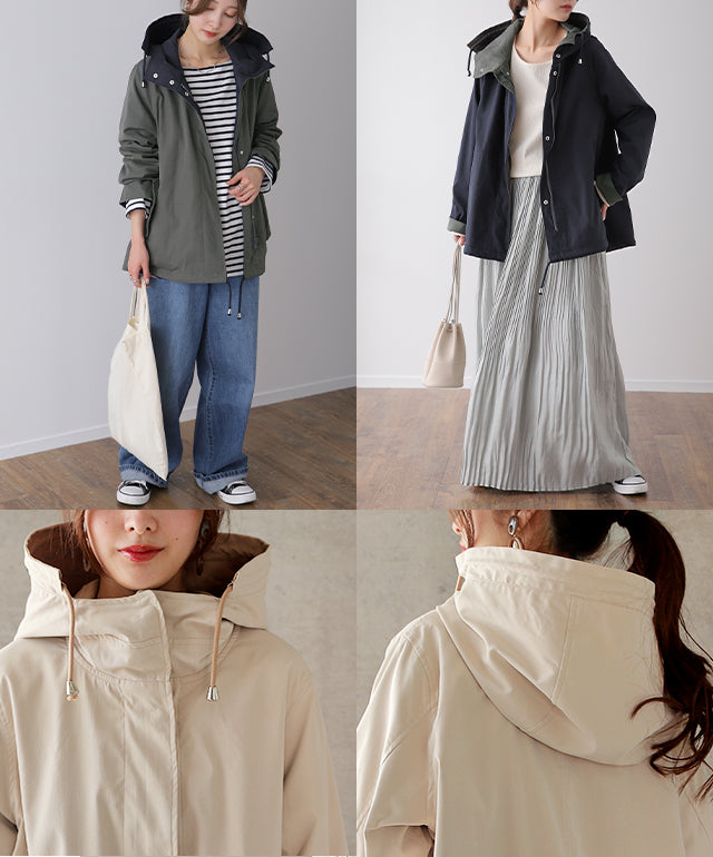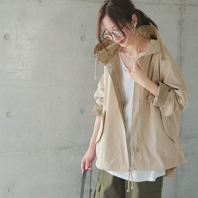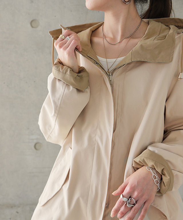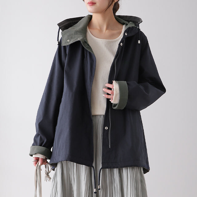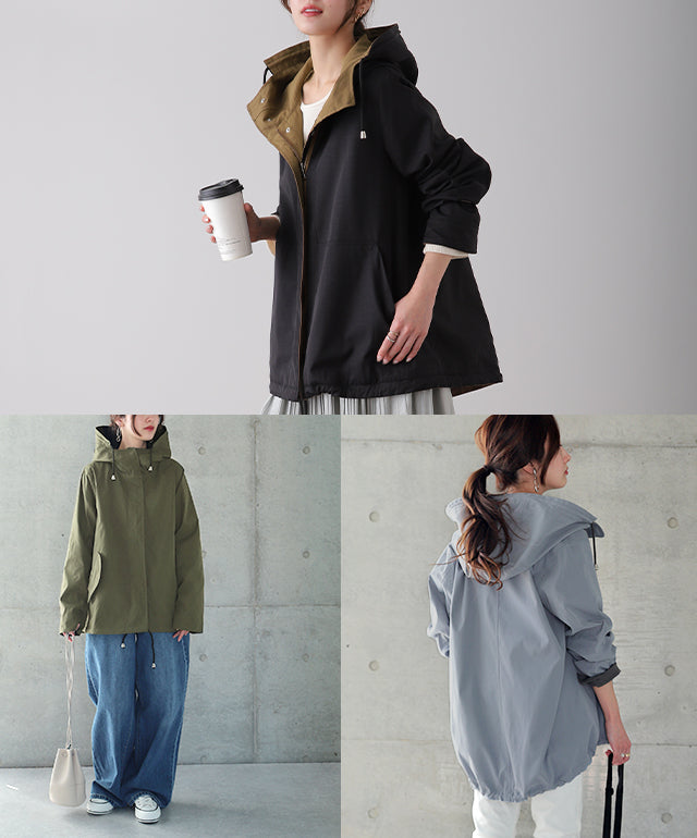 驚愕の機能性を持ちながら、お洒落な配色でこなれたスタイルを演出。全体を閉めると高い襟とボリュームフードで小顔効果と風よけもバッチリ。裾のドローコードでシルエットも調節可能。リバーシブルなので、気分やシーンに合わせて表裏で違うスタイリングを楽しめます。トレンドのスポーティーから、きれいめカジュアルまで対応。
