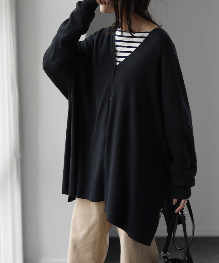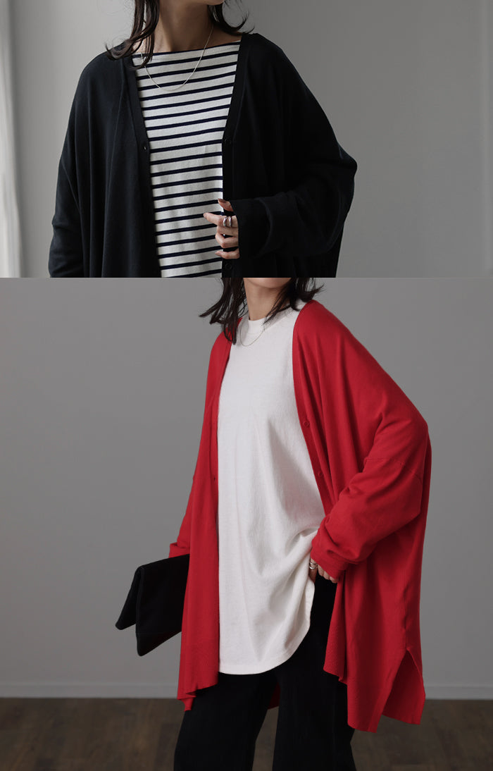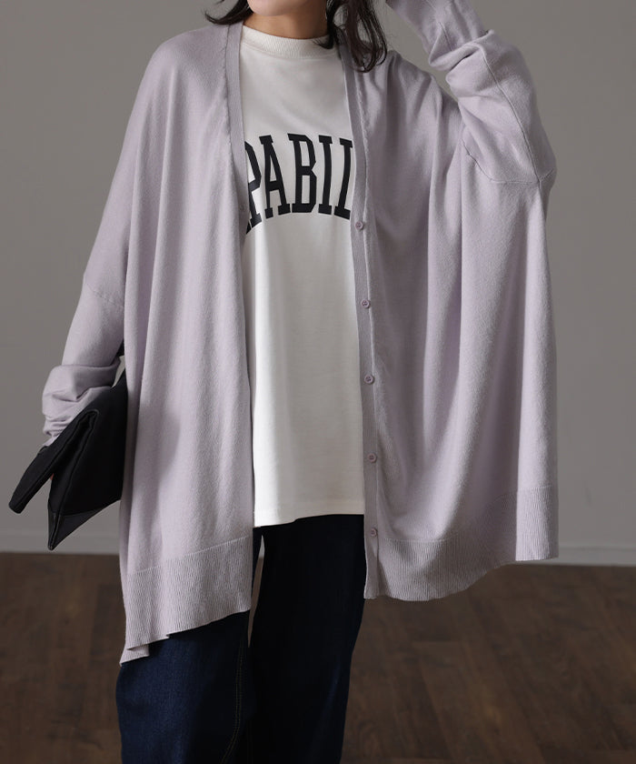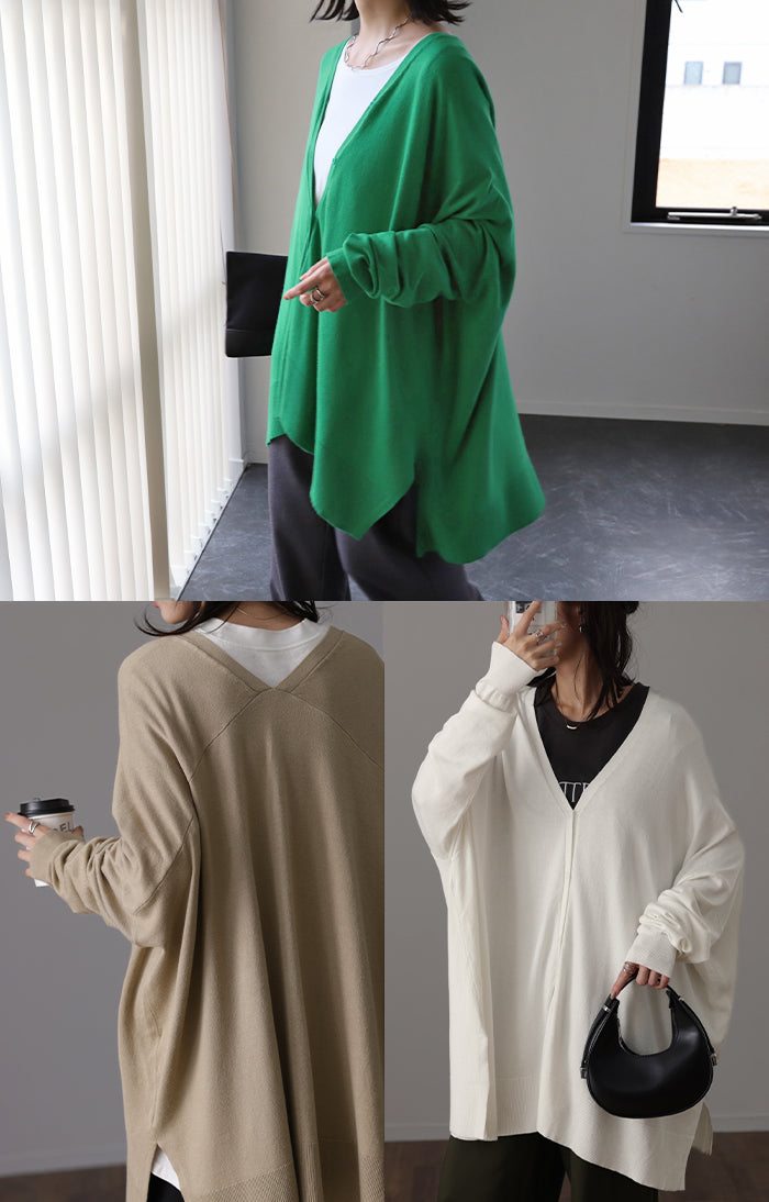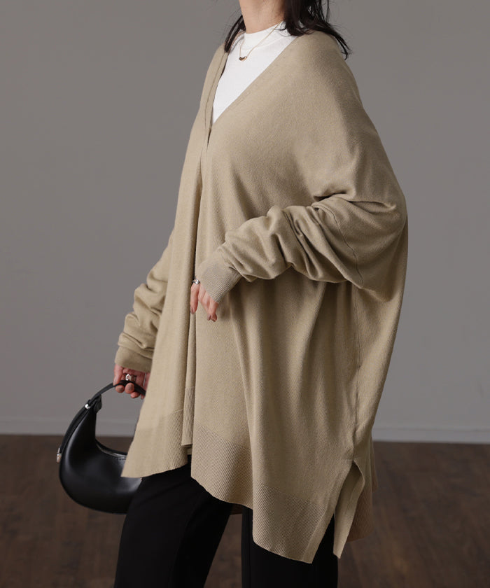 柔らかく優しい風合いのドルマンニットカーディガンです。ゆったりなシルエットでインナー合わせも楽々。どんなボトムスとも好相性でお洒落な雰囲気がある一着です。※ニットの特性上、実際の製品の寸法とサイズ表記に差が生じることがございます。予めご了承下さいませ。