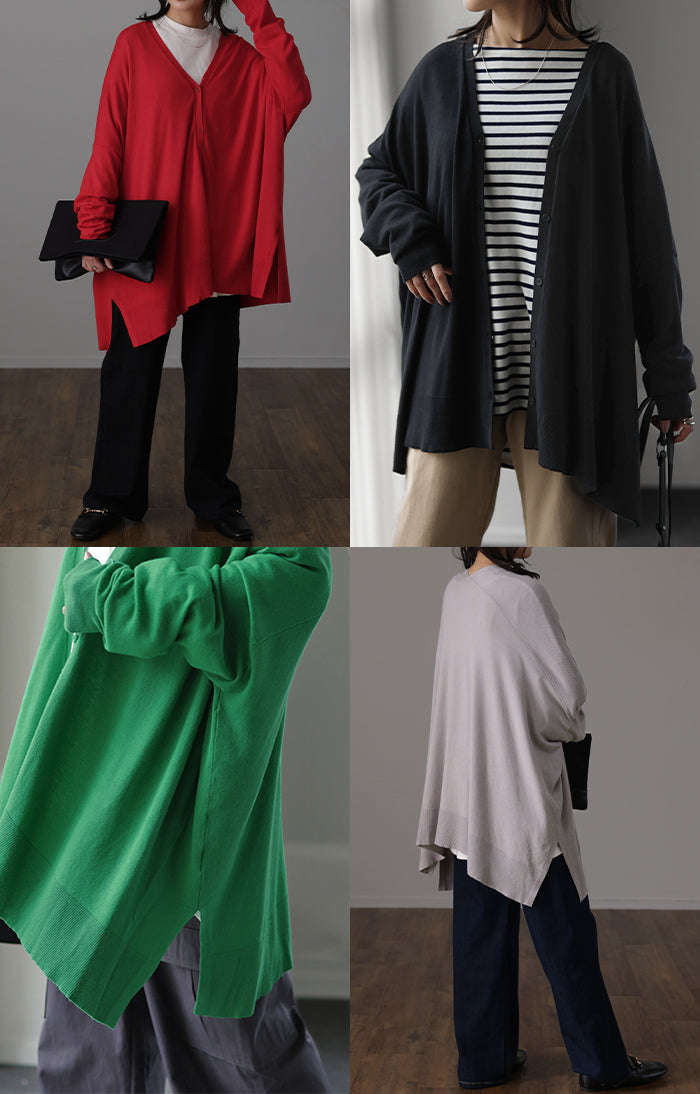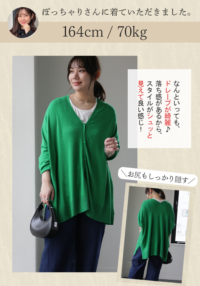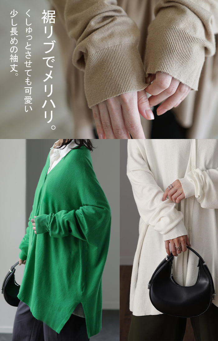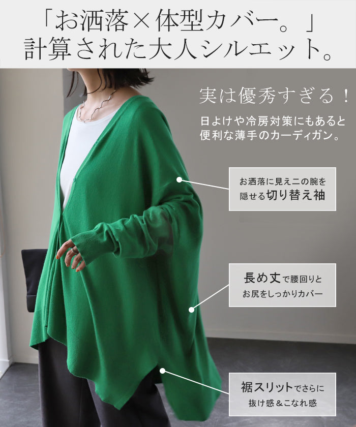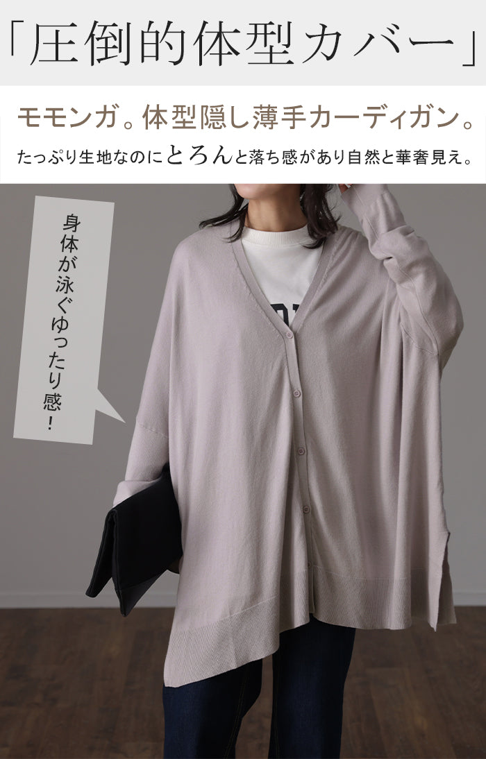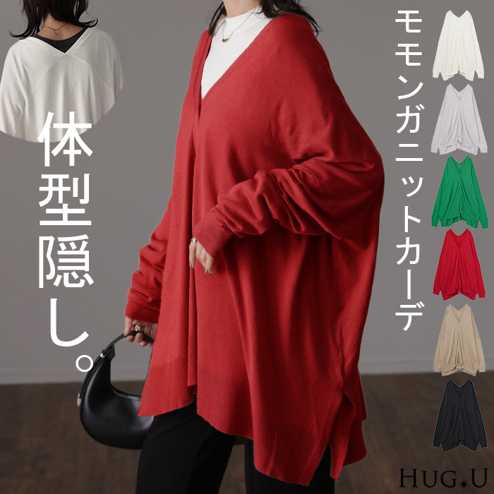 「 モモンガ 」 ニット カーディガン 体型カバー レディース セーター トップス ニットカーディガン 軽い カーデ ドレープ 長袖 ライトニット レイヤード 羽織 チュニック お尻が隠れる ゆったり 長め コクーン リブ グリーン 黒 春 夏 HUG.U