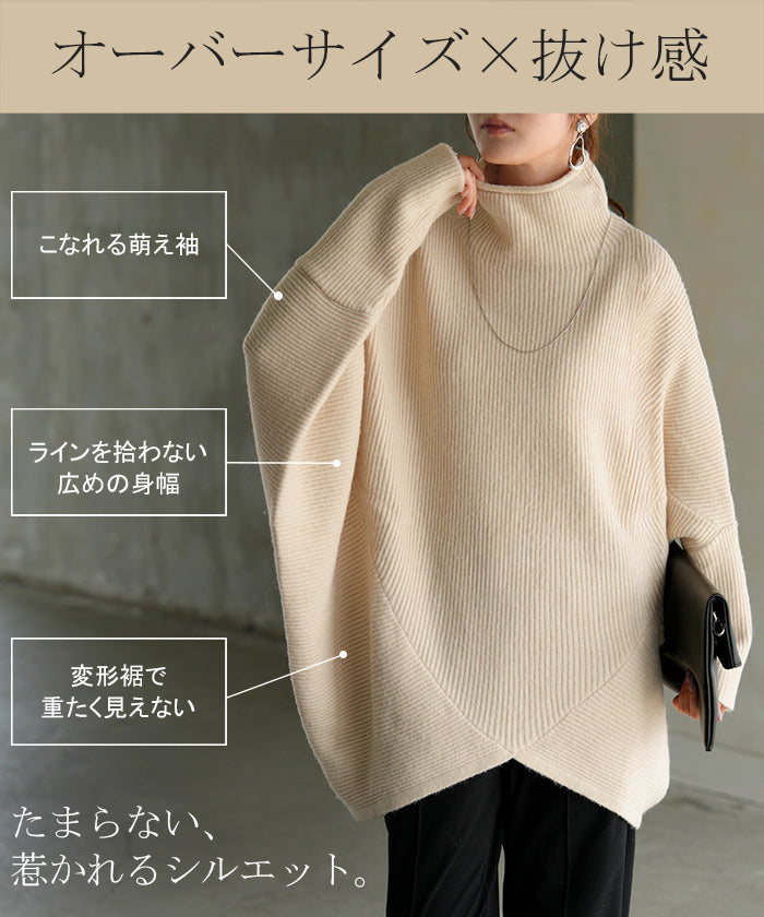 一目惚れでした!ぽっちゃりなので、モデルさんのようには着こなせませんが、袖がスッキリしていて、裾やバックの切り替えなどが細見えさせてくれて嬉しいです。色違いのタートル欲しくなりました!