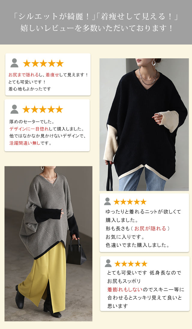 素敵なレビューをお寄せいただきありがとうございます。 デザインの細見え効果を気に入っていただけたとのこと、大変嬉しく拝読いたしました。 袖のすっきり感や変形裾など、こだわりのポイントに気づいていただけて光栄です。 一目惚れで選んでくださったとのこと、そして色違いもご検討いただけているとのお言葉まで、本当に励みになります。 ぜひこれからもご愛用いただけましたら幸いです。 またのご利用を心よりお待ちしております。