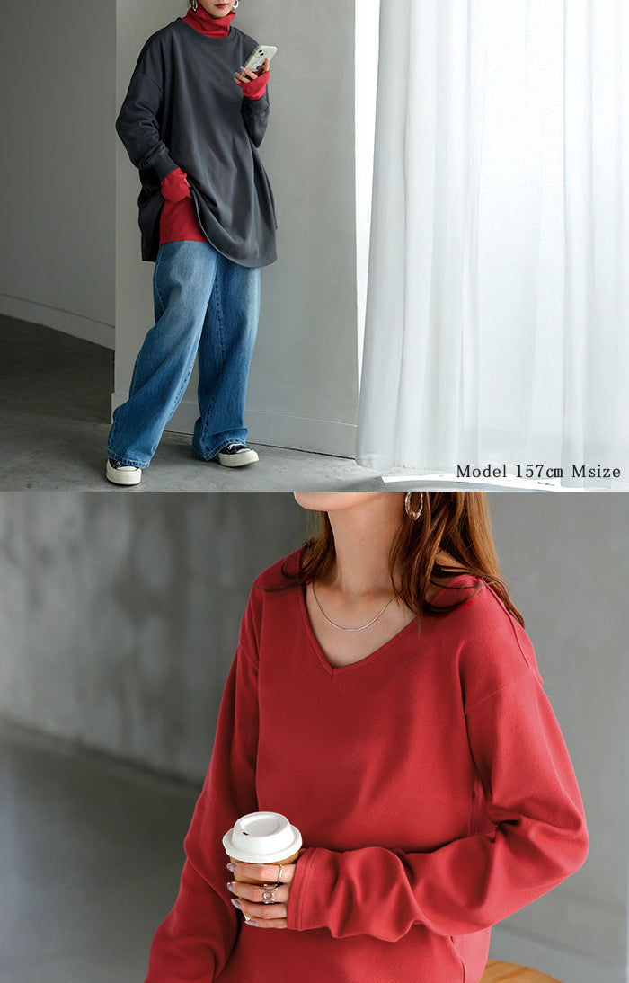 2025AW新作 インナー 防汚加工 レディース ロンT トップス ロング 長袖 Tシャツ カットソー ティーシャツ Vネック クルーネック ハイネック 長い レイヤード カラバリ ストレッチ サムホール ゆったり 無地 体型カバー 大きいサイズ おしゃれ 白 黒 秋 冬 HUG.U メール便