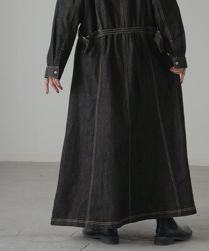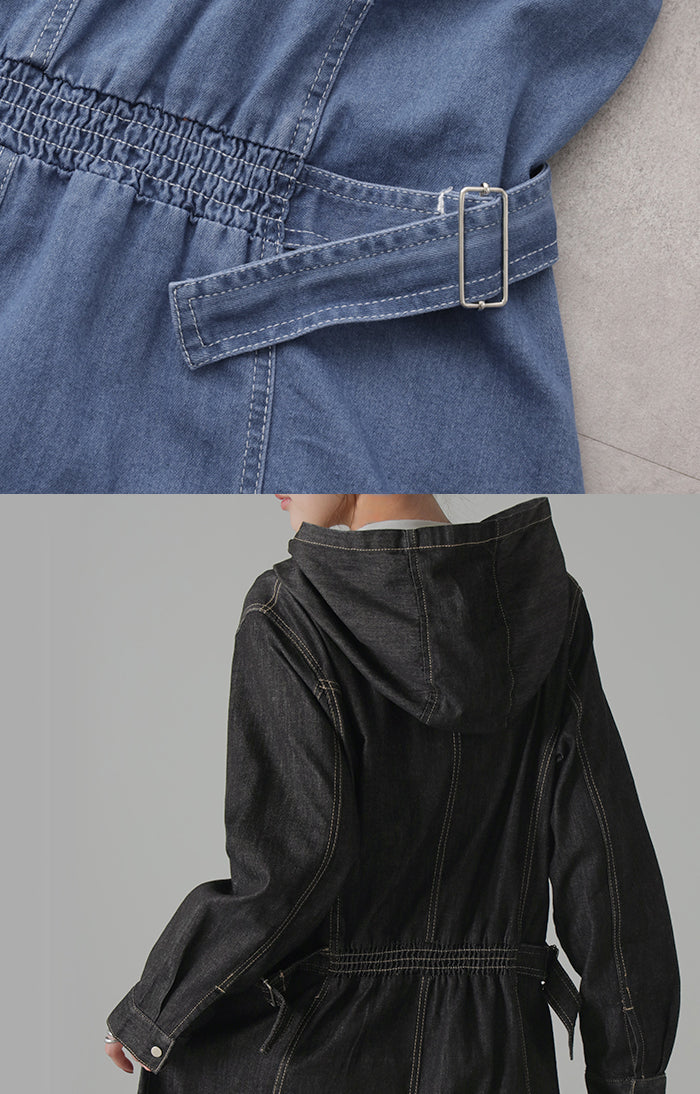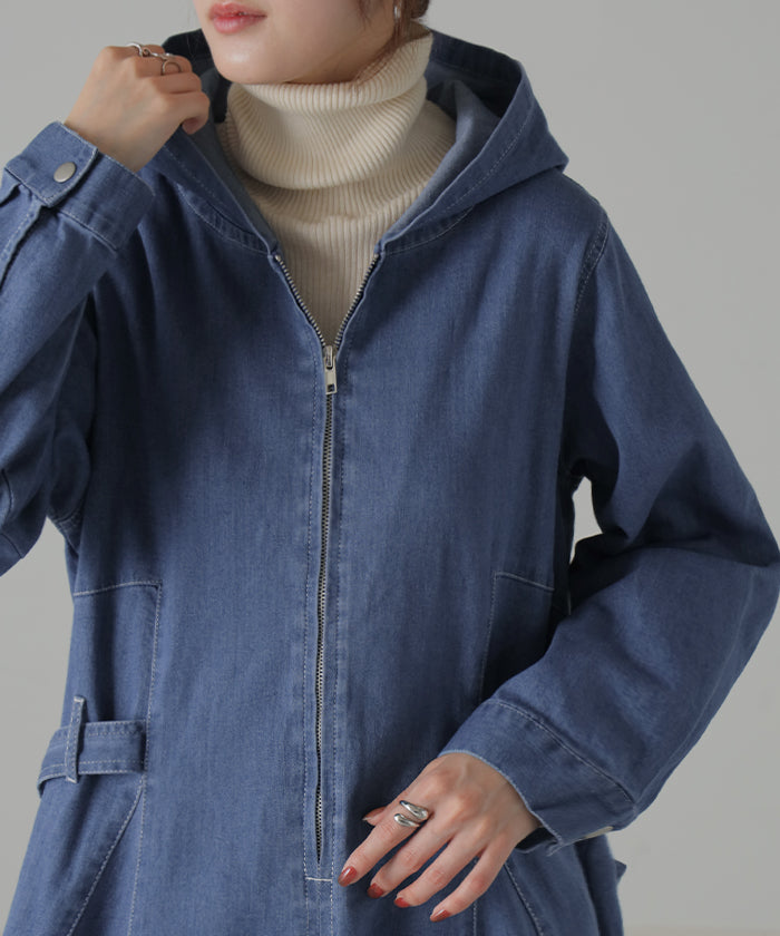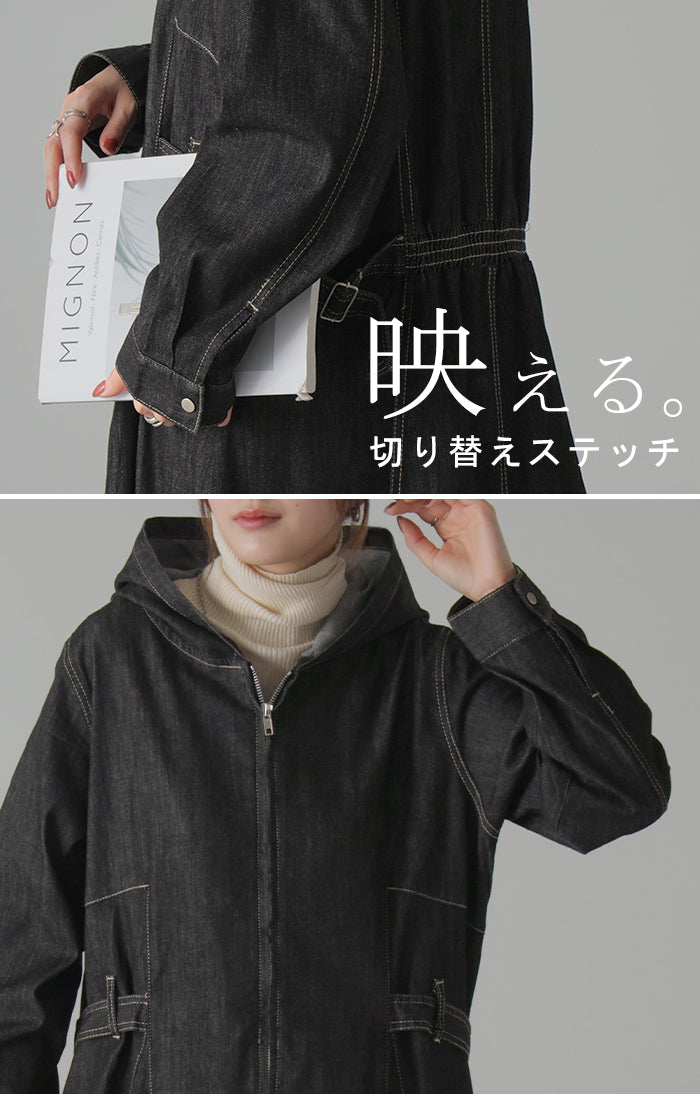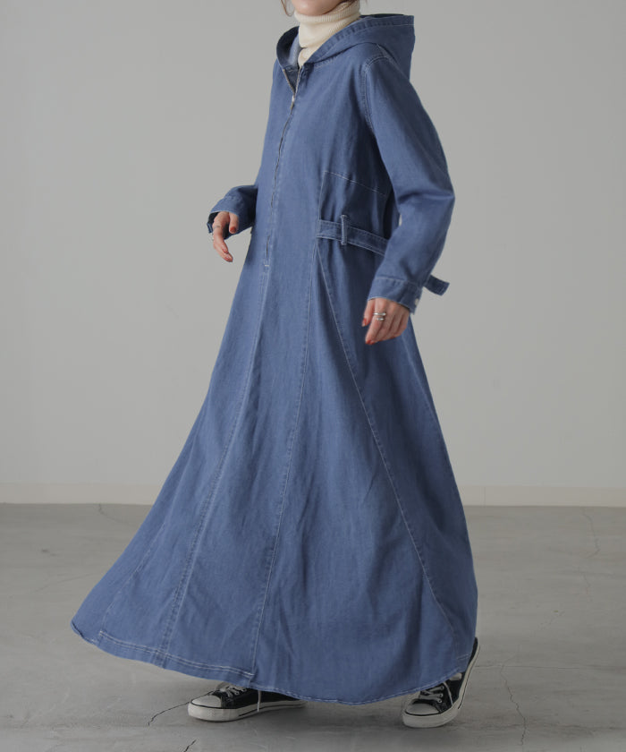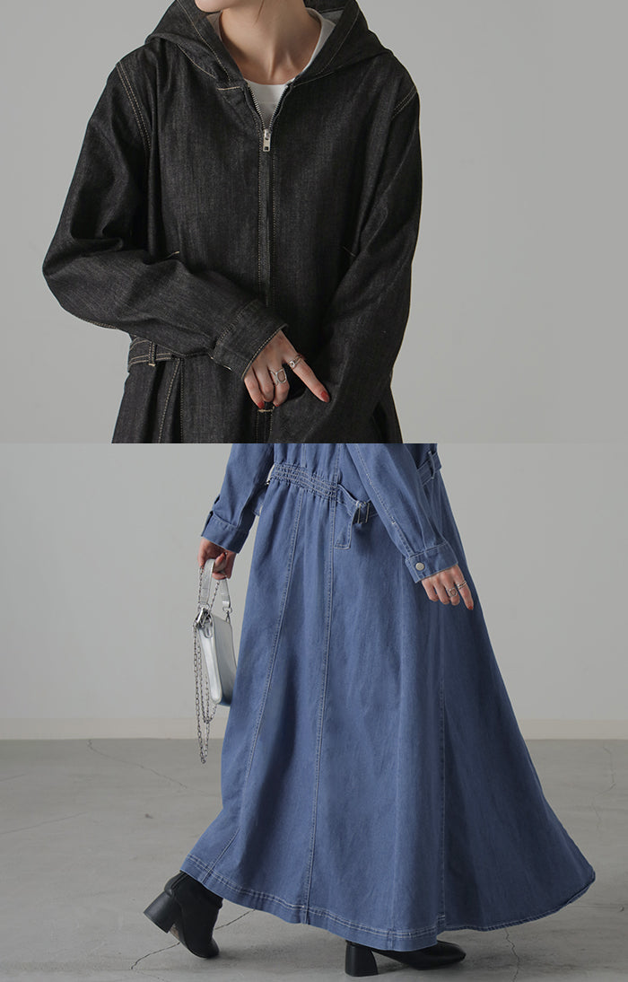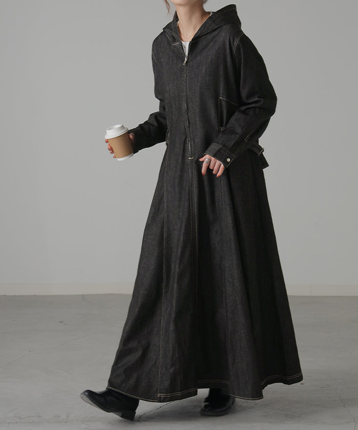 ワンピ デニム タイト目 ワンピース ■一部11月中旬入荷 ハーフジップ デニムワンピ デニムワンピース ロングワンピース レディース フーディー パーカー ロング ロングワンピ マキシ Aライン 長袖 薄手 フード パーカーワンピース パーカーワンピ ジップ 黒 春 夏 HUG.U