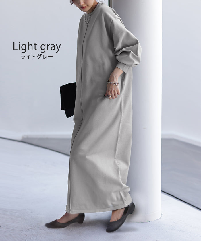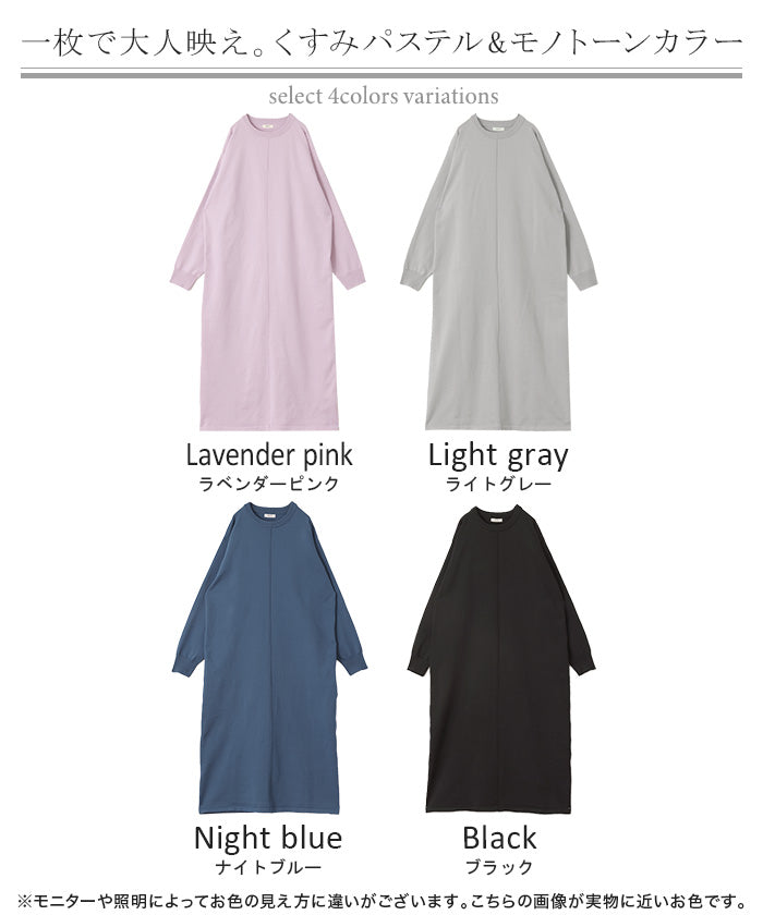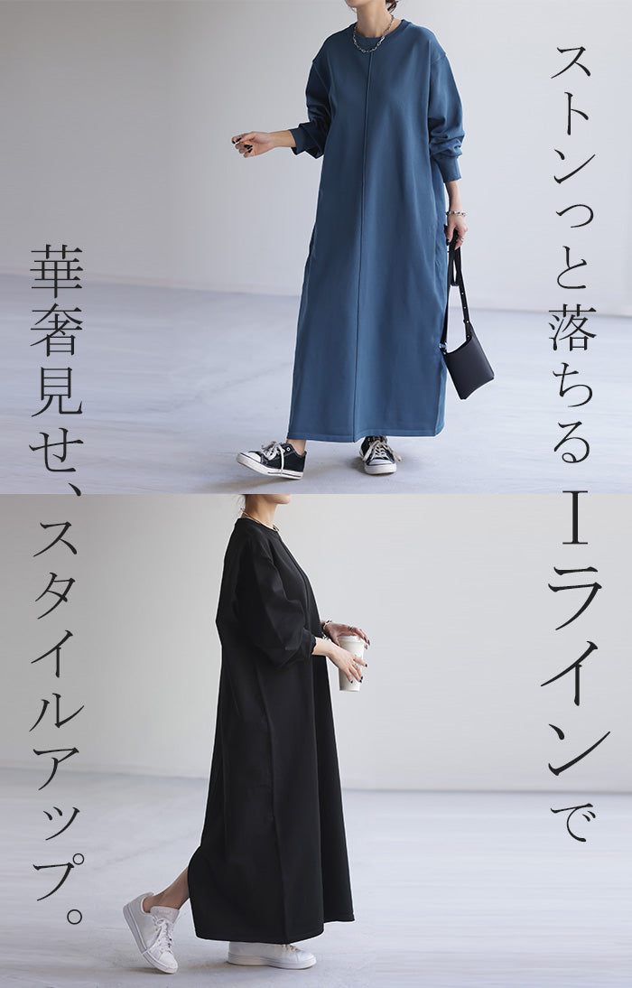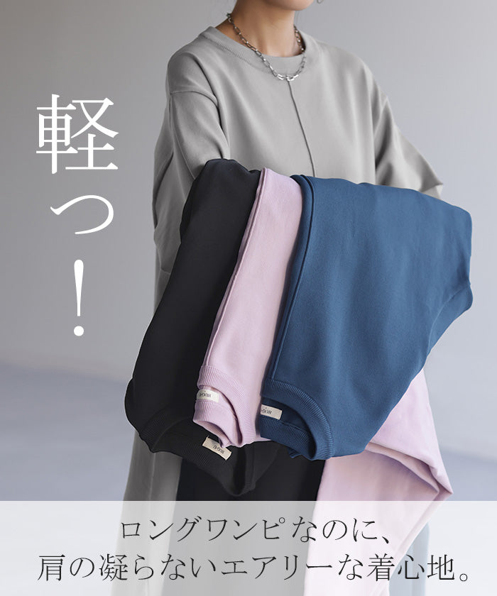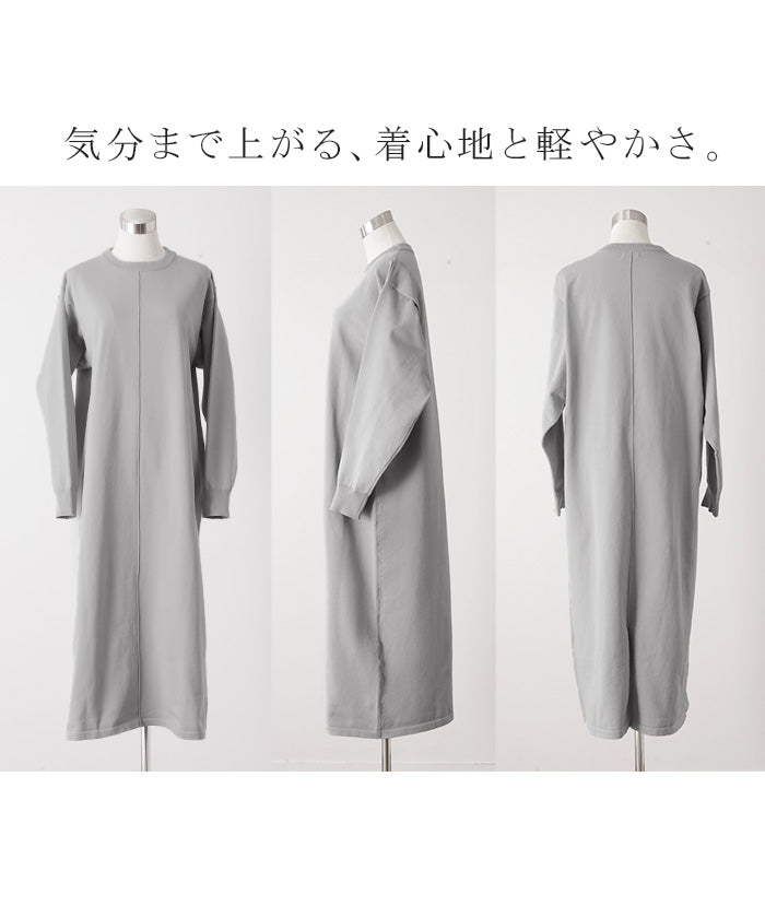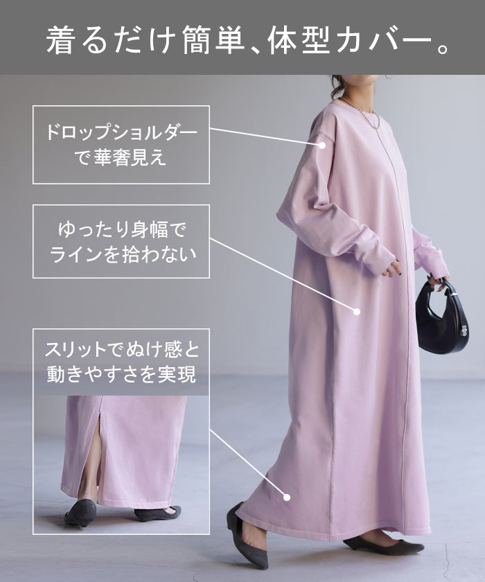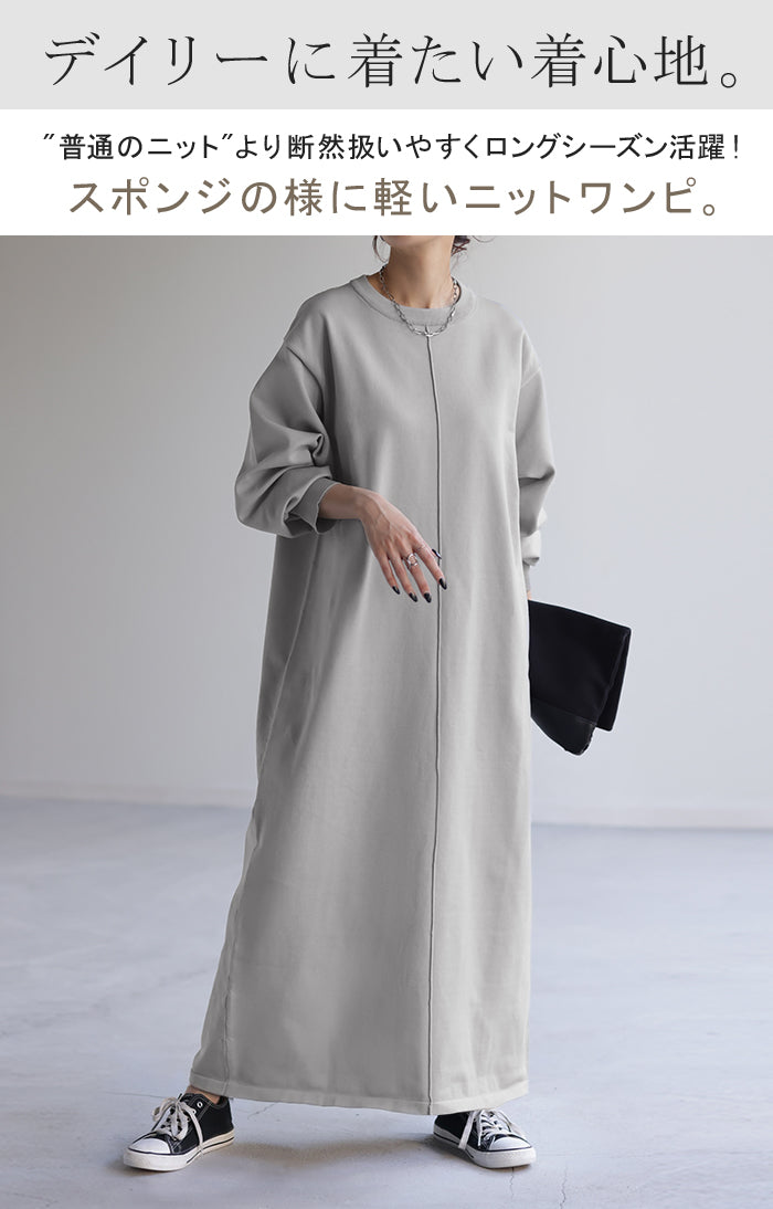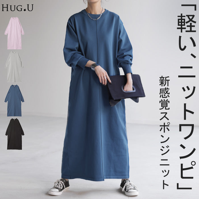 ワンピ スポンジ ニット 体型カバー ワンピース ニットワンピ ニットワンピース ロングワンピース レディース ロング ロングワンピ 無地 お洒落 マキシ 軽い 長袖 丸首 ライトニット 春ニット Aライン ゆる 長め スリット 大きいサイズ 春 夏 HUG.U