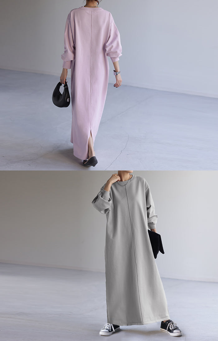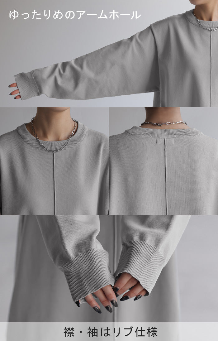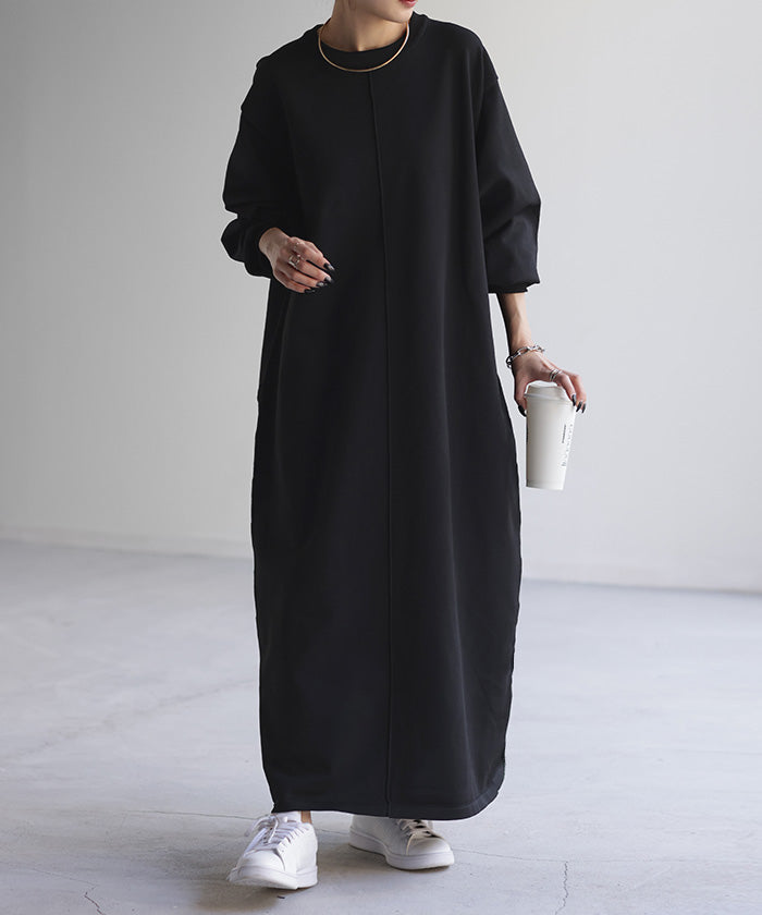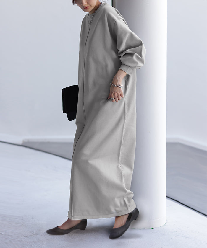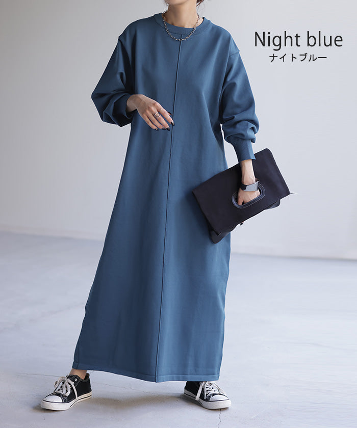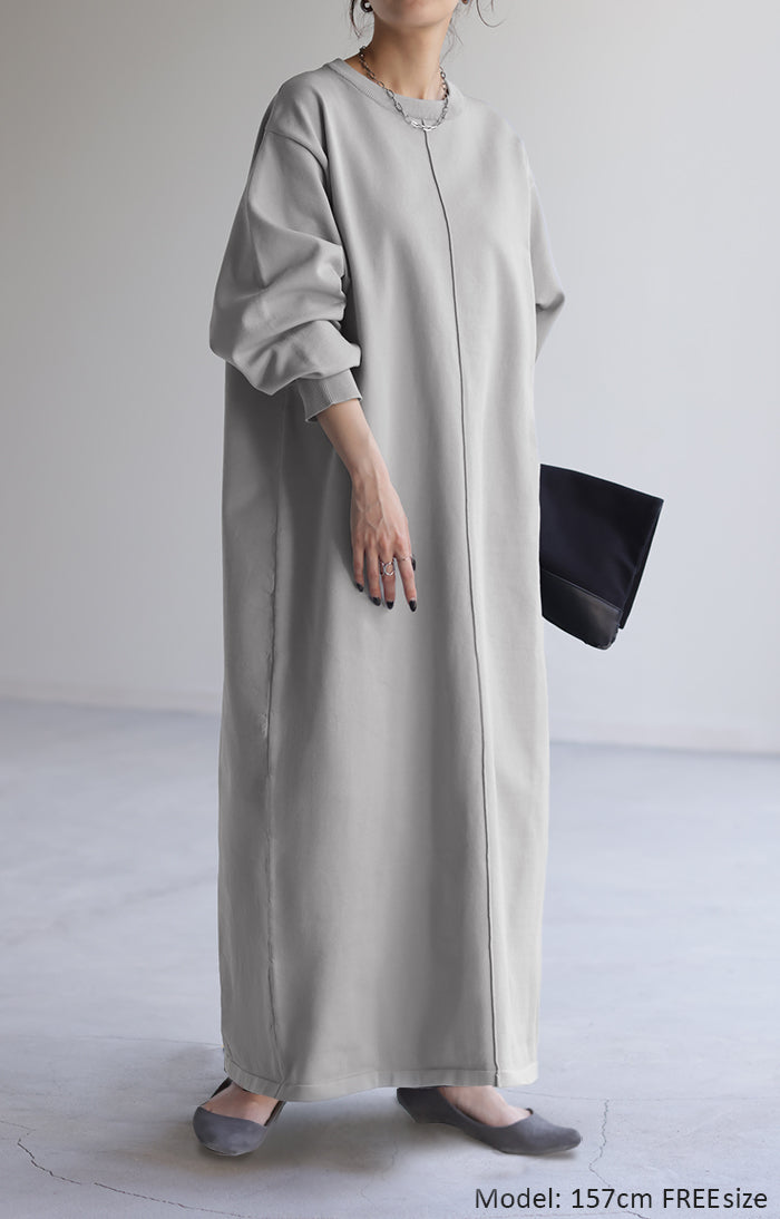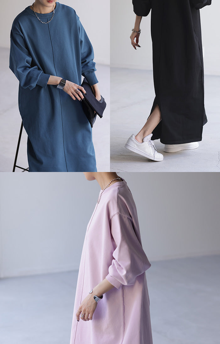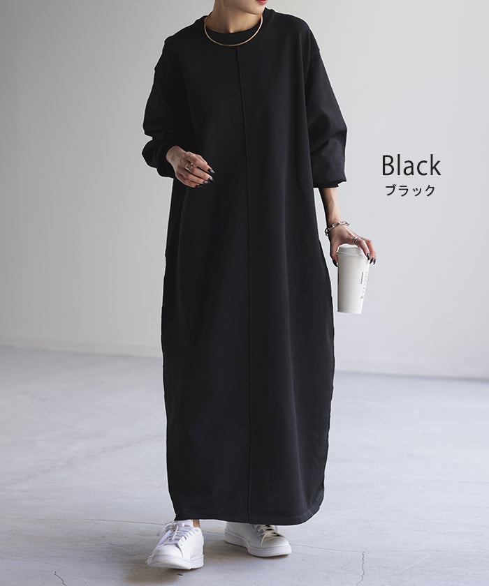 ワンピ スポンジ ニット 体型カバー ワンピース ニットワンピ ニットワンピース ロングワンピース レディース ロング ロングワンピ 無地 お洒落 マキシ 軽い 長袖 丸首 ライトニット 春ニット Aライン ゆる 長め スリット 大きいサイズ 春 夏 HUG.U