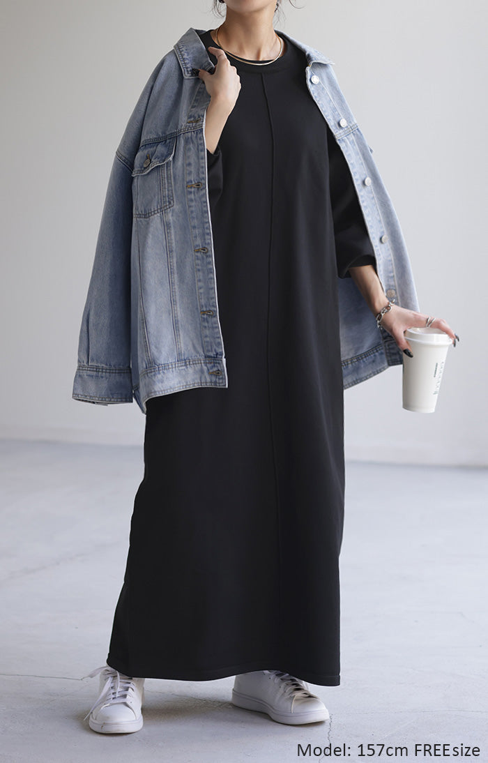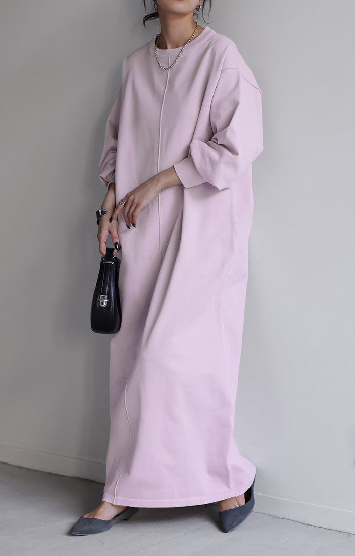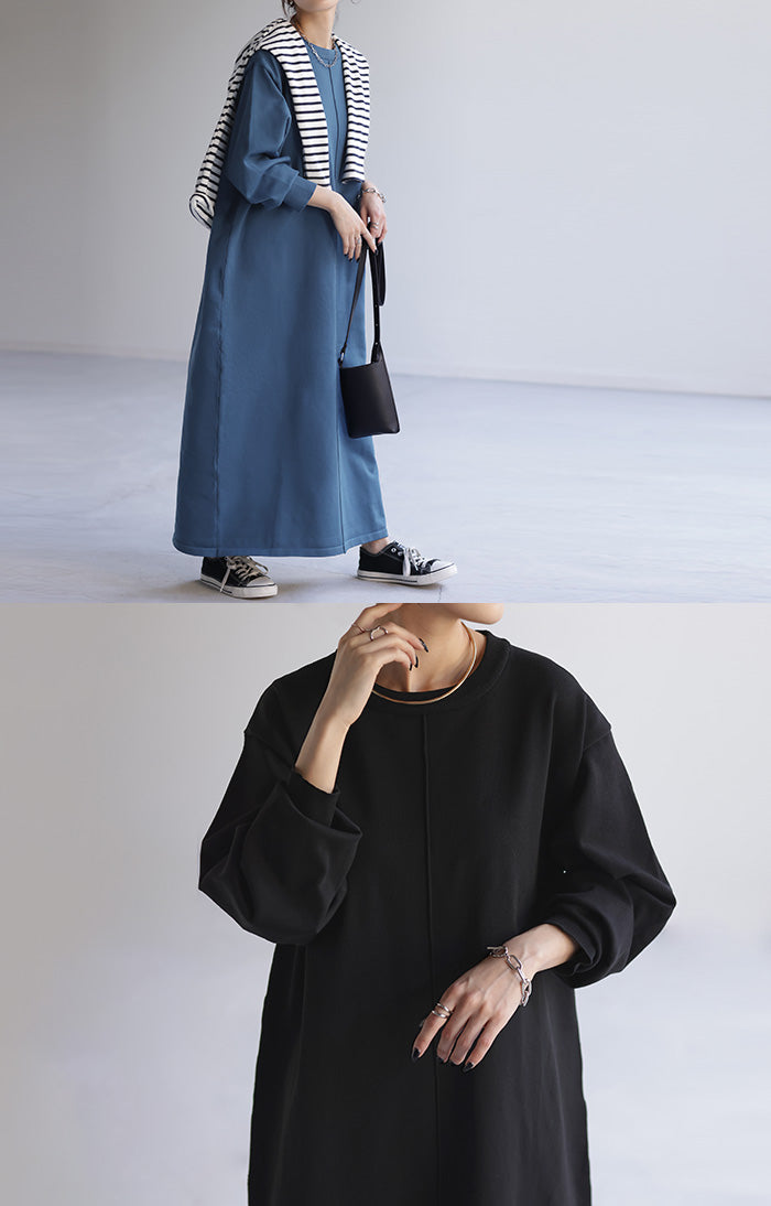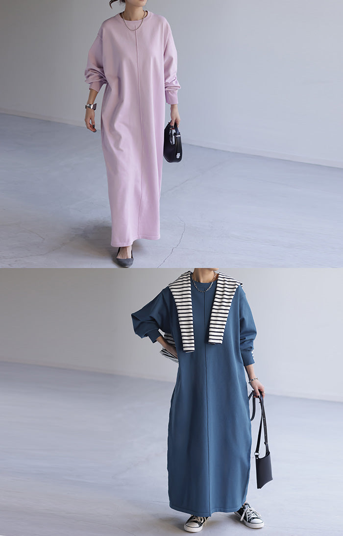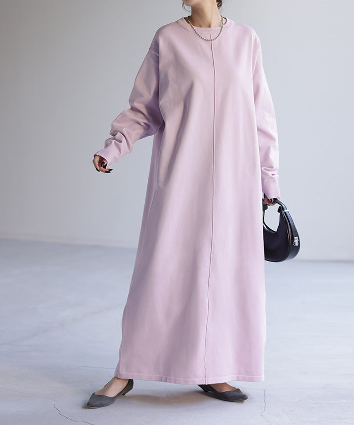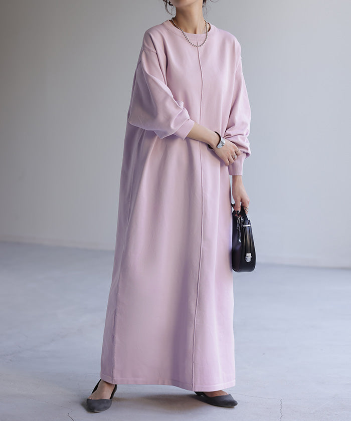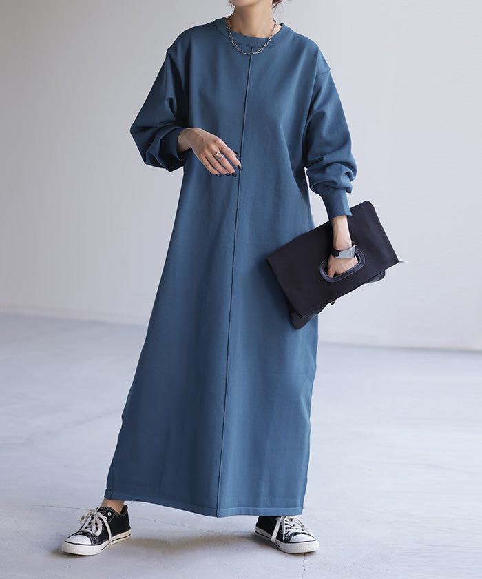 ワンピ スポンジ ニット 体型カバー ワンピース ニットワンピ ニットワンピース ロングワンピース レディース ロング ロングワンピ 無地 お洒落 マキシ 軽い 長袖 丸首 ライトニット 春ニット Aライン ゆる 長め スリット 大きいサイズ 春 夏 HUG.U