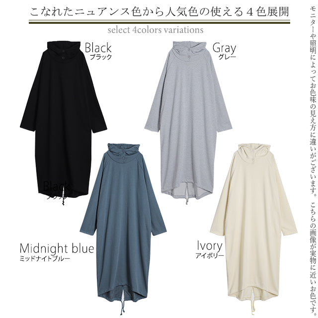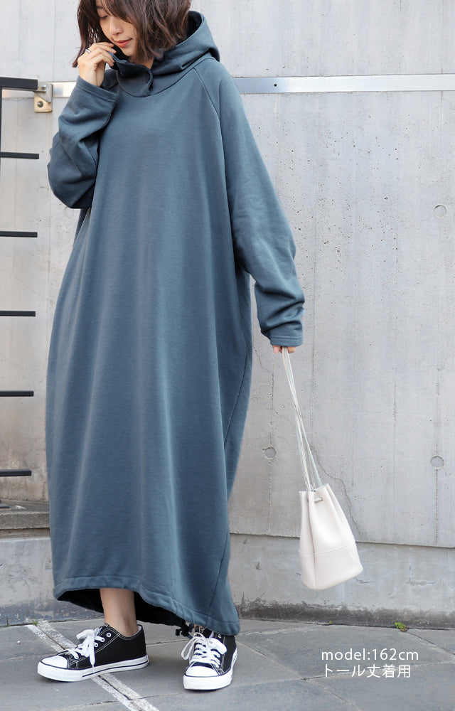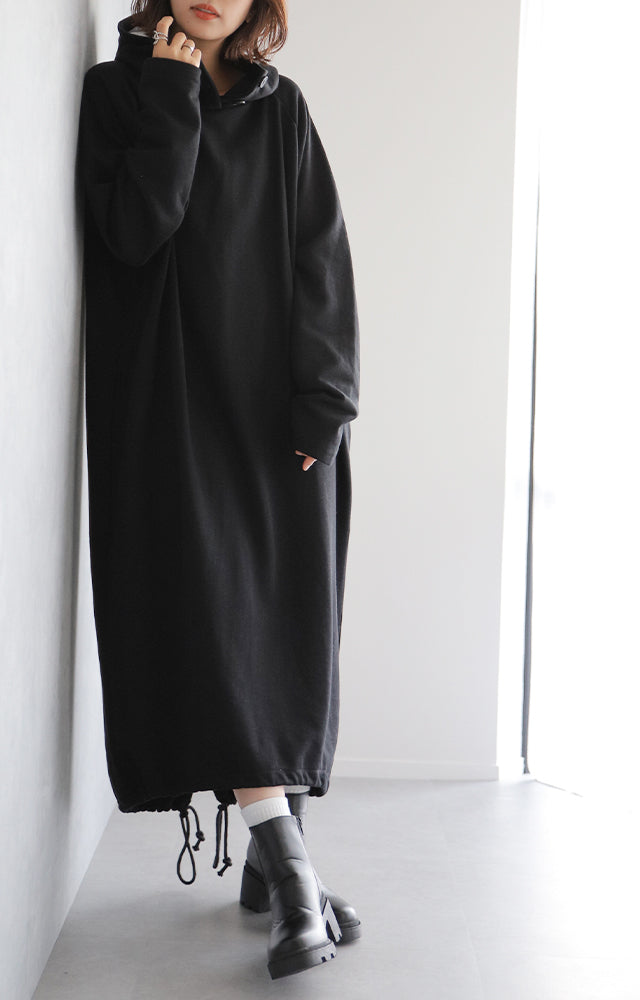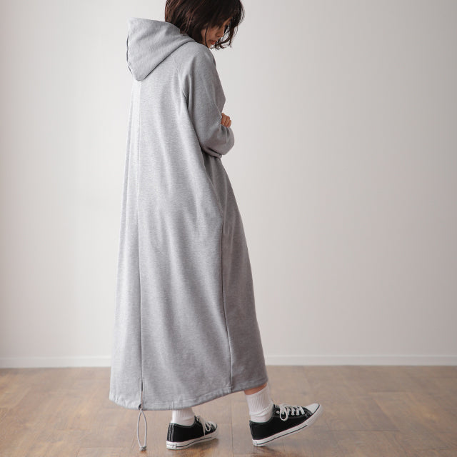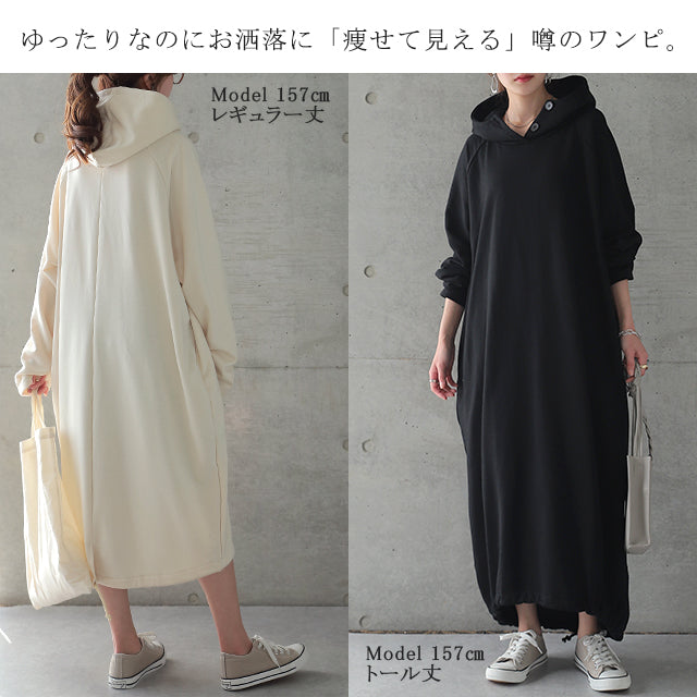 「素肌になめらか」小顔フーディー ワンピース ワンピース パーカーワンピース レディース パーカー ロングパーカー ロングワンピース トレーナー スウェット パーカーワンピ 大きいサイズ 黒 グレー 春 夏 HUG.U