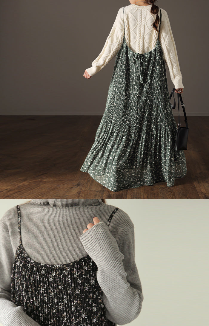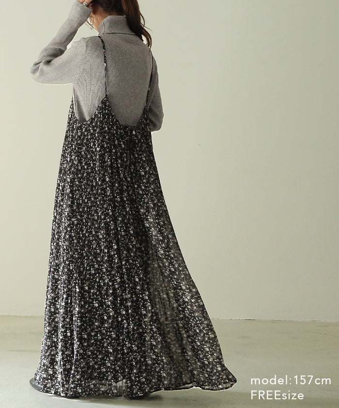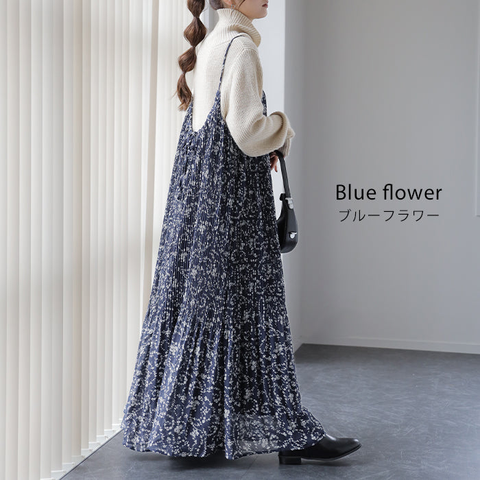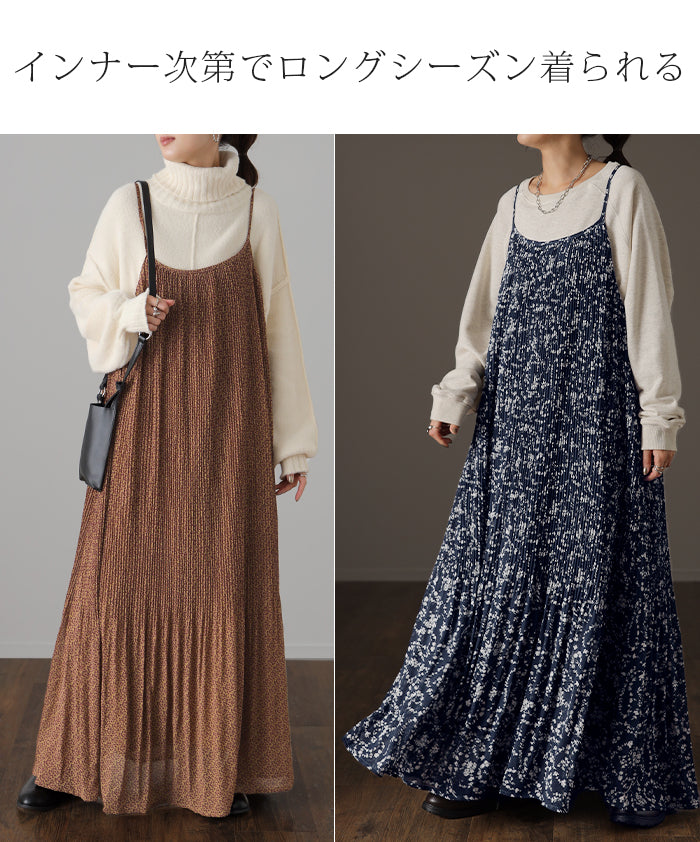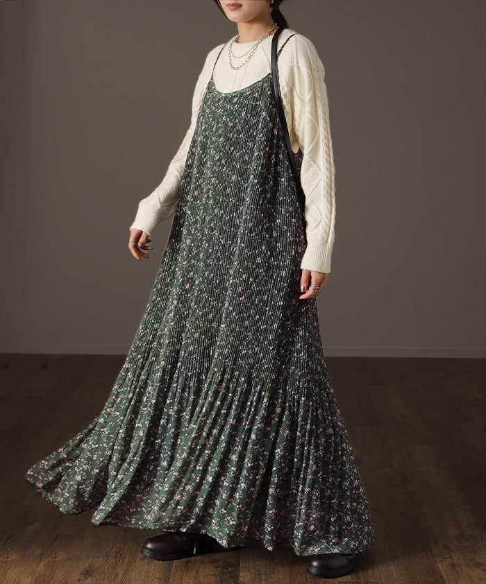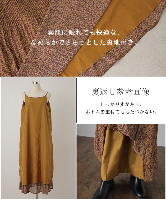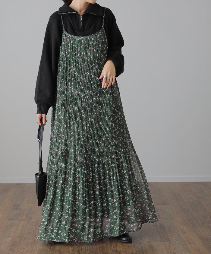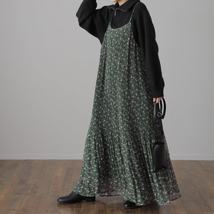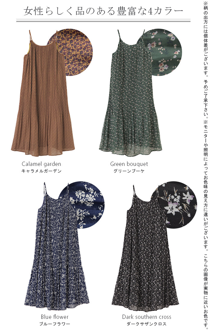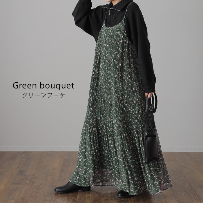シフォンワンピ 「 ふわっと、 体型カバー 」 ワンピース キャミワンピ ワンピ レディース ロングワンピース マキシワンピ-ス プリーツ ロング レイヤード 透け 花柄 シフォン 小花柄 マキシ きれいめ Aライン 大きいサイズ 緑 春 夏 HUG.U
