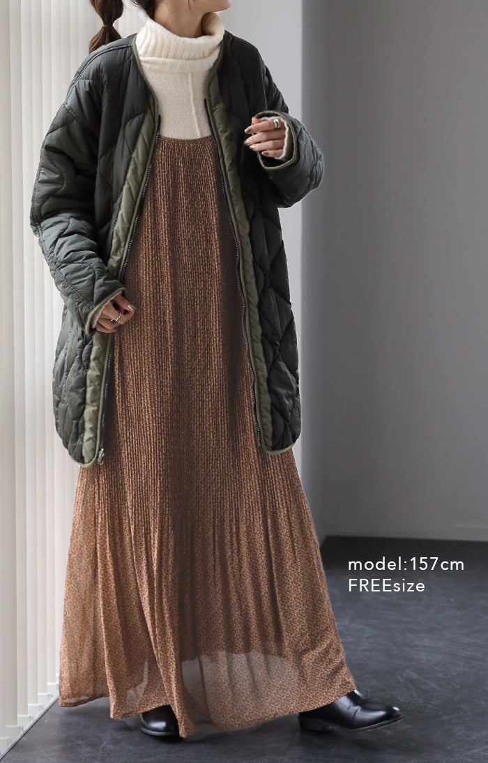 肩ひもで調整できるようになっていますが、私の身長(153cm)に合わせると胸の部分が首のすぐ下まで来てしまうので、デザインの良さがなくなってしまいます。なので多少引きずってもいいや!と思って長めのままにして着ています。