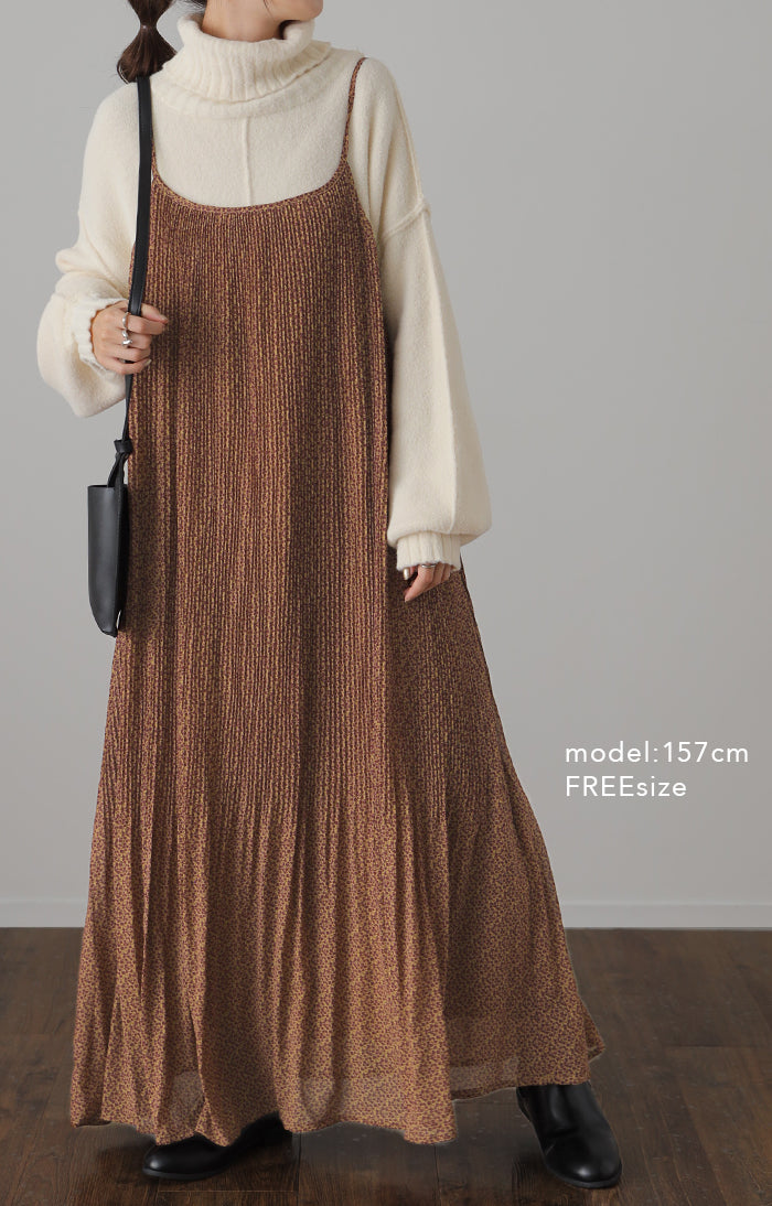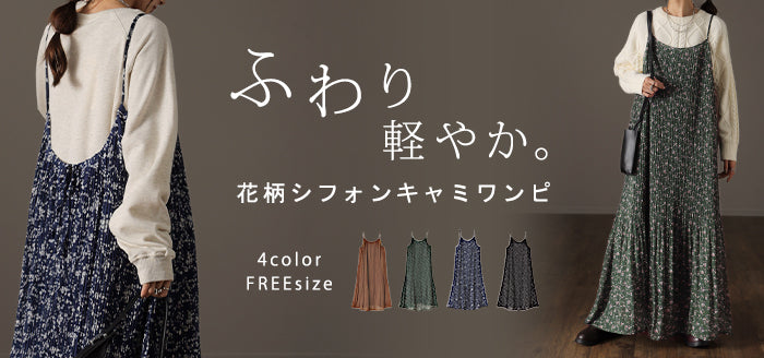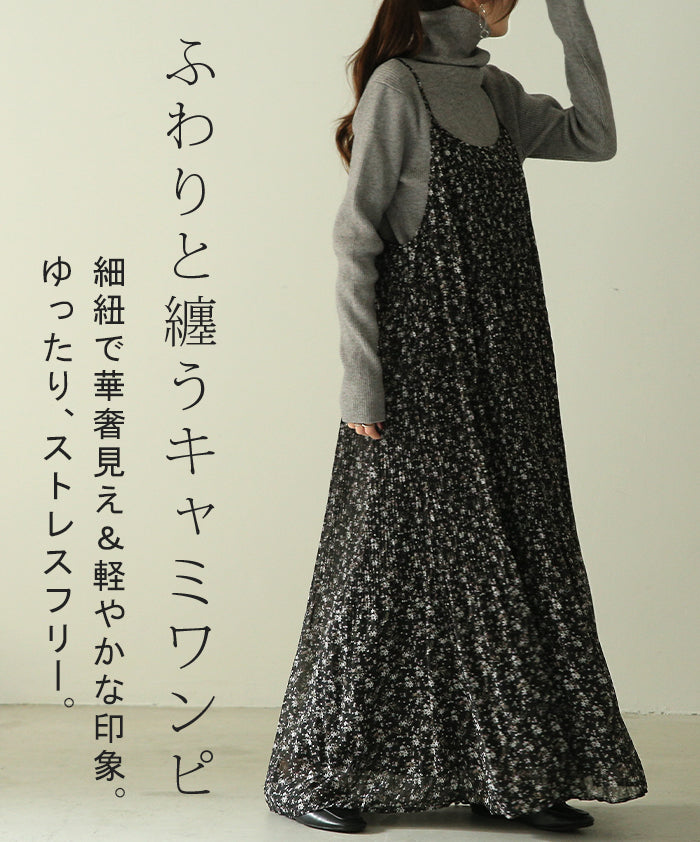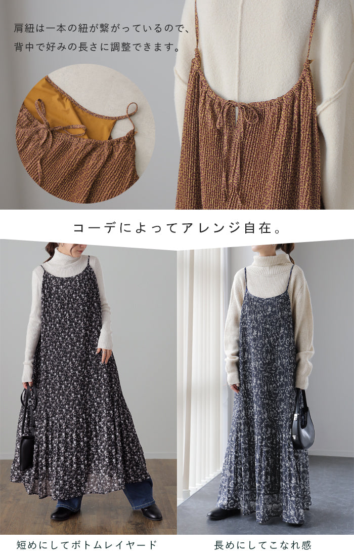 大人女子の魅力を高める小花柄キャミソールワンピースです。さらりとした落ち感のある素材でラフに着れるのも嬉しいポイント。合わせ方によってレディライクにもカジュアルにも着まわせるアイテムです。