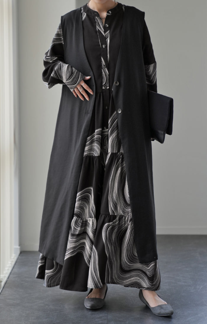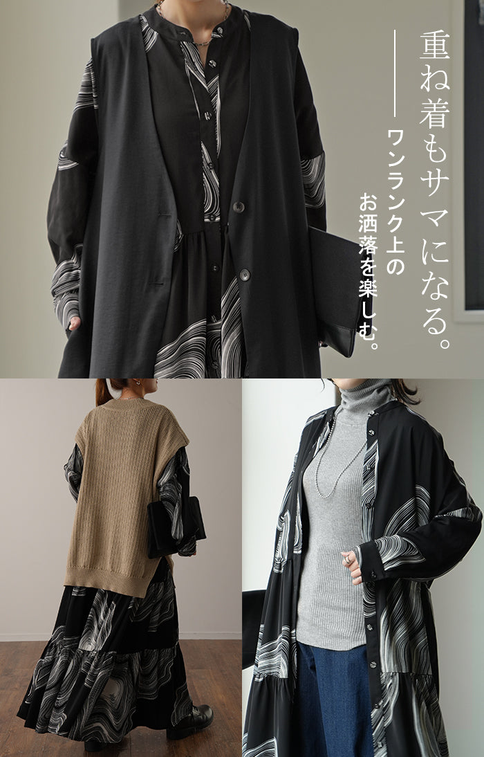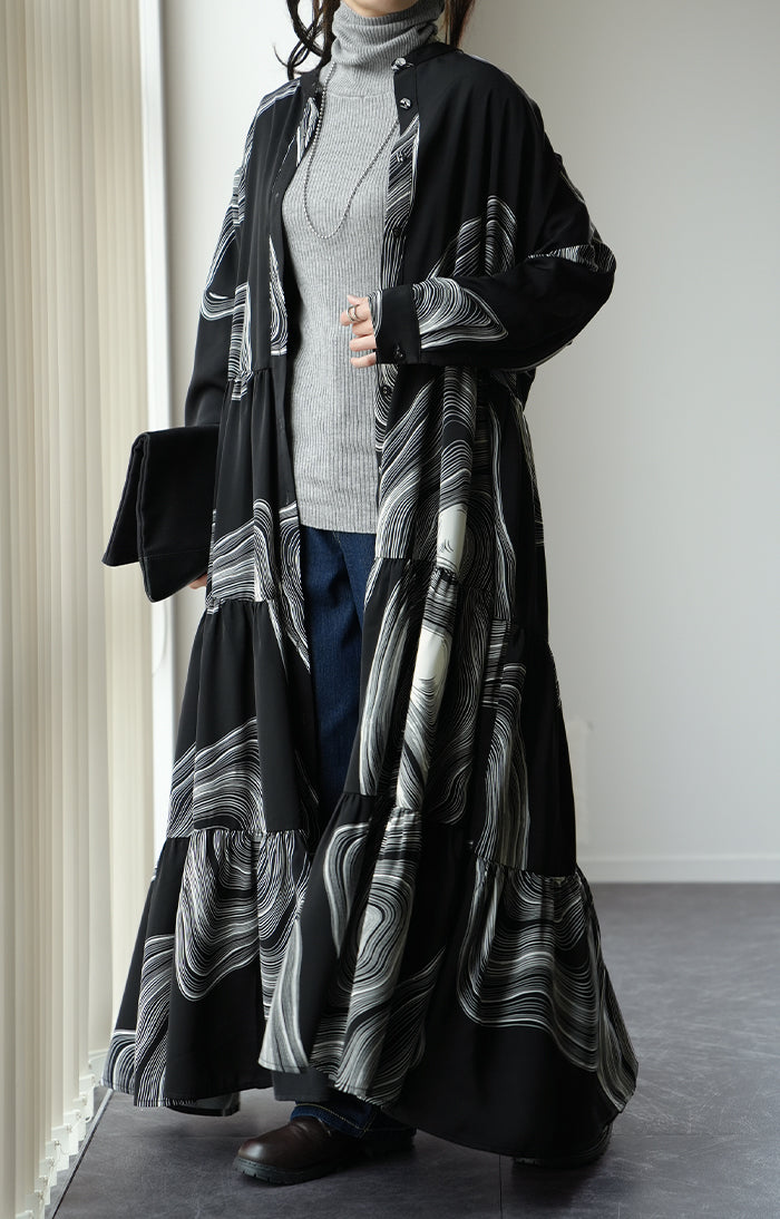 芸術の秋、美術館や映画館に着ていきたくなる雰囲気ですね。