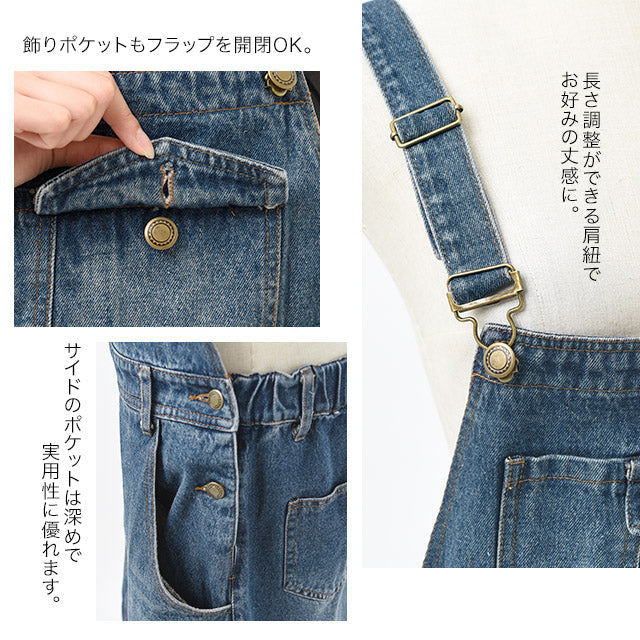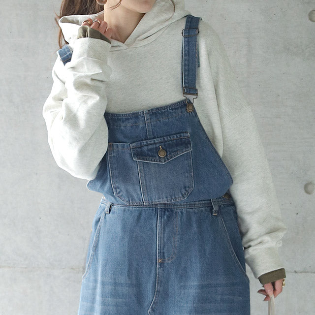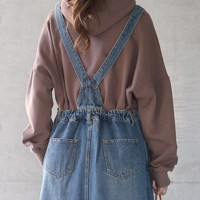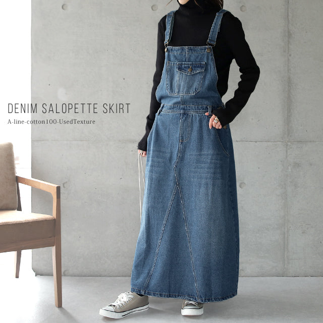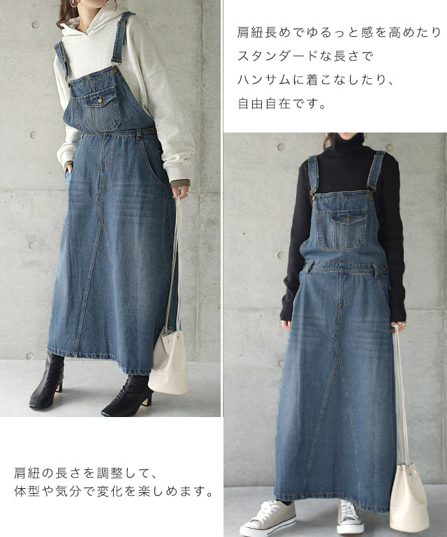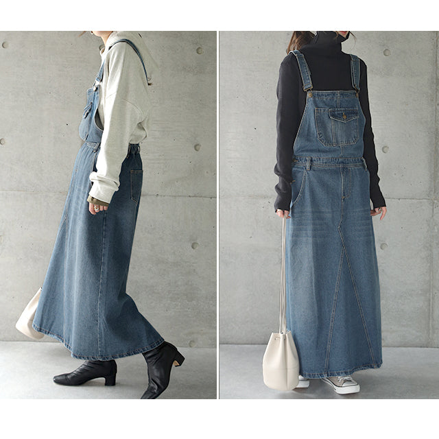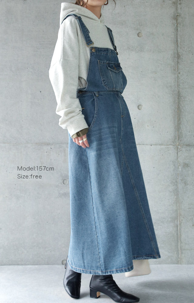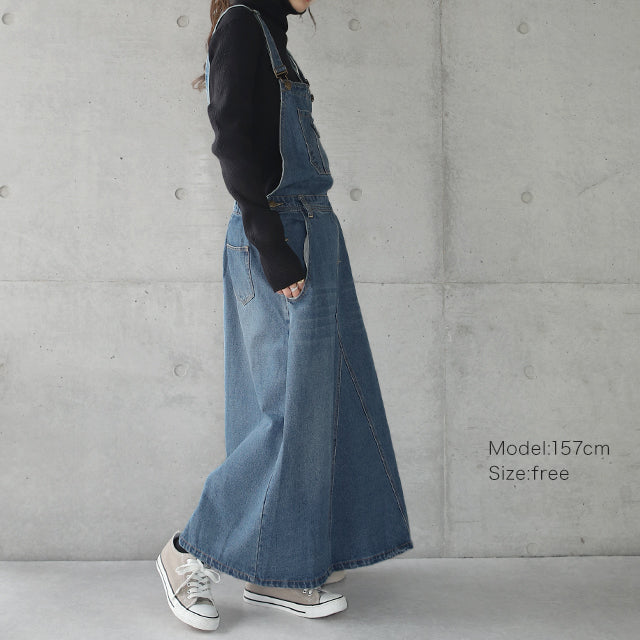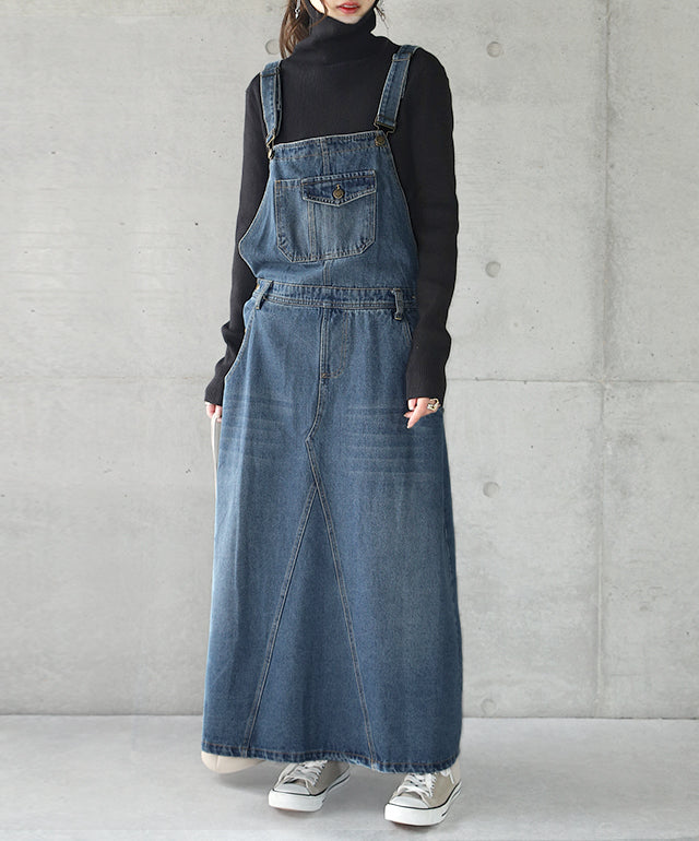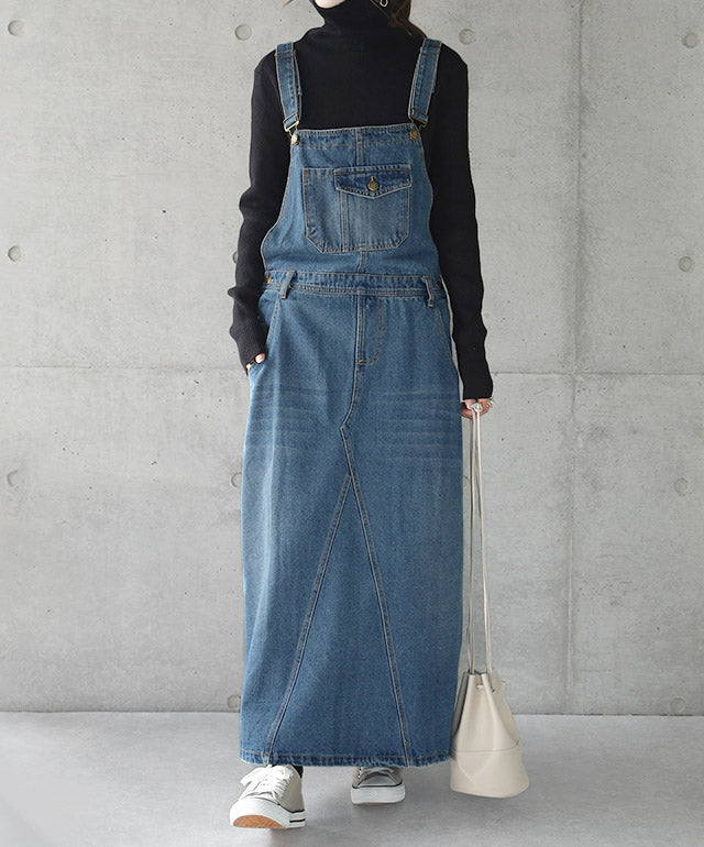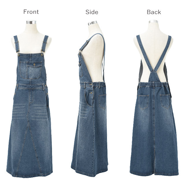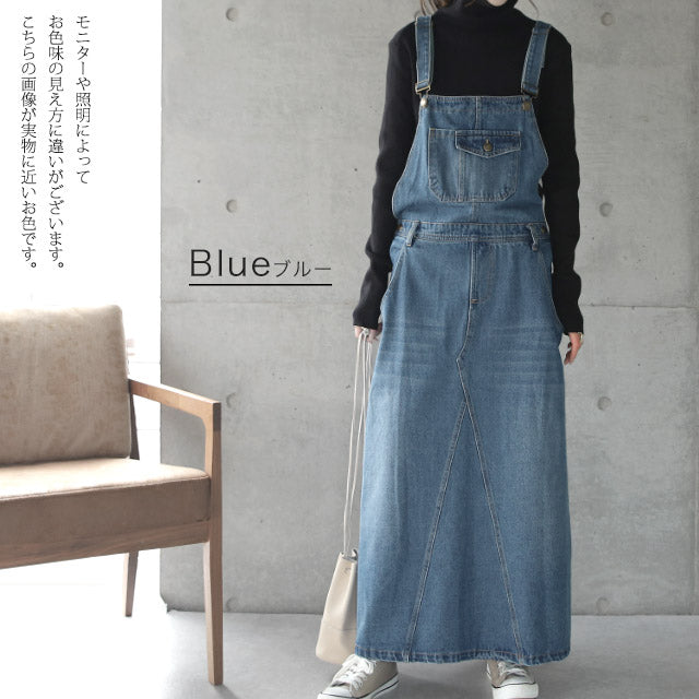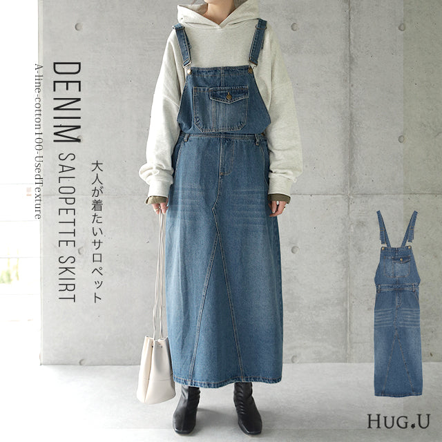 ワンピース デニムワンピース ジャンパースカート ロングワンピース ワンピ デニム Aライン オーバーオール サロペット サロペ スリット 大きいサイズ ロング Aラインワンピース ゆったり 体型カバー ビッグシルエット ビッグ HUG.U 春 夏