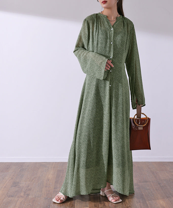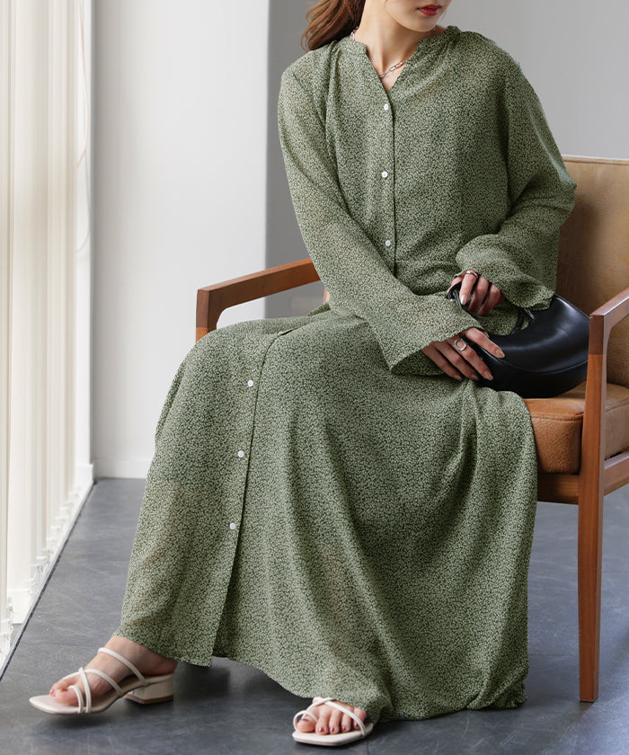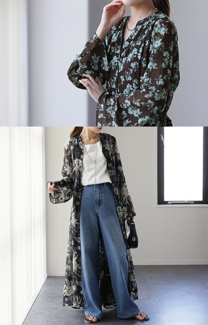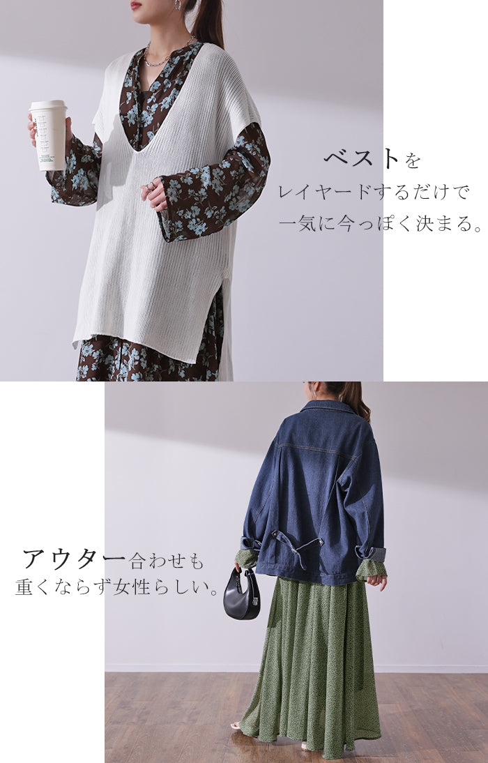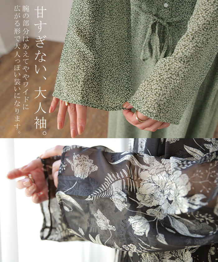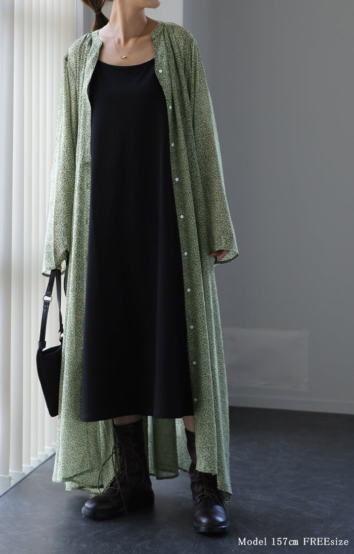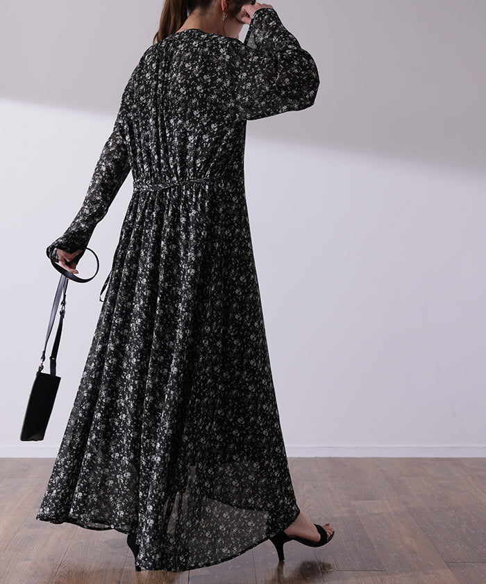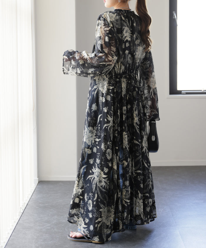 インナーキャミワンピがセットになったシフォンワンピースです。甘くなりがちな花柄ワンピですが落ち着いた色味で大人な印象に。ワンピースとしてはもちろん前開きでシフォンガウンとしても使えてロングシーズン活躍します。■モデル着用アイテム ⇒ トップス / パンツ■モデル着用アイテム(左) ⇒ トップス■モデル着用アイテム(右) ⇒ アウター■モデル着用アイテム(上) ⇒ トップス■モデル着用アイテム(下) ⇒ アウター※モデル着用商品は在庫切れ・販売終了・リンク切れの場合がございます。