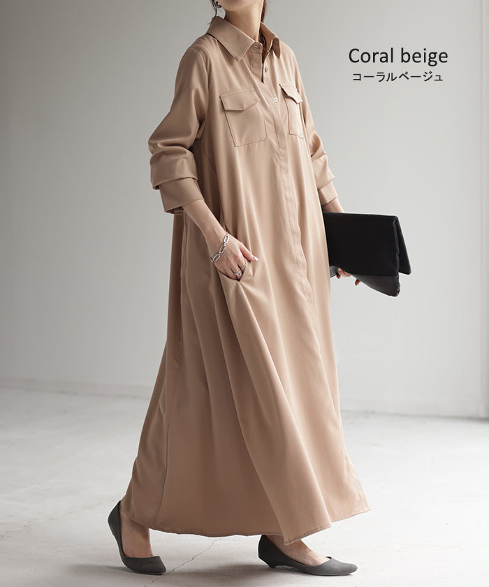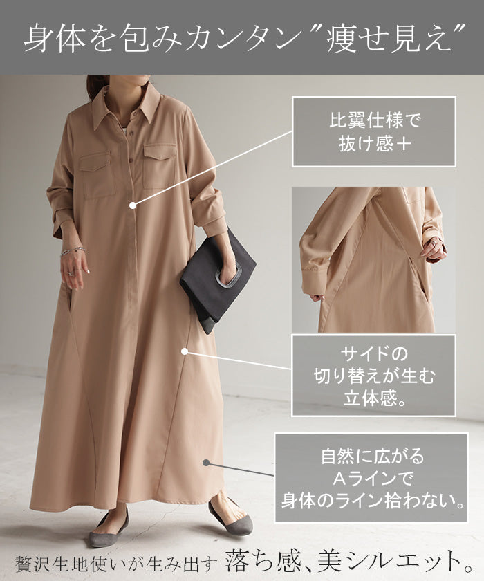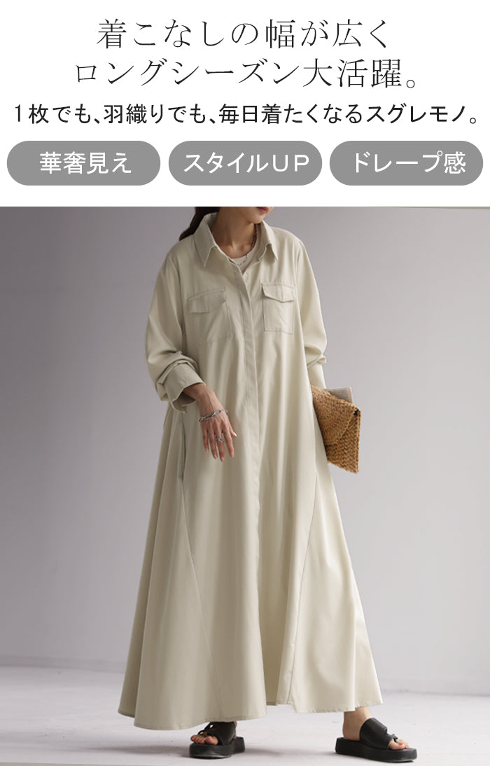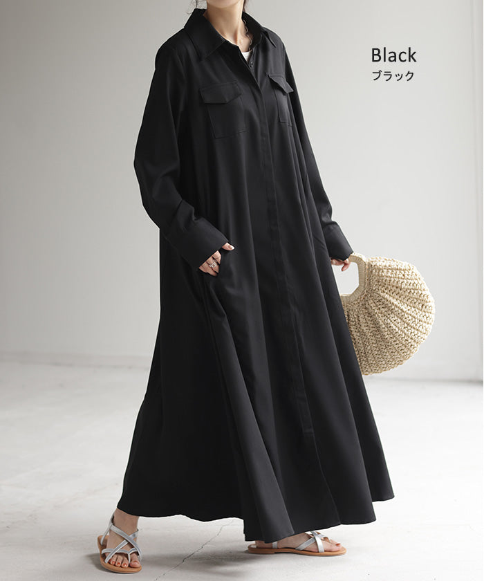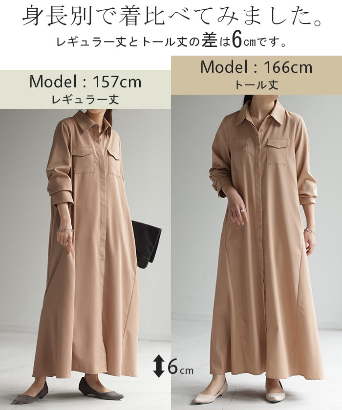 157センチで肩幅がっしりのややポッチャリ体型。黒を購入。くるぶし隠れます。フワッと広がるので体型カバーしながら上品に着こなせるワンピースでおすすめです。