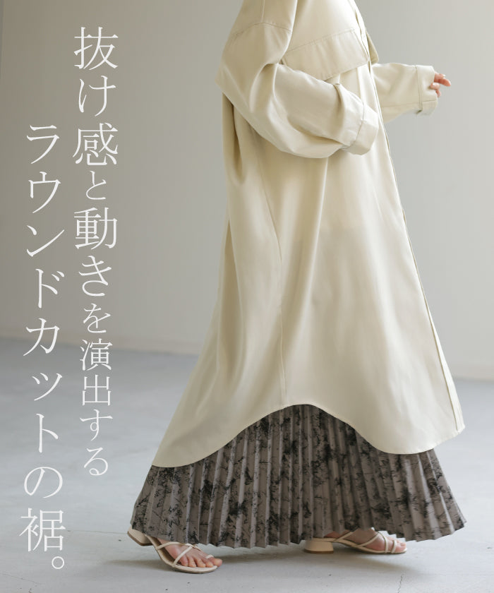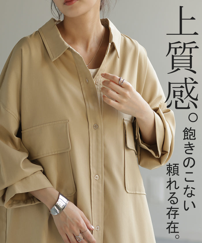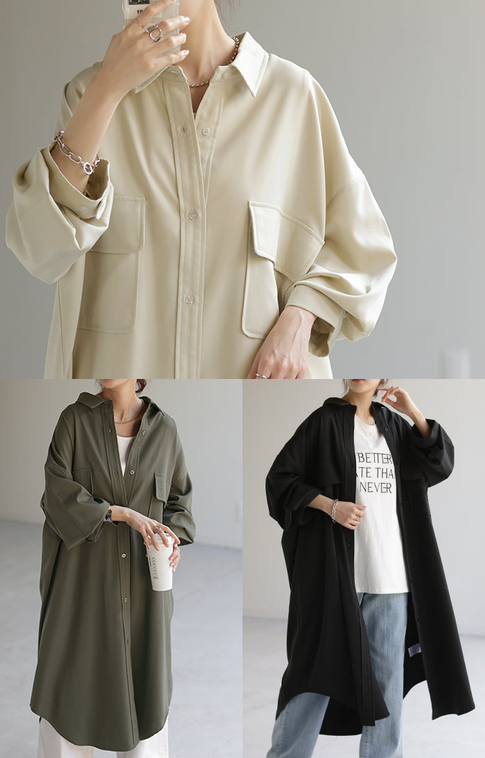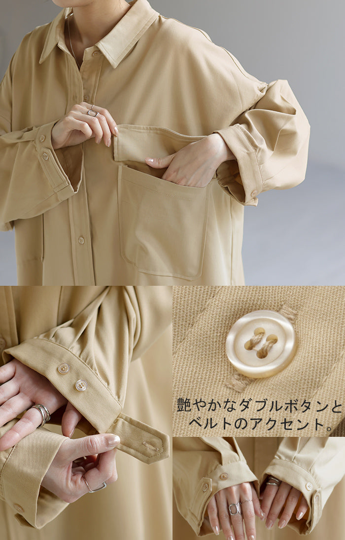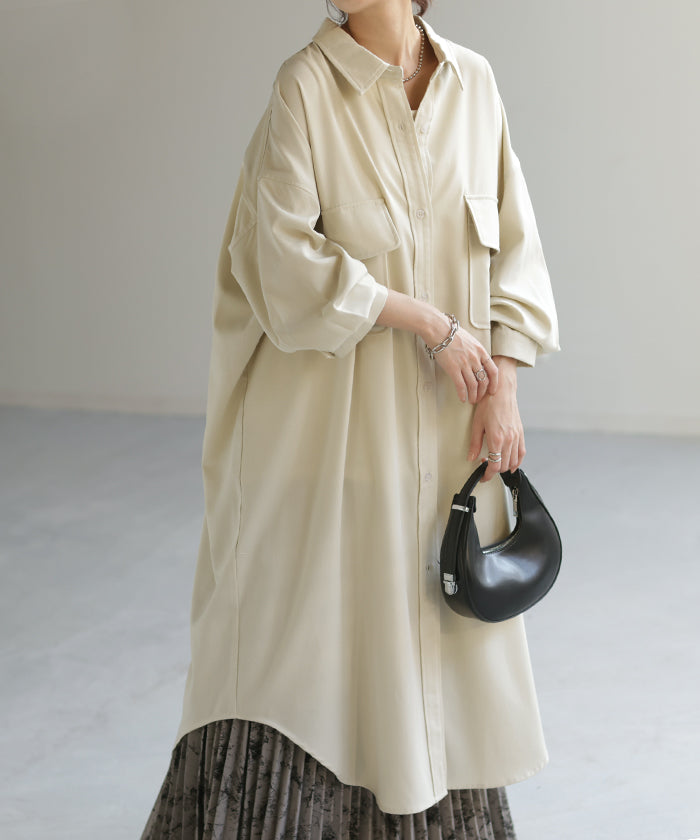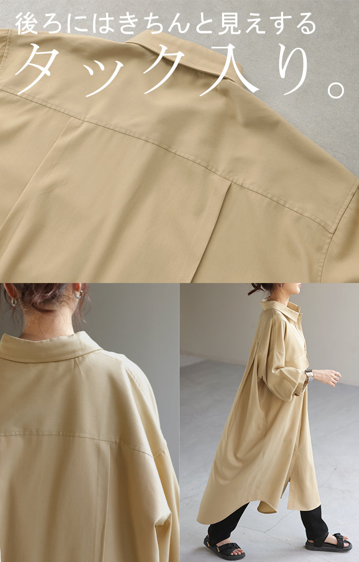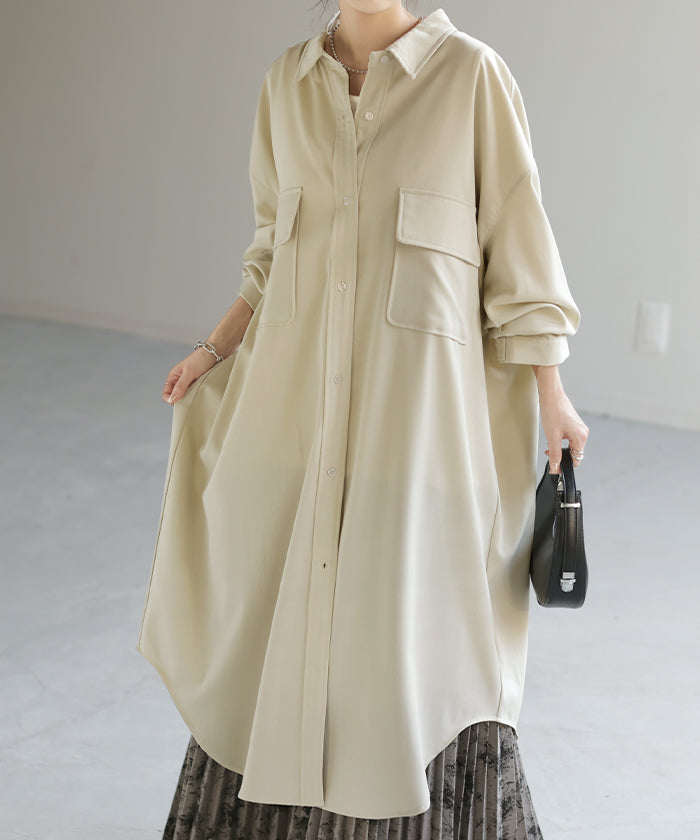 季節の変わり目に、羽織り物として購入。 生地感は厚過ぎず、薄過ぎず、羽織るとスルッと落ちて軽く、身体に負荷は感じらません。 デザインも前を開ければロングジャケットにも見えるし、閉じてワンピースとして着たり、ロングシーズン活躍してくれそうです。