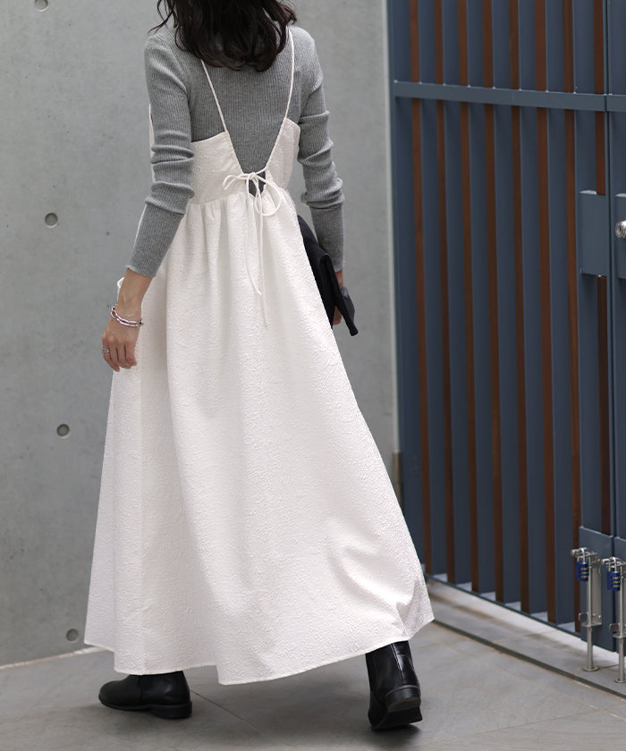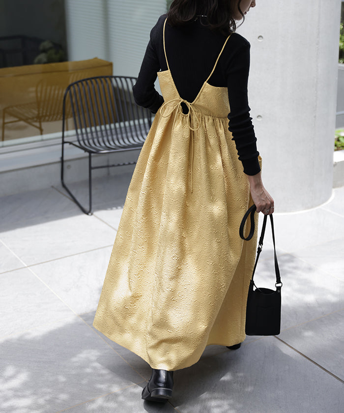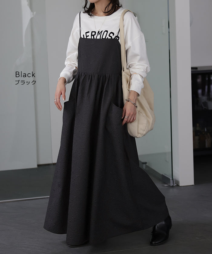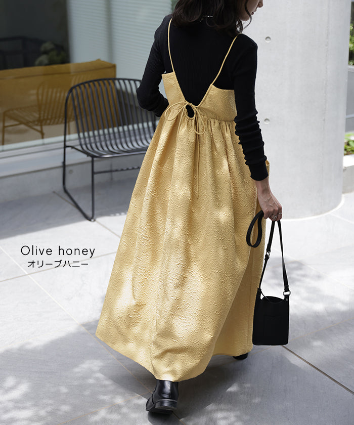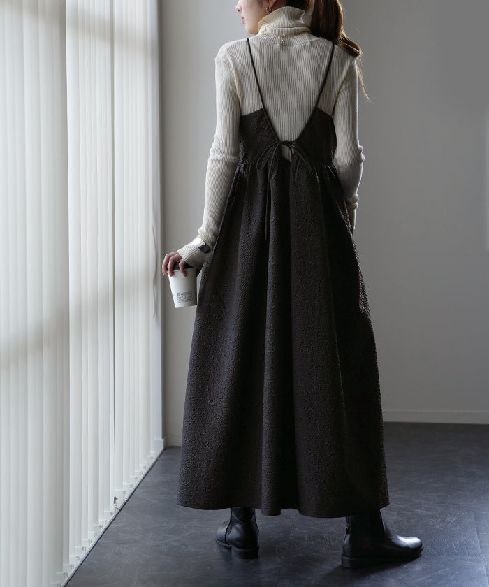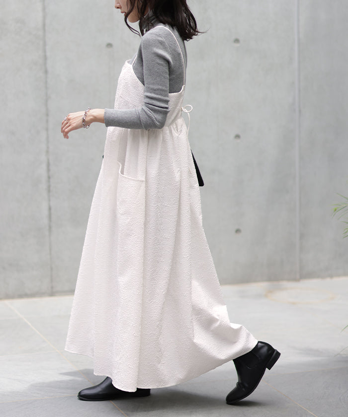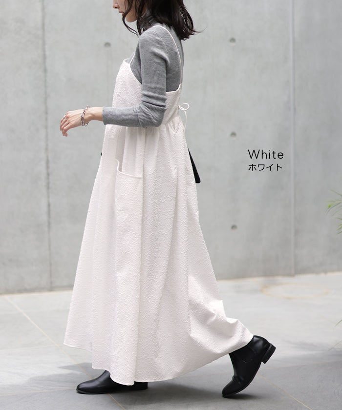 凹凸感のあるジャカード素材がパッと目を引くキャミワンピースです。ギャザーがたっぷり入ったAラインのシルエットが今っぽい。インナーを重ねてレイヤードしたり上に羽織を合わせたスタイリングなど幅広く楽しめます。■モデル着用アイテム ⇒ トップス■モデル着用アイテム ⇒ トップス■モデル着用アイテム ⇒ トップス■モデル着用アイテム ⇒ トップス■モデル着用アイテム ⇒ トップス■モデル着用アイテム ⇒ トップス※モデル着用商品は在庫切れ・販売終了・リンク切れの場合がございます。