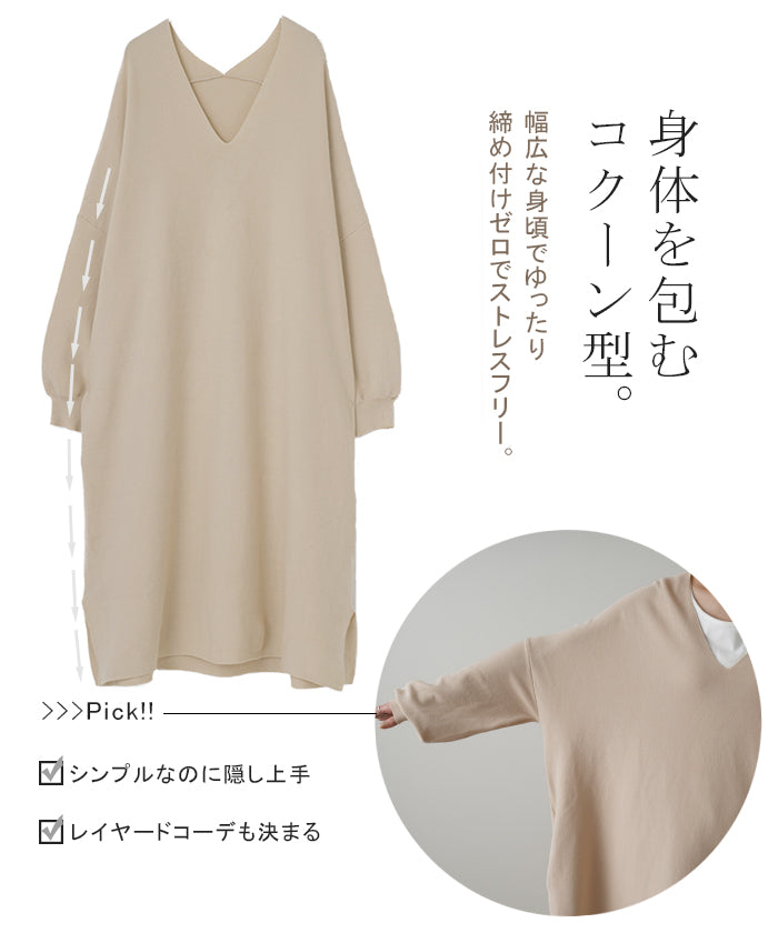 生地がしっかりしているのでバストから落ちるドレープがきれいなシルエットを作ります。体型隠しに最高!