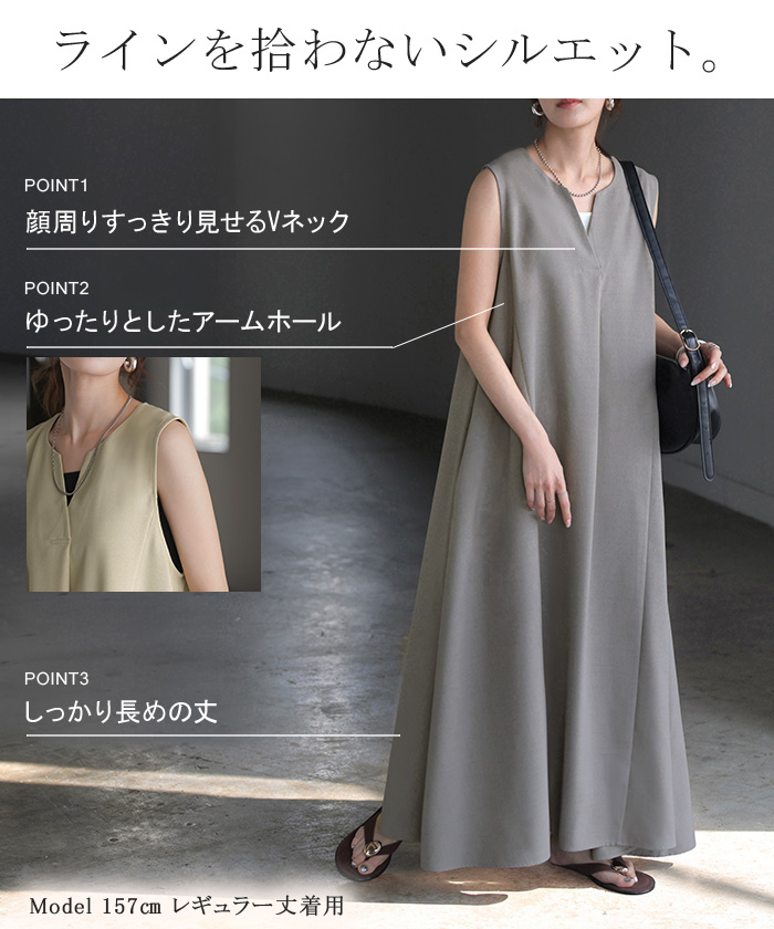170㌢高身長です 着丈もくるぶしくらいまであってよかったです なかなか長いワンピースには巡り合わないのでいい感じでした 裏地とかはないので何か中に来てじゃないとちょっと不安な感じでしたが夏はヘビロテしそうな予感です