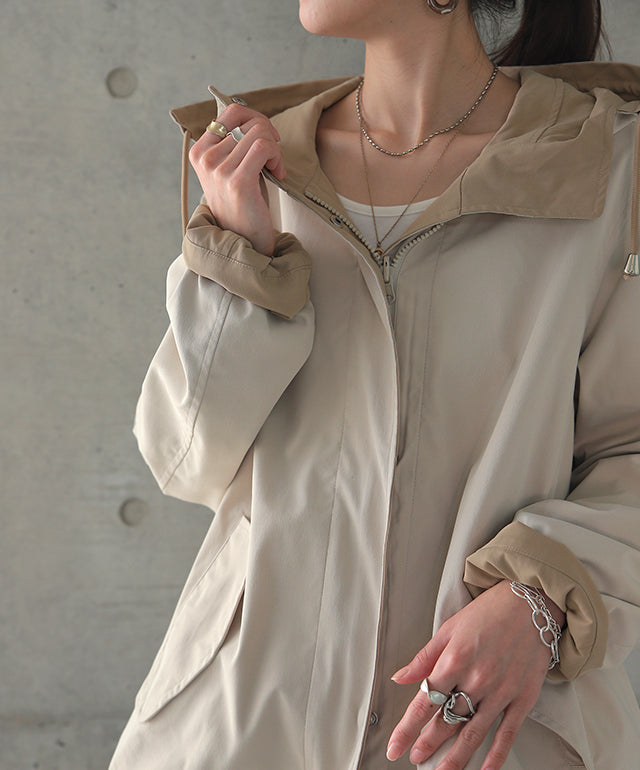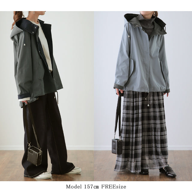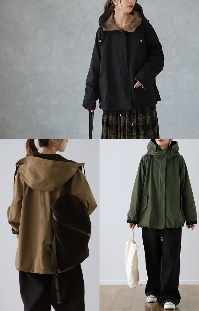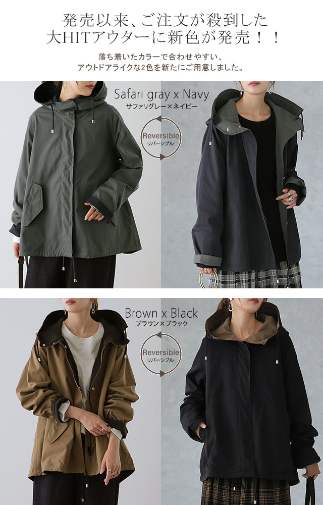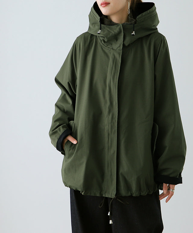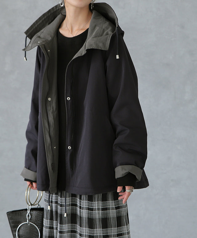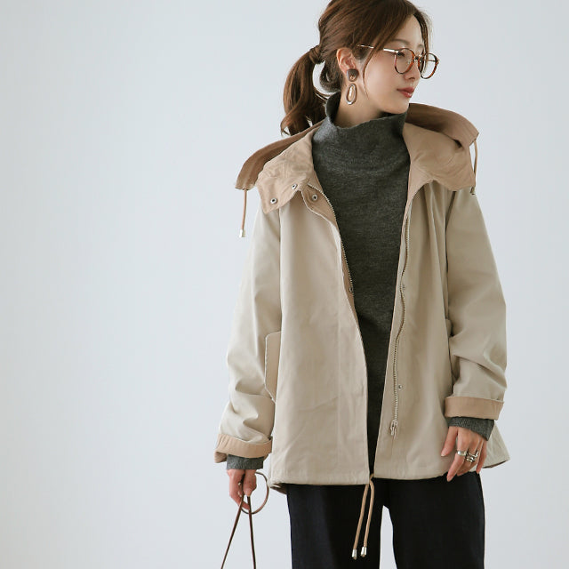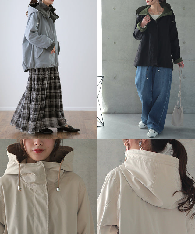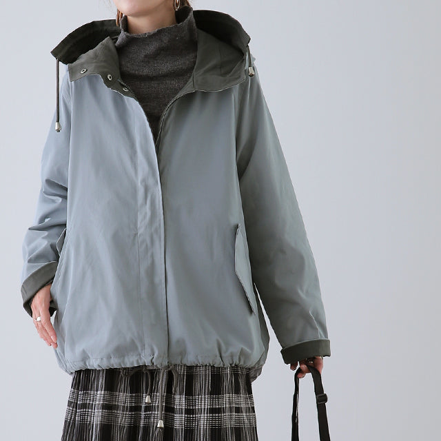 驚愕の機能性を持ちながら、お洒落な配色でこなれたスタイルを演出。全体を閉めると高い襟とボリュームフードで小顔効果と風よけもバッチリ。裾のドローコードでシルエットも調節可能。リバーシブルなので、気分やシーンに合わせて表裏で違うスタイリングを楽しめます。トレンドのスポーティーから、きれいめカジュアルまで対応。