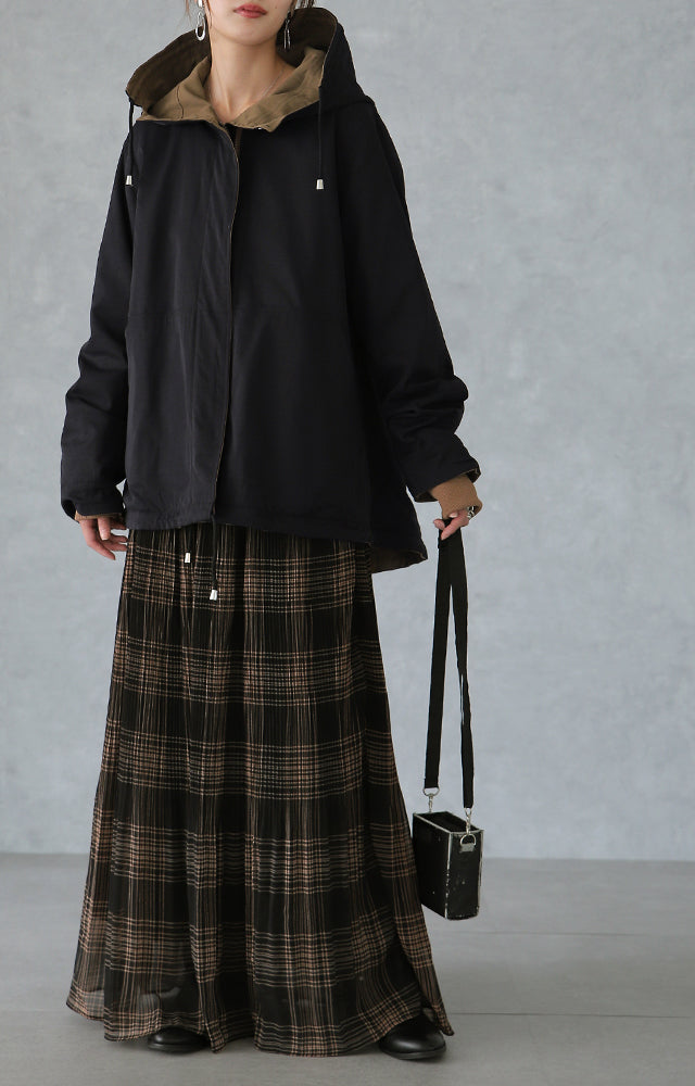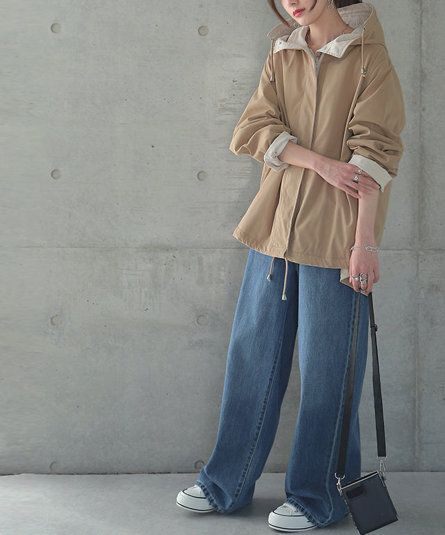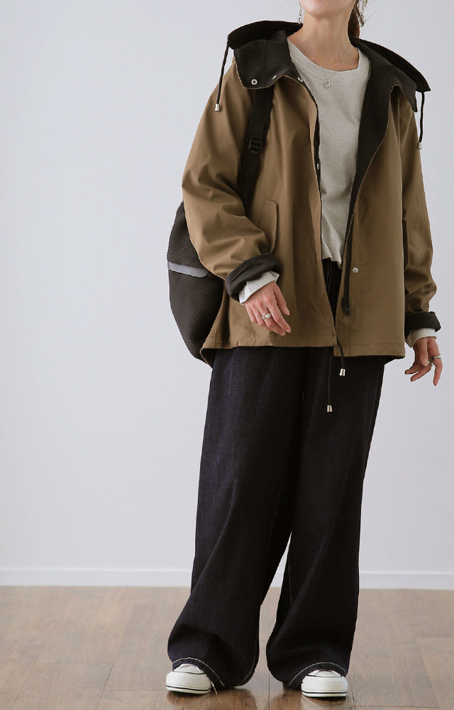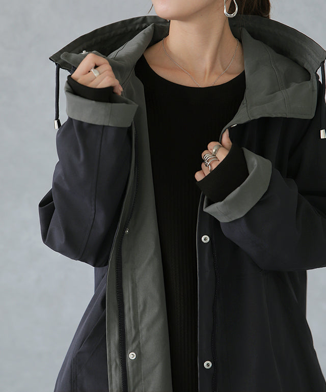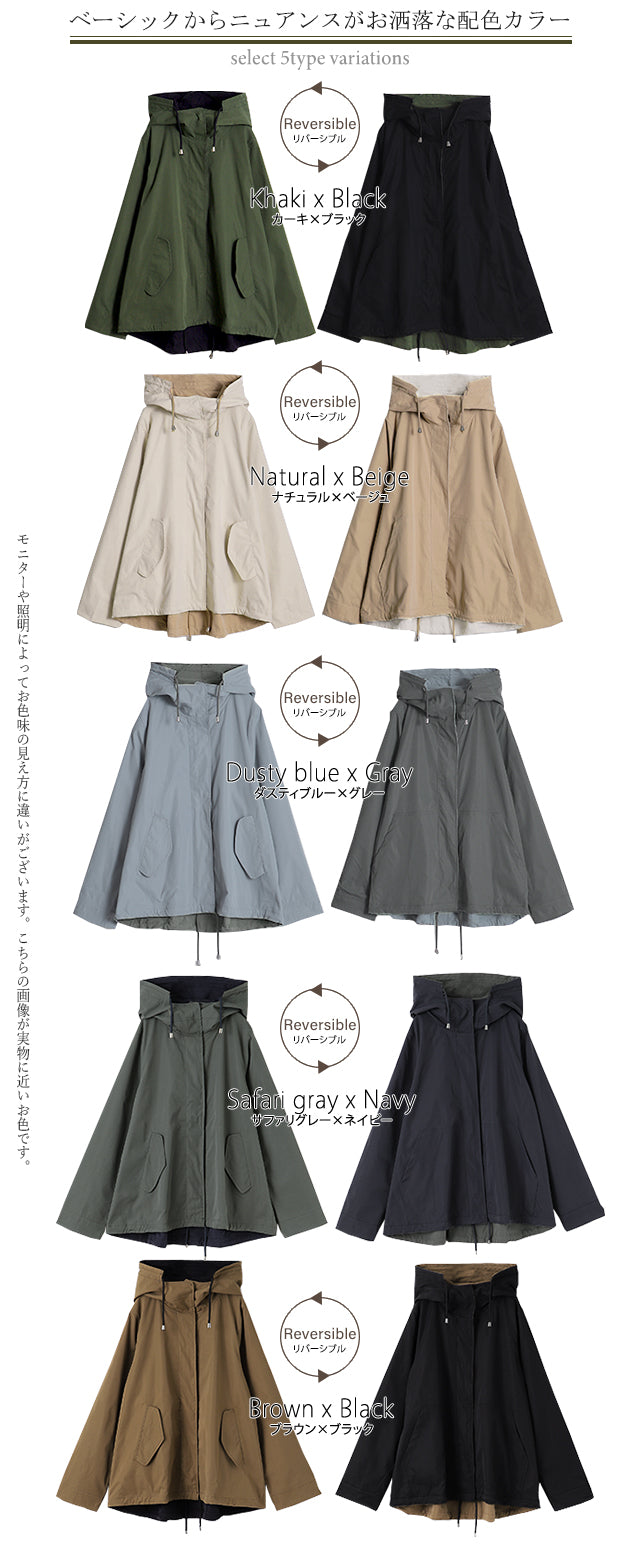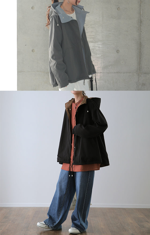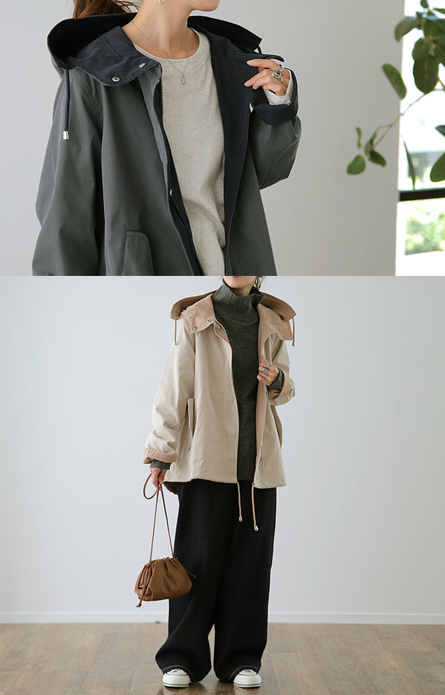 驚愕の機能性を持ちながら、お洒落な配色でこなれたスタイルを演出。全体を閉めると高い襟とボリュームフードで小顔効果と風よけもバッチリ。裾のドローコードでシルエットも調節可能。リバーシブルなので、気分やシーンに合わせて表裏で違うスタイリングを楽しめます。トレンドのスポーティーから、きれいめカジュアルまで対応。