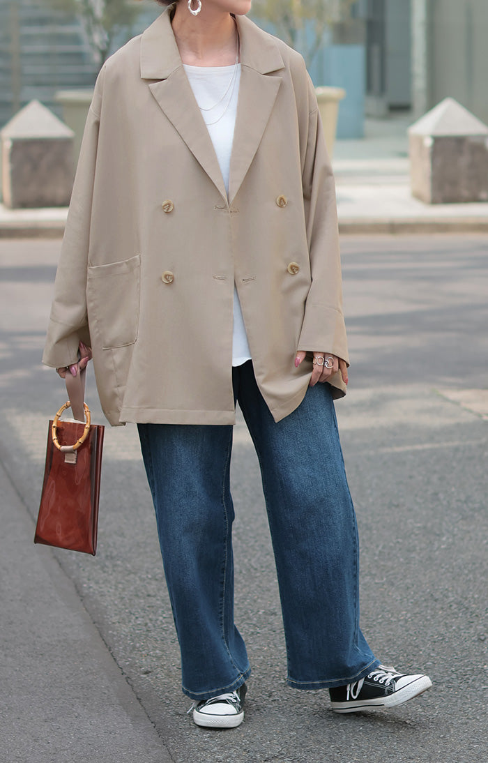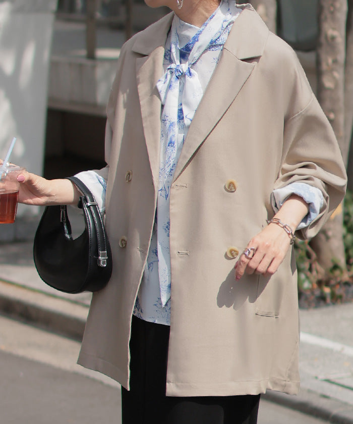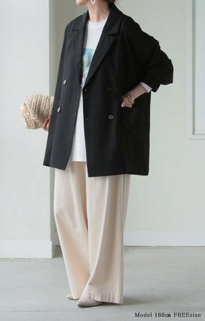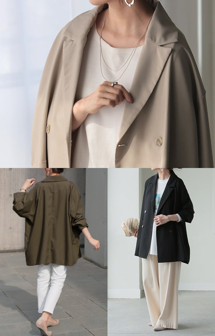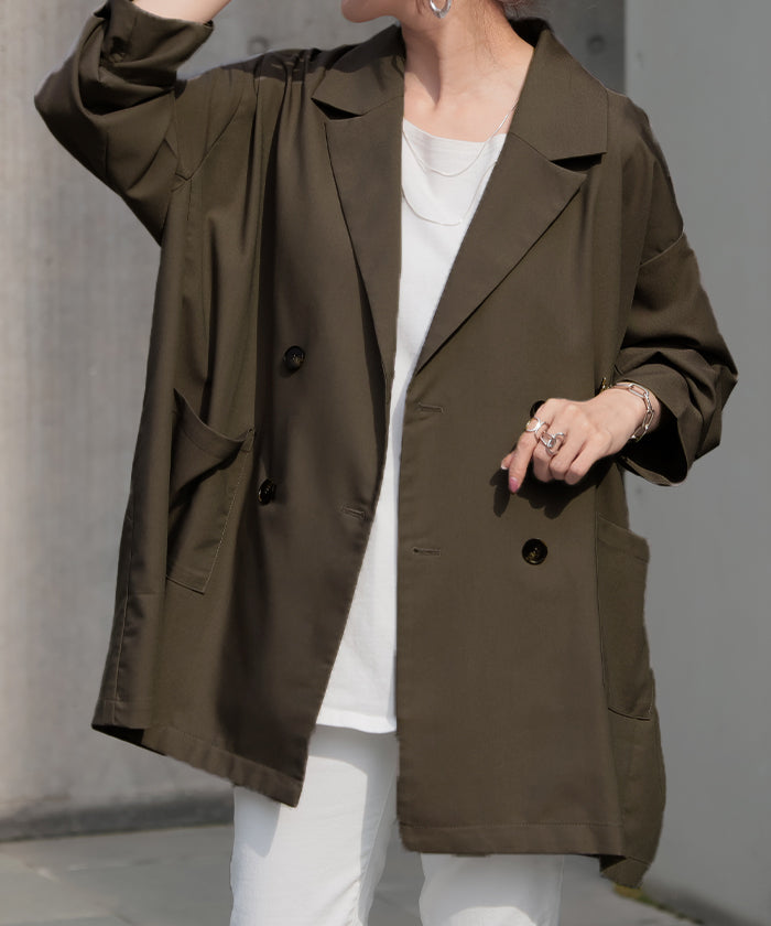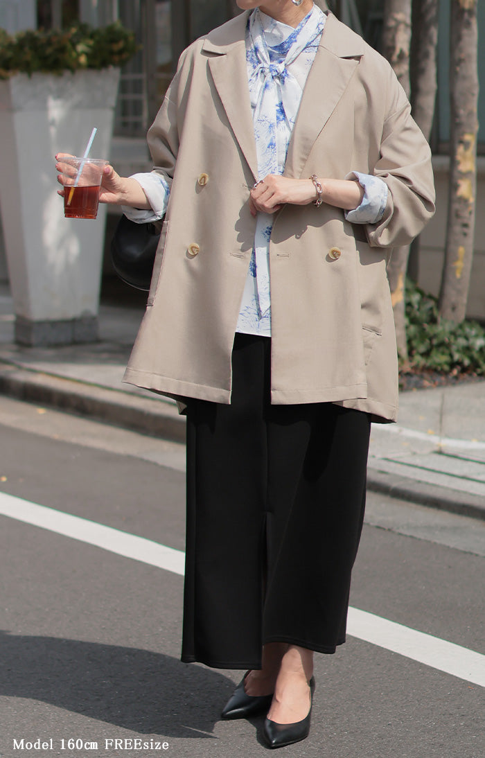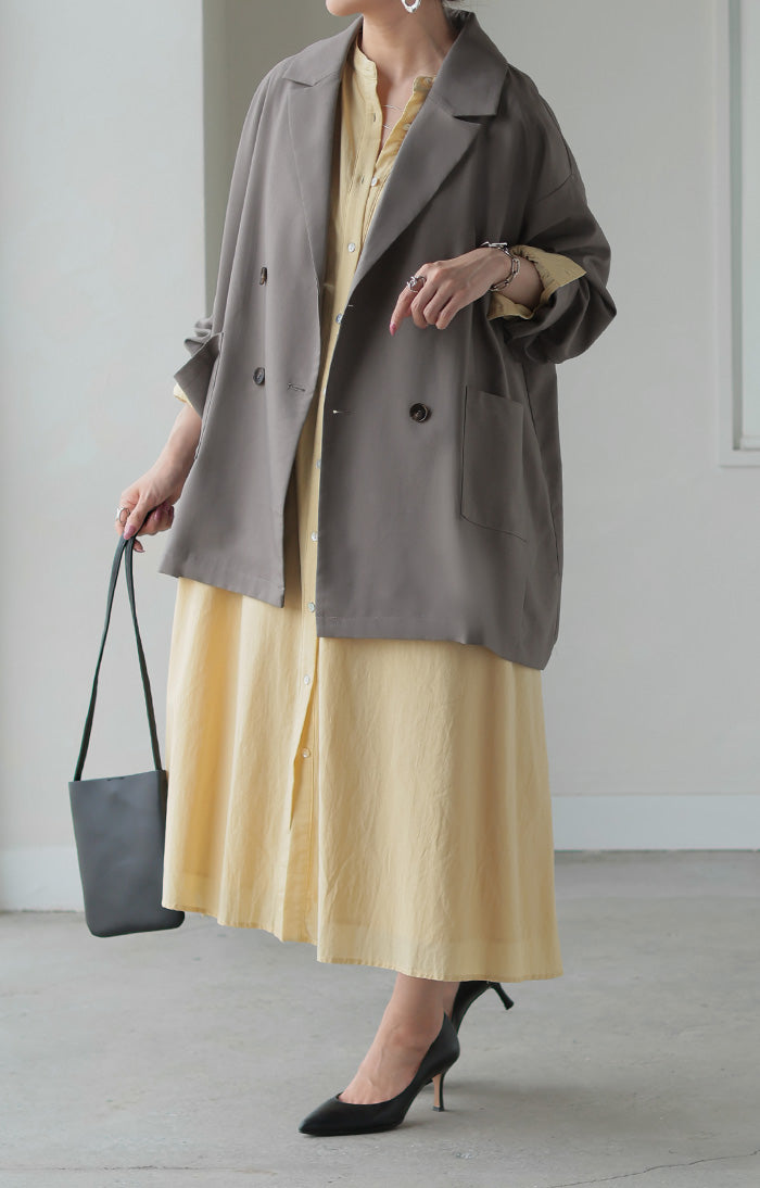 まず3Lの私でもゆったり着られました!どのお色も使い勝手が良さそうでかなり悩みましたが夏が来て暑くなるギリギリまで一緒にお出かけしたくてベージュにしました。裏地がないので軽やかに着られるけれどもボタンが付いている部分には補強の裏地を部分的に付けてくださったり、表と裏のボタンをあわせ縫いしてくれていたりとお洋服を丈夫に長く楽しめるよう作ってくださっている心遣いがステキで5千円以下でこのお作りはありがたいです。パールブローチでフォーマルっぽくしたり缶バッチやピンズでPOPにしたり楽しみ方の幅が広そうなところも嬉しいです。ステキなお洋服をありがとうございました。