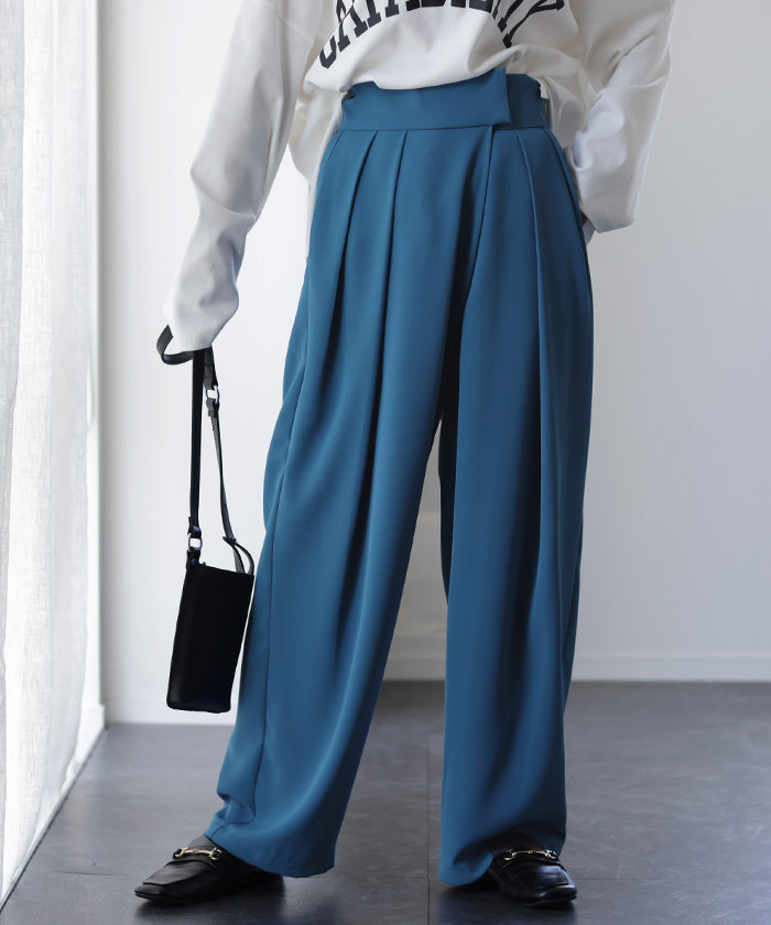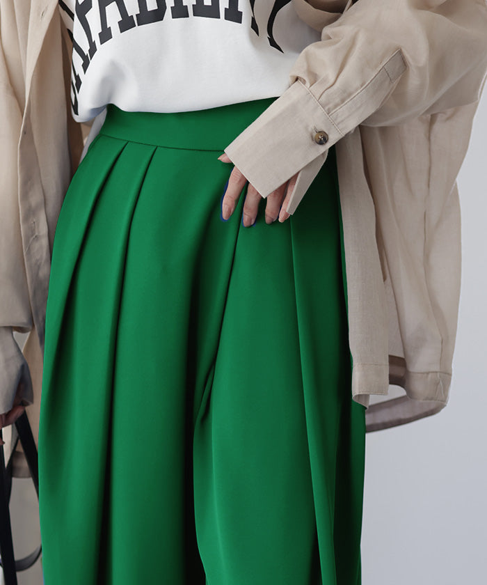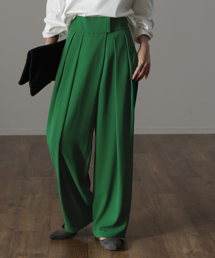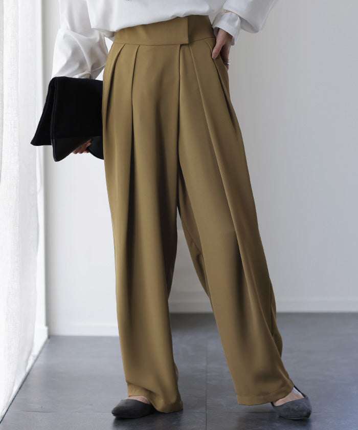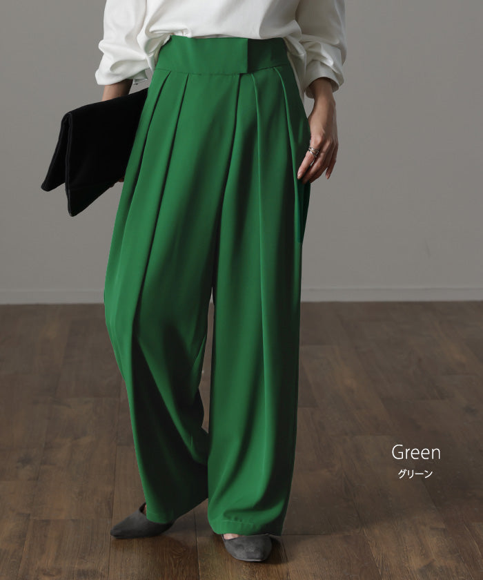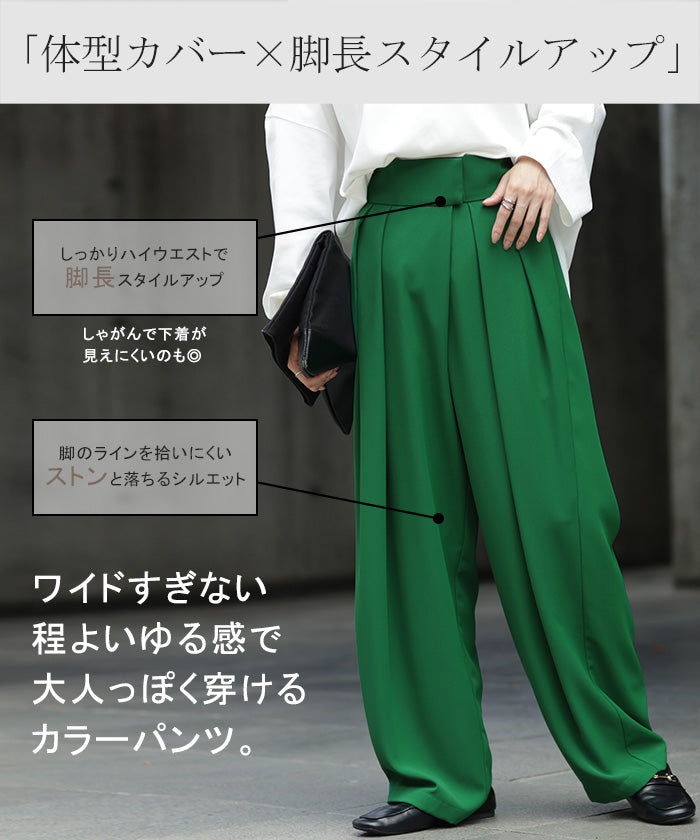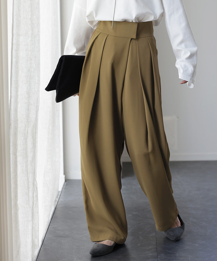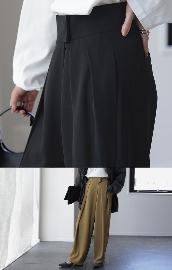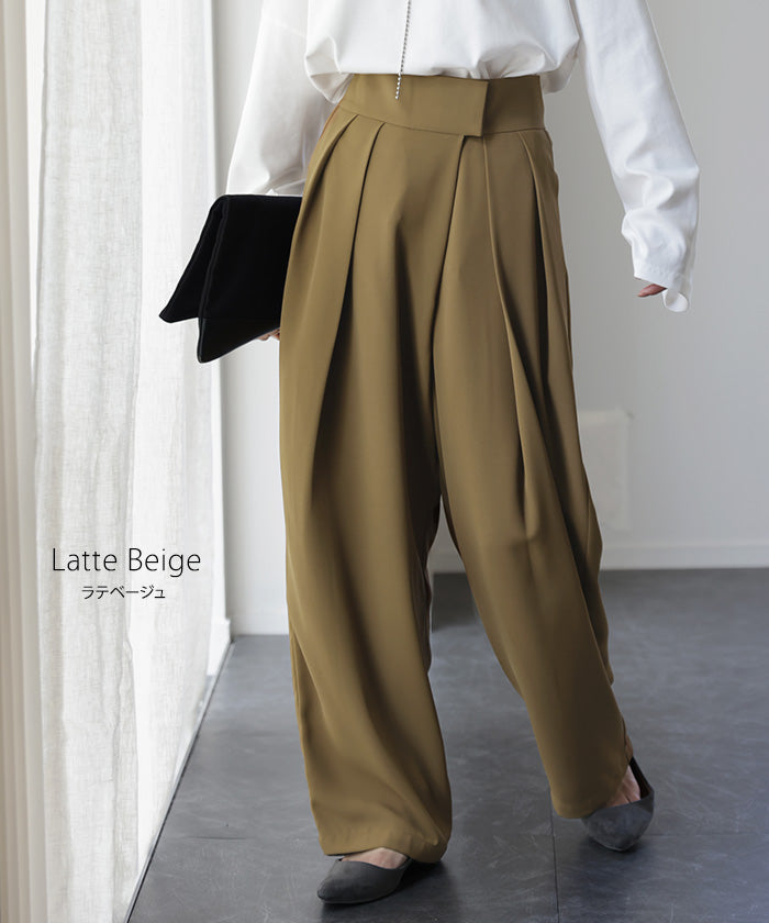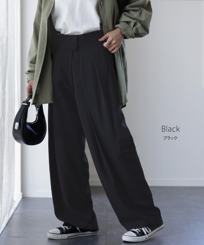 ウエスト部分に面ファスナーを採用したゆるシルエットのスラックスです。大きめのタックが生み出すメリハリのあるシルエットがお気に入り間違いなし。綺麗なシルエットでスタイルアップ&体型カバーが嬉しいスラックスです。※モデル着用商品は在庫切れ・販売終了・リンク切れの場合がございます。