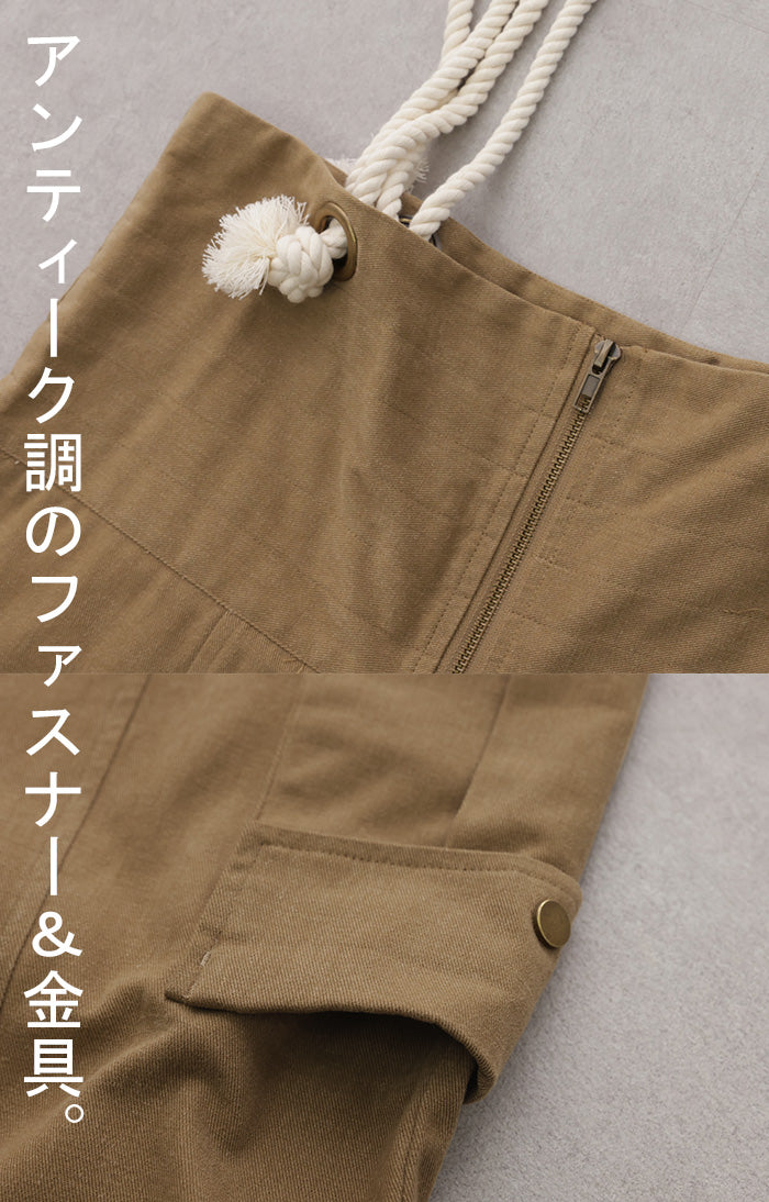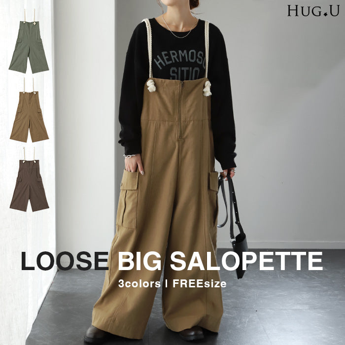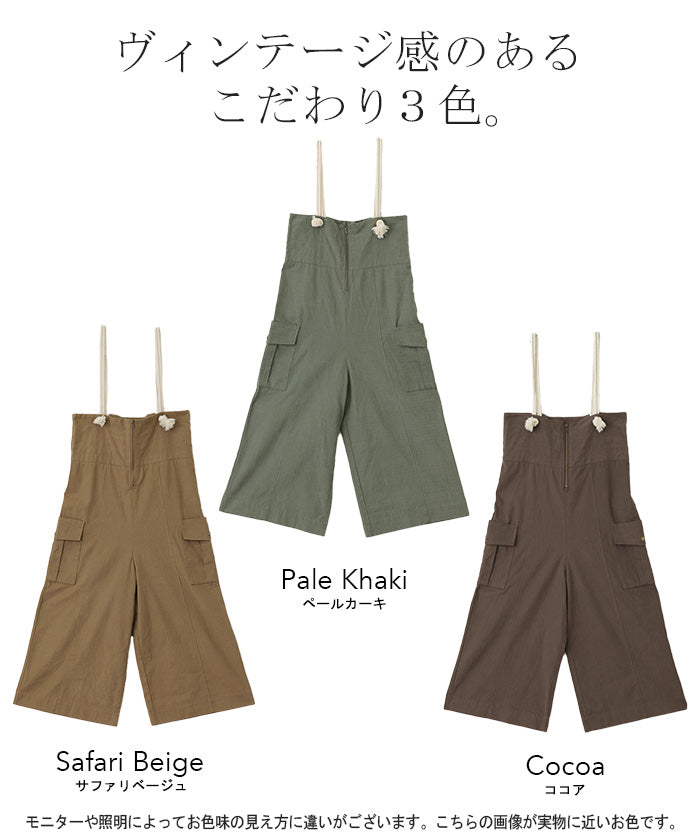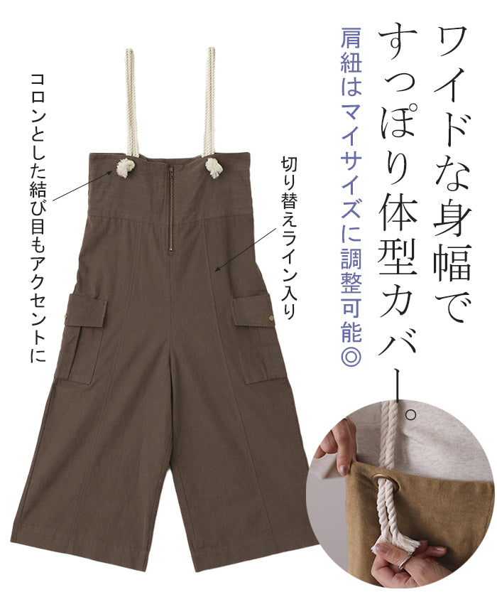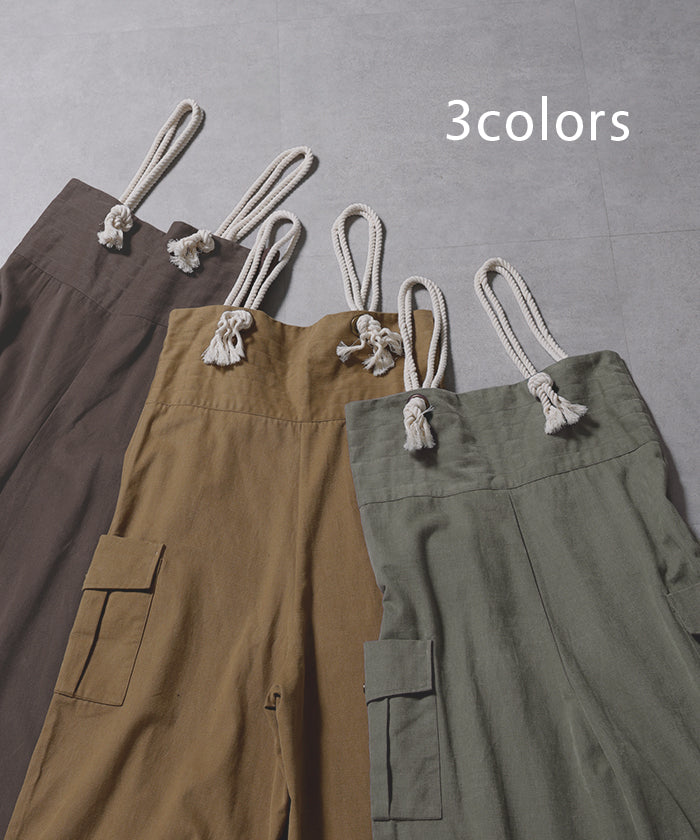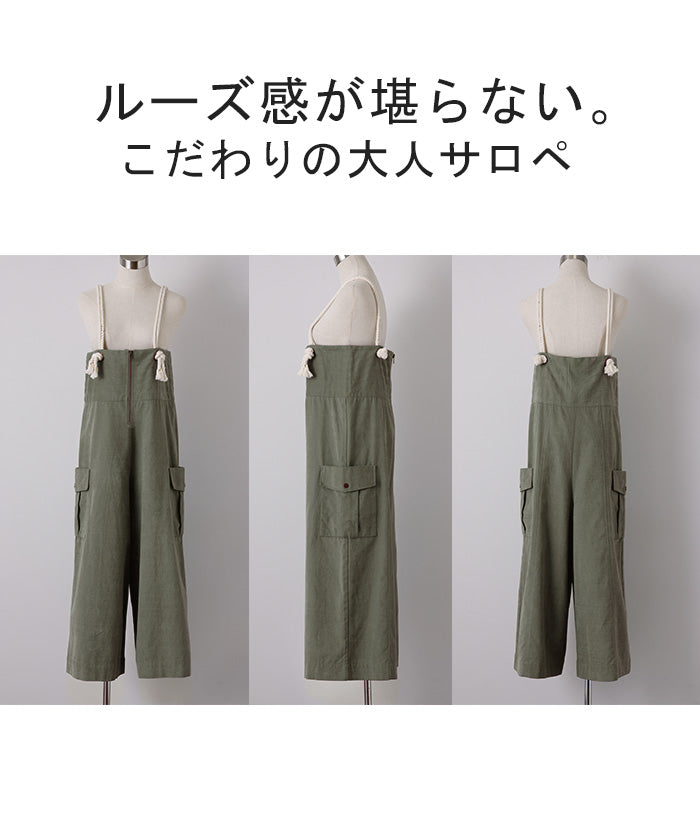 「 アソビゴコロ 」 サロペ ロープ 綿100 レディース オールインワン 大きいサイズ サロペット つなぎ ワイドパンツ ワイド オーバーオール パンツ ボトムス ロング 体型カバー キャンプ アウトドア ゆったり 無地 カーキ 白 黒 作業着 春 夏 HUG.U