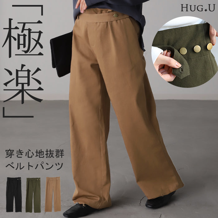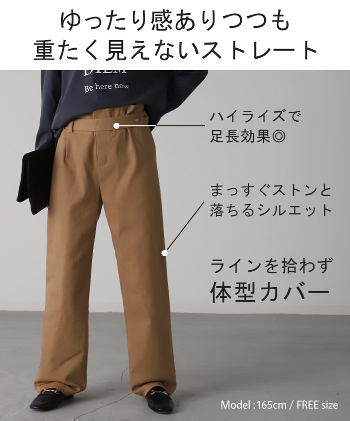 パンツ 「 楽なのにデザイン性◎ 」 ベイカーパンツ レディース ゴム ストレッチ ストレート ワイドパンツ ワイド 大きいサイズ ボトムス チノパン チノパンツ ボトム 体型カバー ズボン ゆったり ハイウエスト お洒落 春 夏 ベージュ カーキ HUG.U