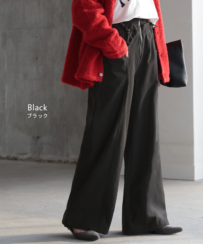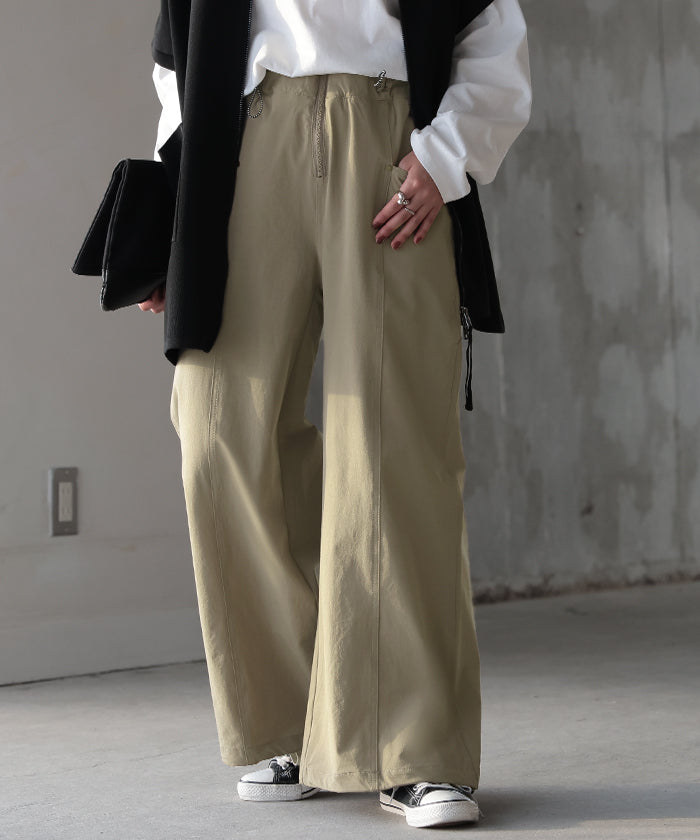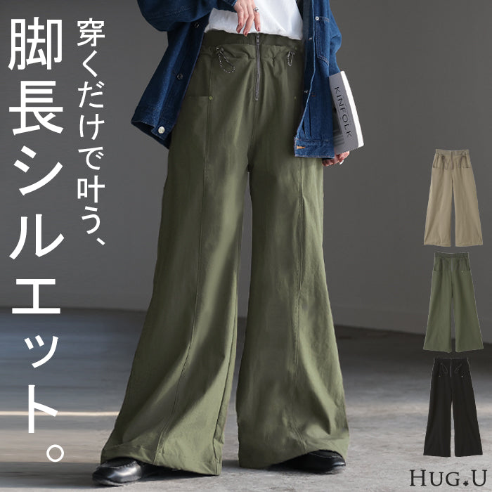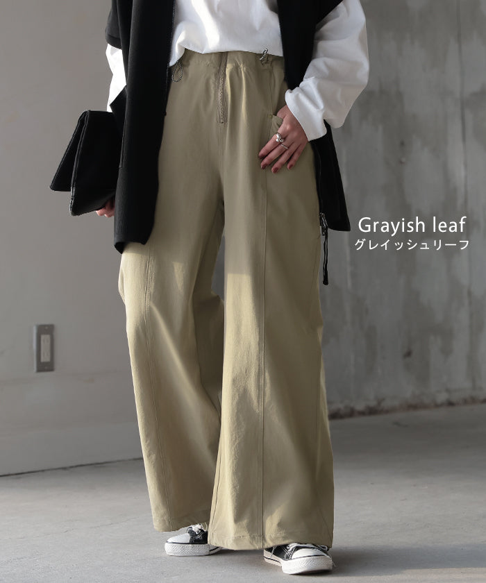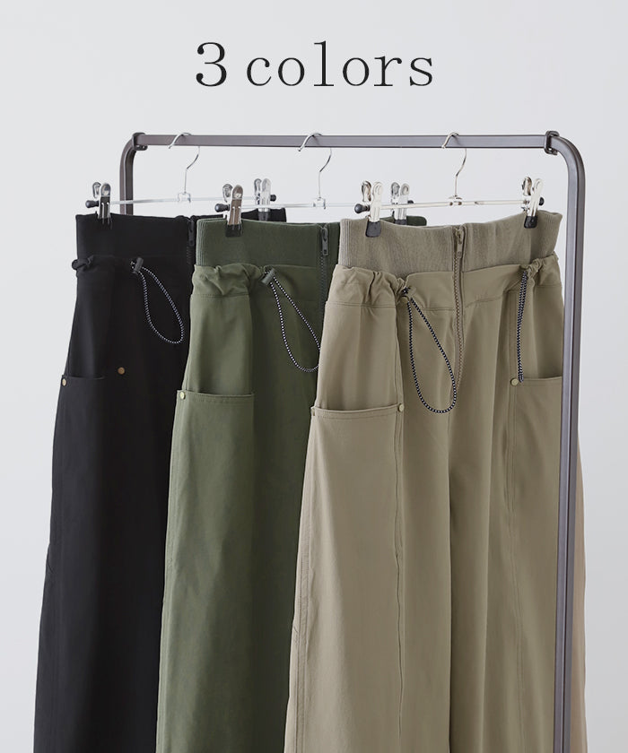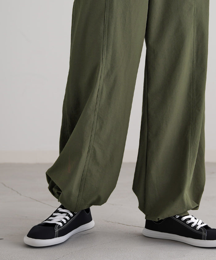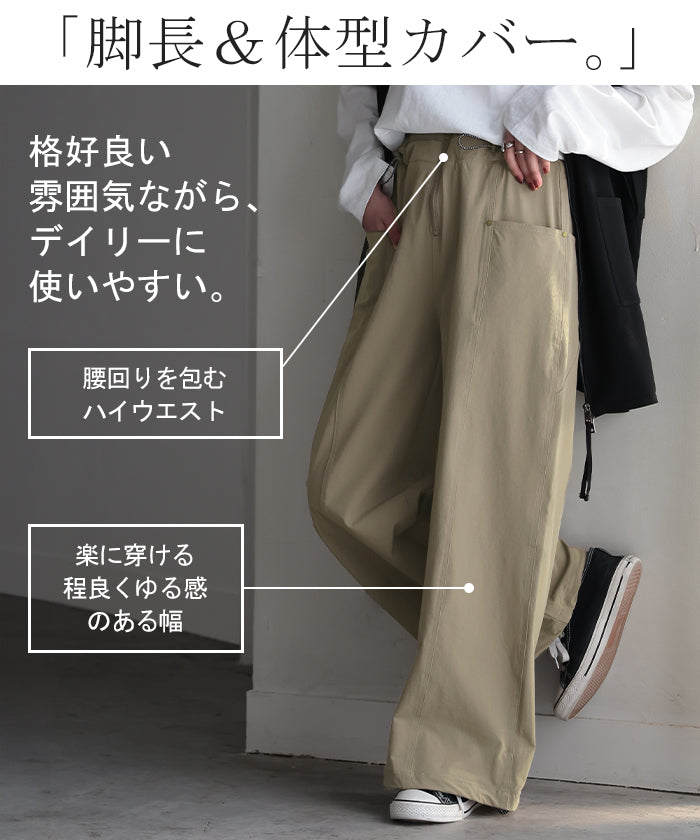 パンツ カーゴパンツ ワイドパンツ レディース ボトムス カーゴ ワイド ゴム ロング ジョガーパンツ ワークパンツ ズボン ストレート ナイロン 風 パラシュートパンツ 薄手 無地 大きいサイズ 体型カバー 軽い ベージュ 黒 ブラック カーキ 春 夏 HUG.U