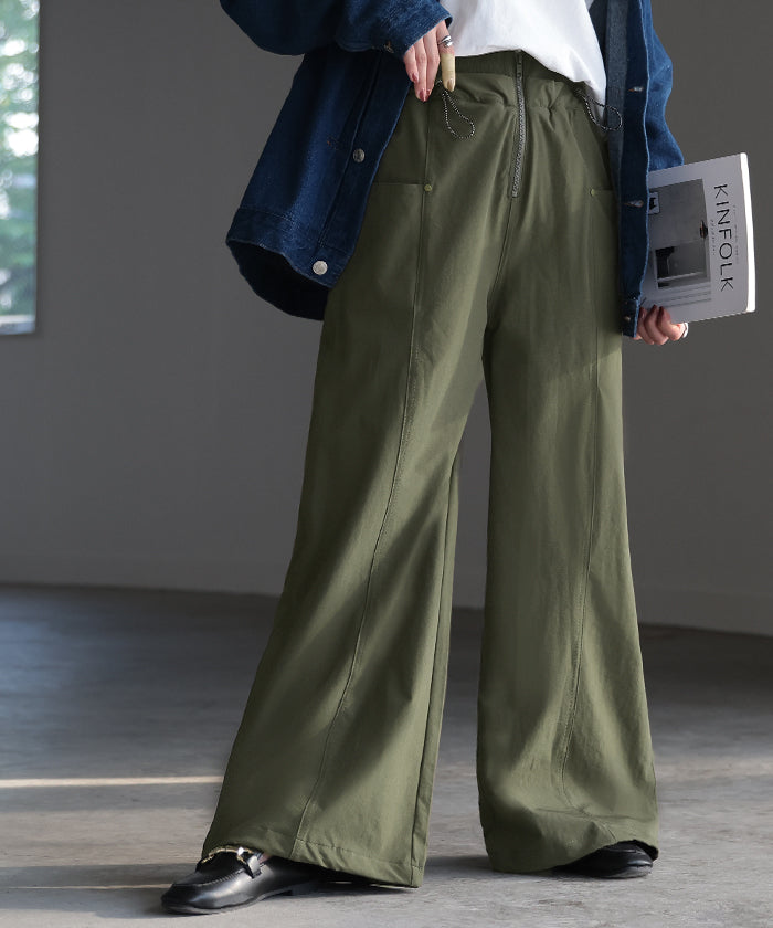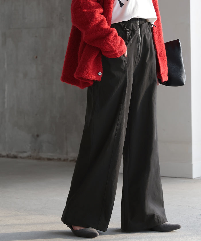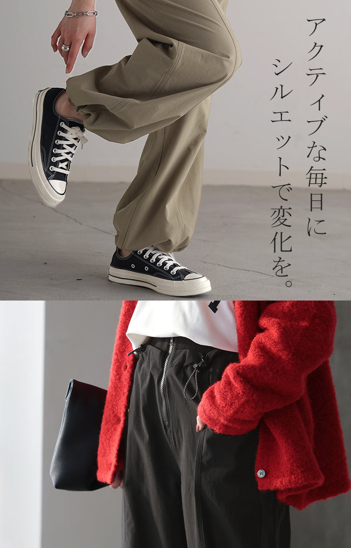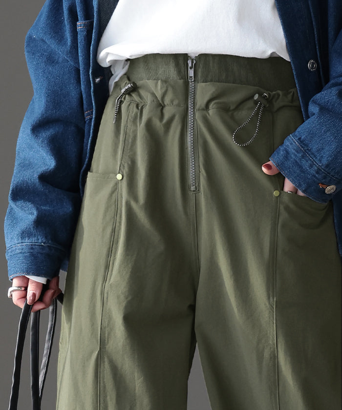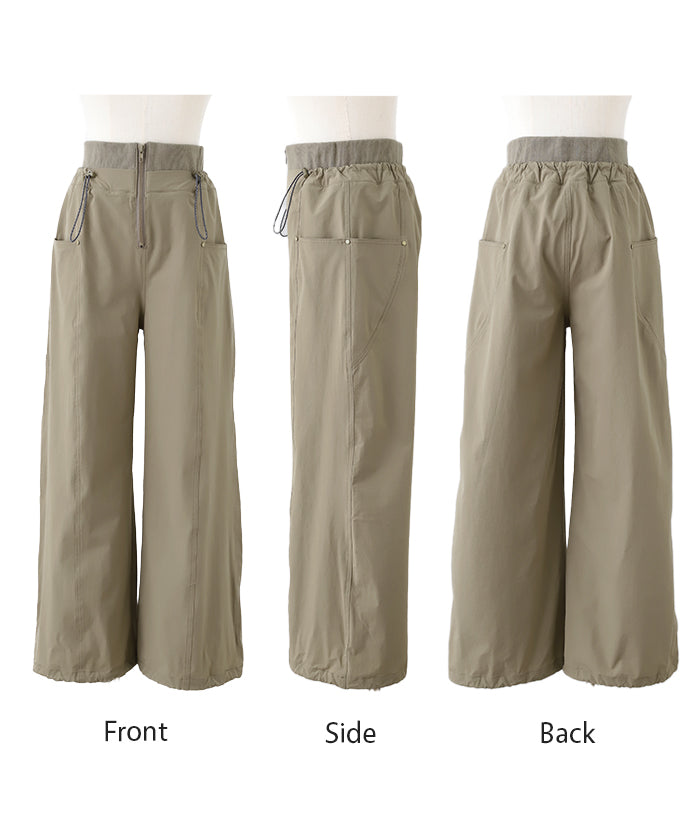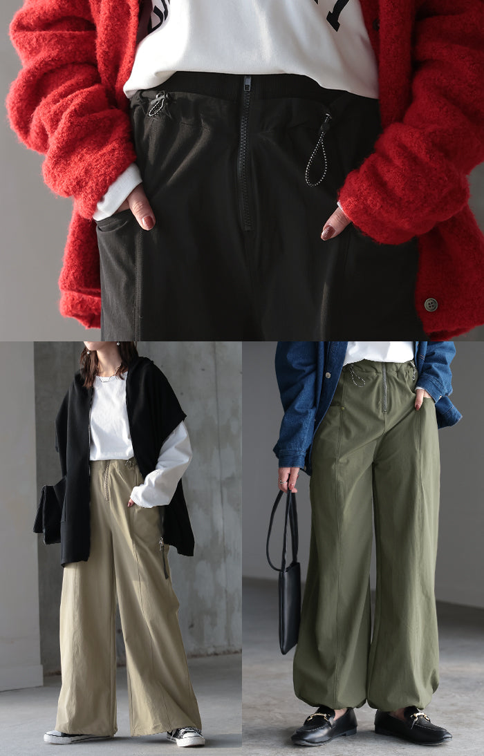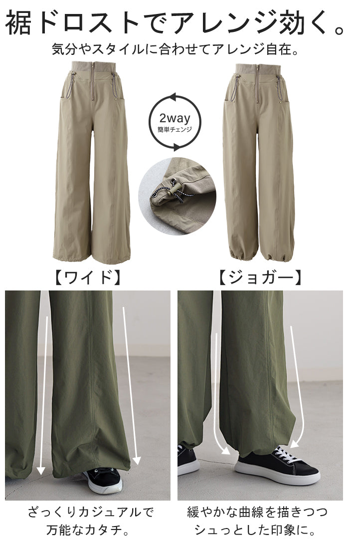 パンツ カーゴパンツ ワイドパンツ レディース ボトムス カーゴ ワイド ゴム ロング ジョガーパンツ ワークパンツ ズボン ストレート ナイロン 風 パラシュートパンツ 薄手 無地 大きいサイズ 体型カバー 軽い ベージュ 黒 ブラック カーキ 春 夏 HUG.U