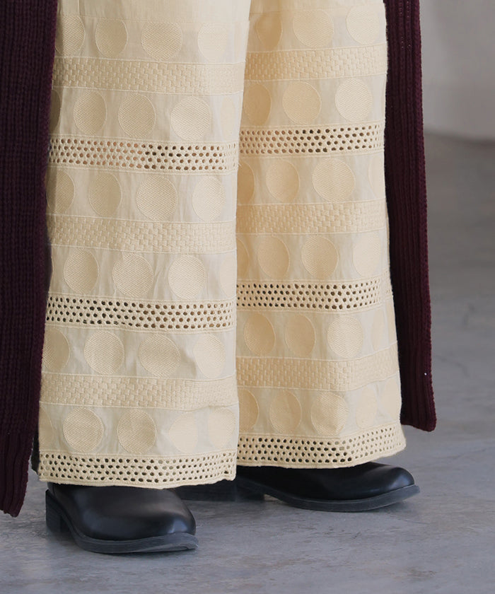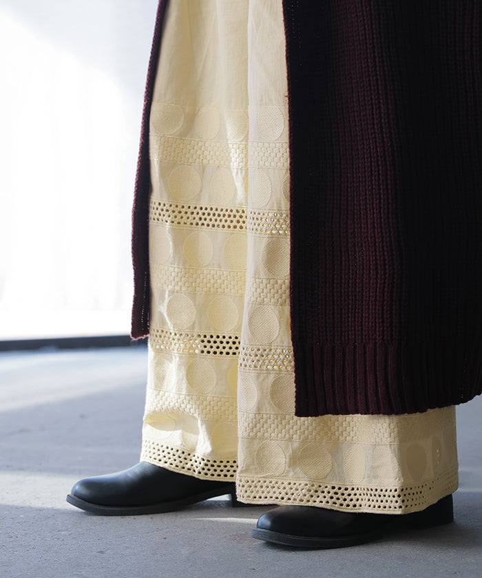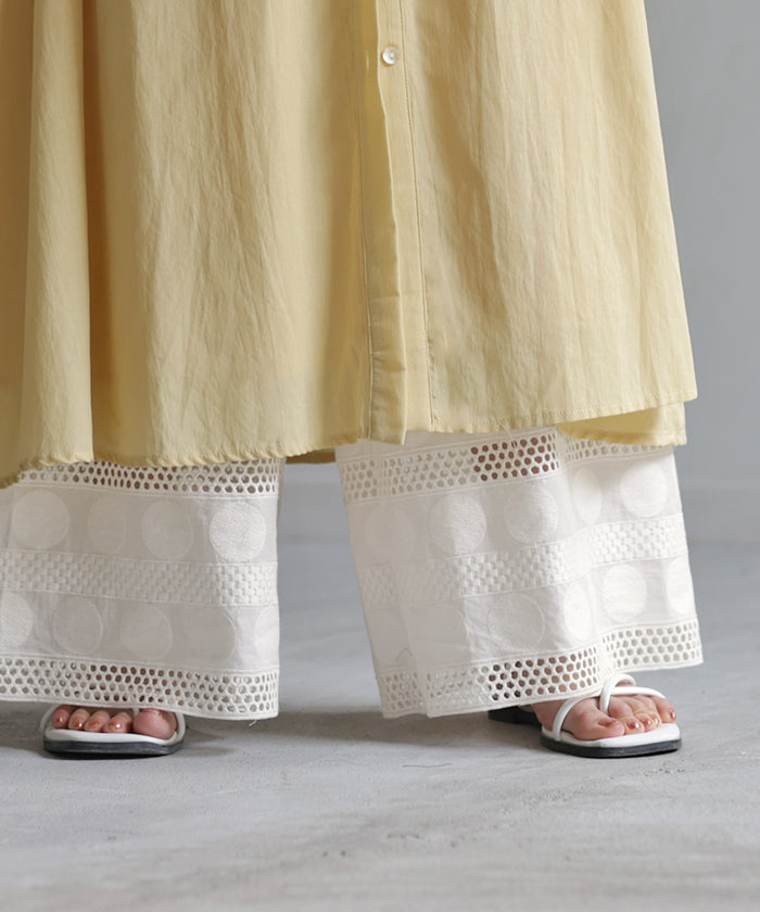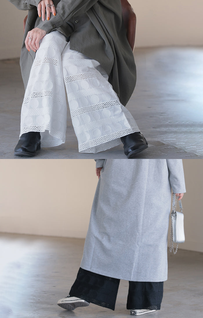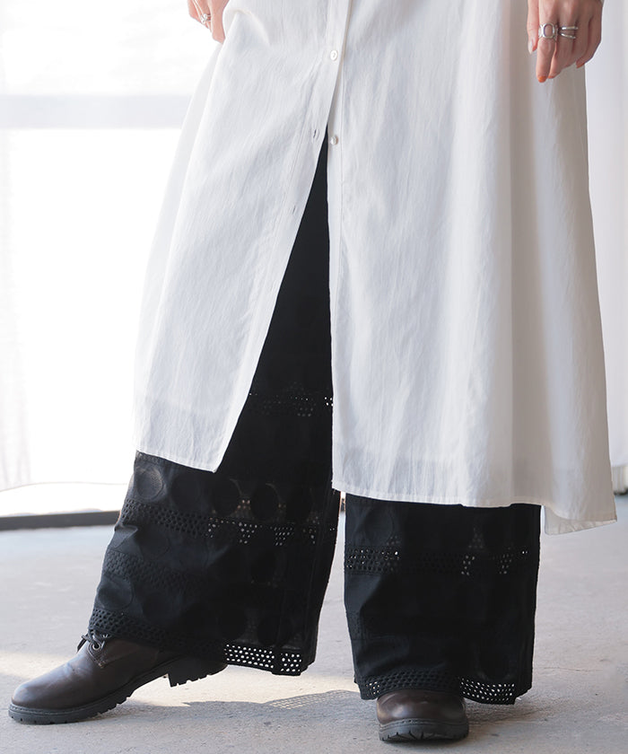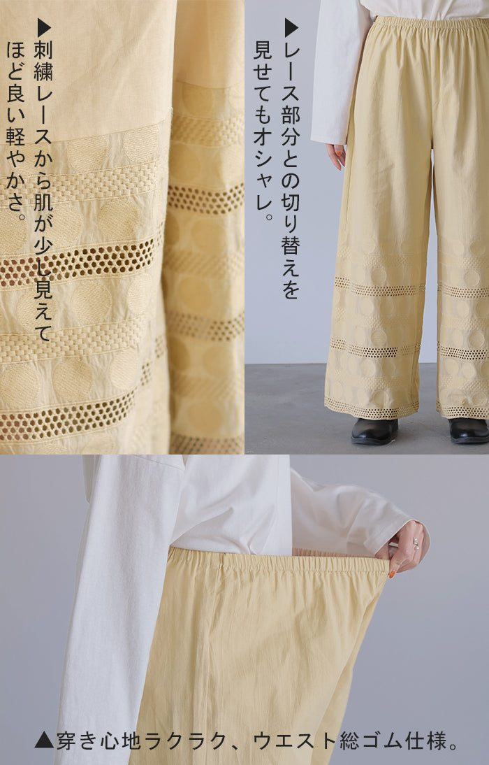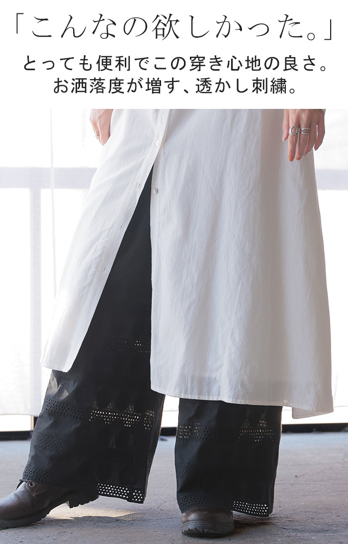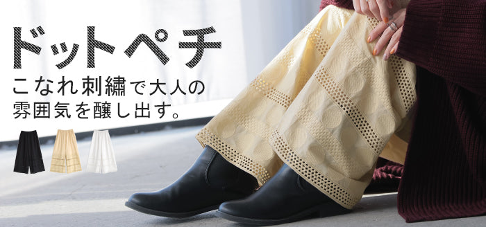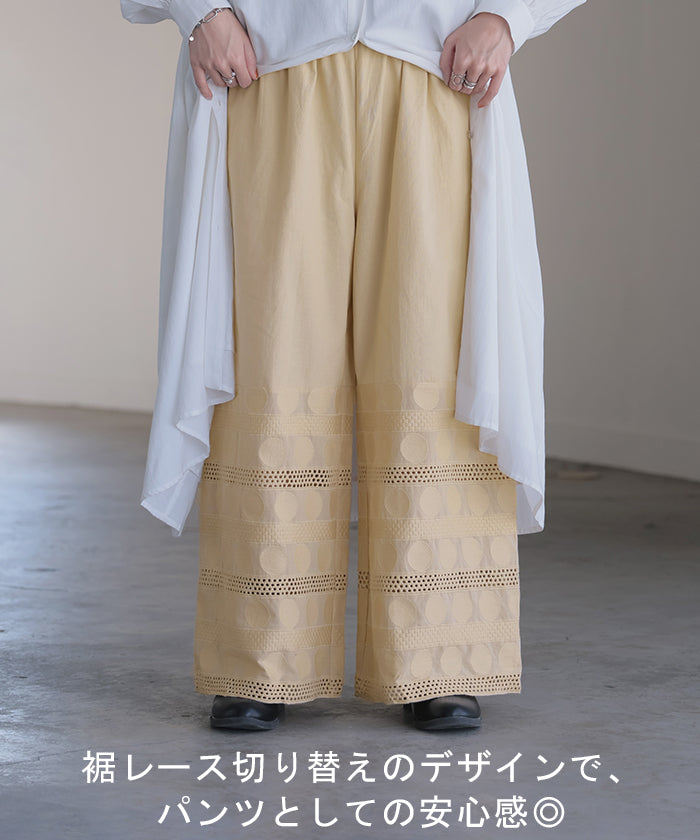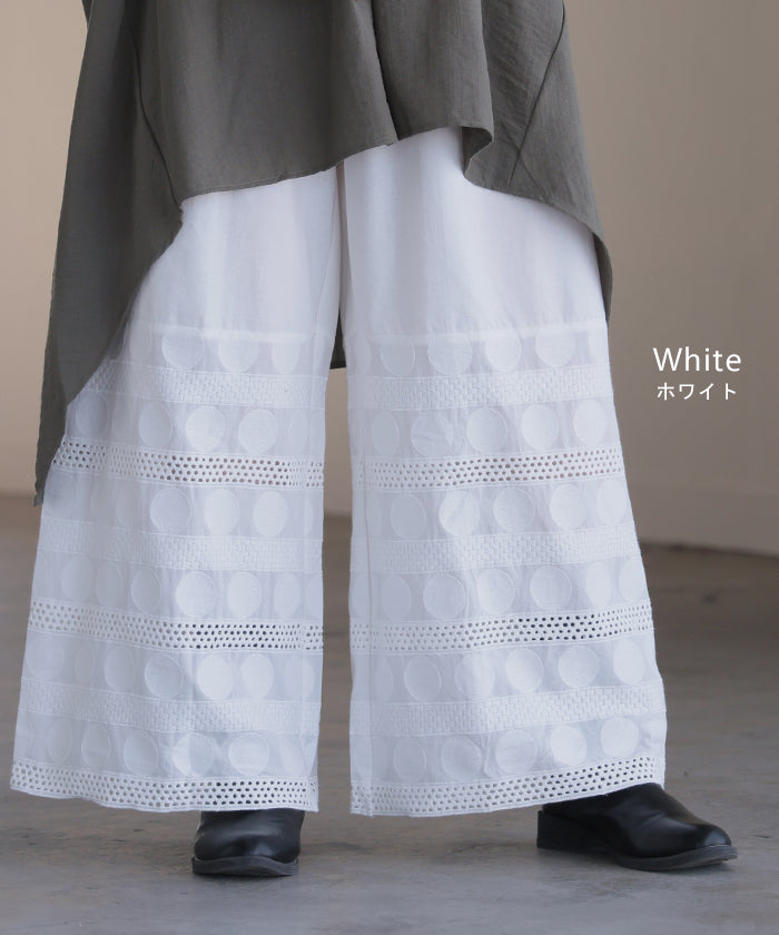 ペチパンツ 綿100% レディース レイヤード ペチコート レース 刺繍 ワイド パンツ 無地 コットン 選べる丈 シアー 切り替え ズボン フレア 裾パンツ ボトムス 体型カバー ウエストゴム ロング インナー 涼しい 重ね着 大きいサイズ 白 黒 春 夏 HUG.U