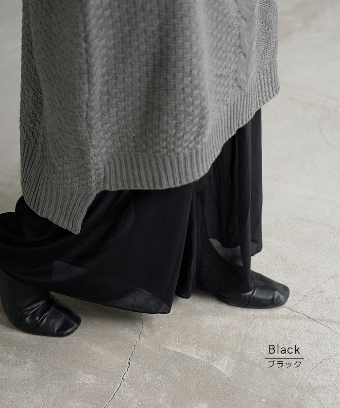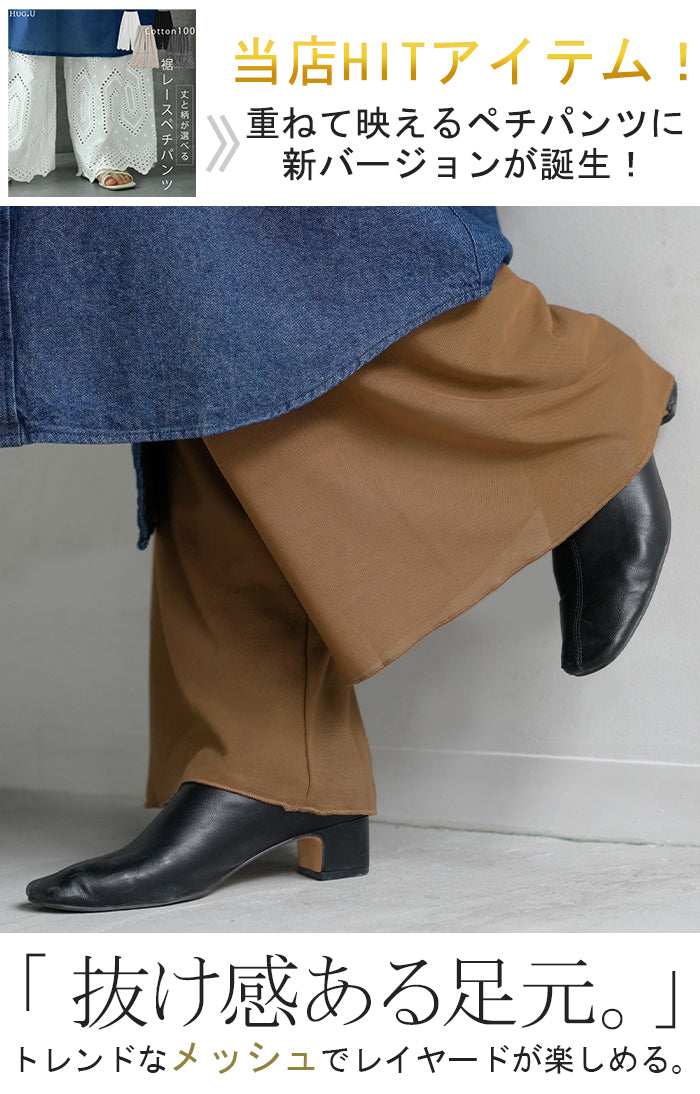 少し丈の短いワンピースに合わせるのに買いました。 まだ蒸し暑い日もあるので腰辺りの綿素材や裾メッシュなのはありがたい。 そして、なんにでも合わせやすい✨