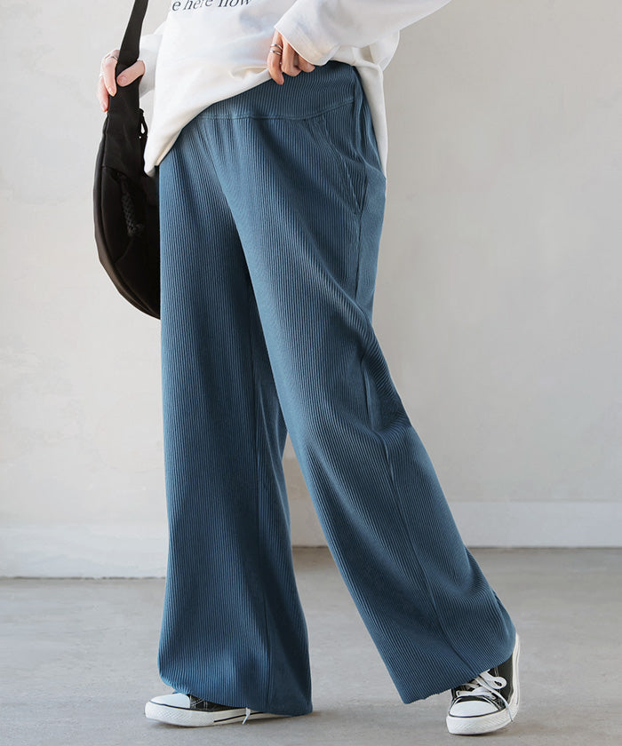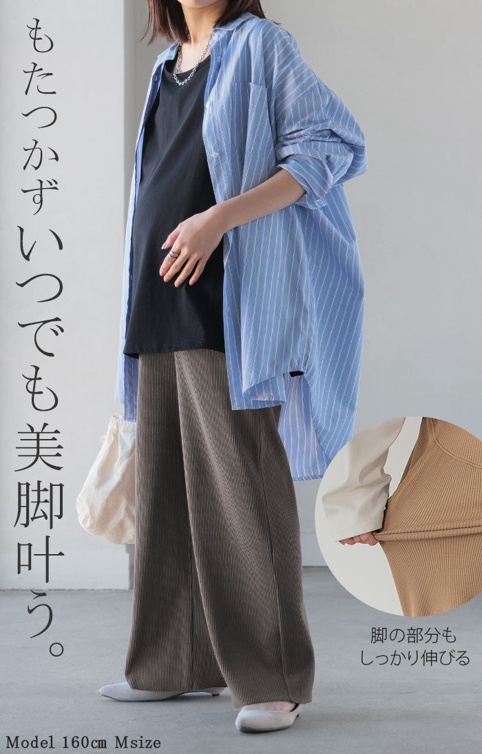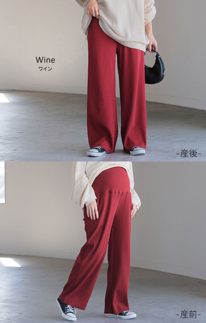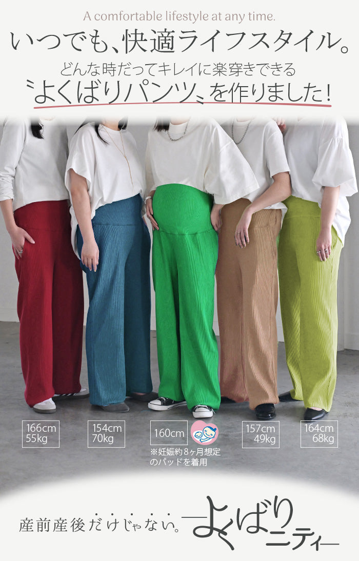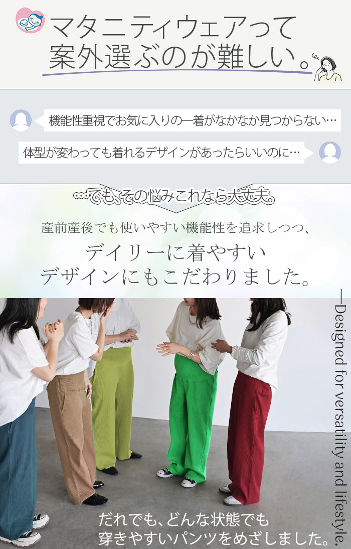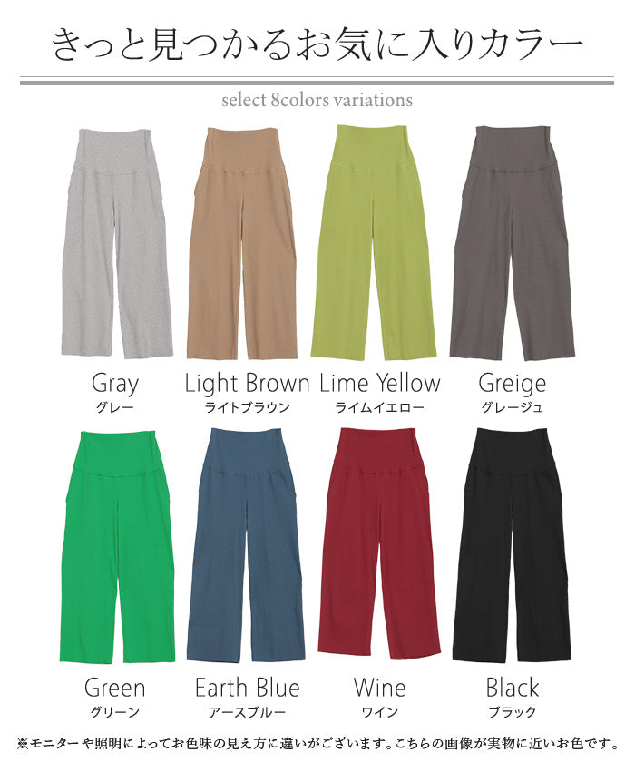 パンツ マタニティ セルフ カット レディース ボトムス カラーパンツ ワイド カラー ワイドパンツ ロング ロングパンツ 体型カバー ボトムス ボトム ストレート ズボン ゆったり ハイウエスト ストレッチ 美脚 大きいサイズ 黒 グレー 春 夏 HUG.U