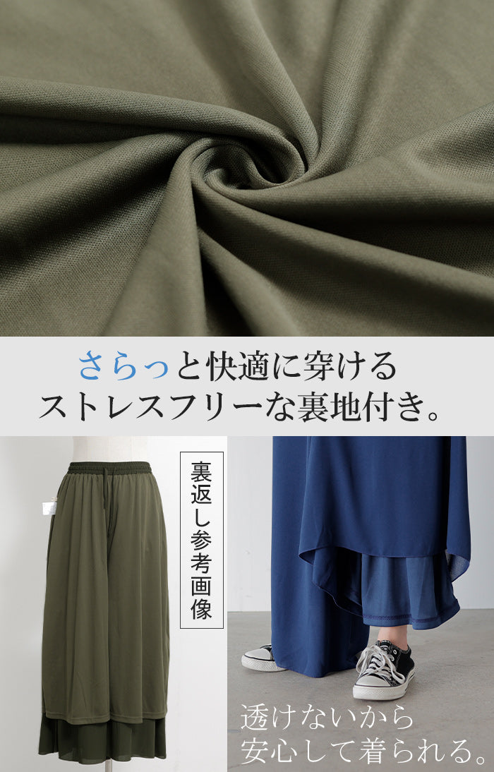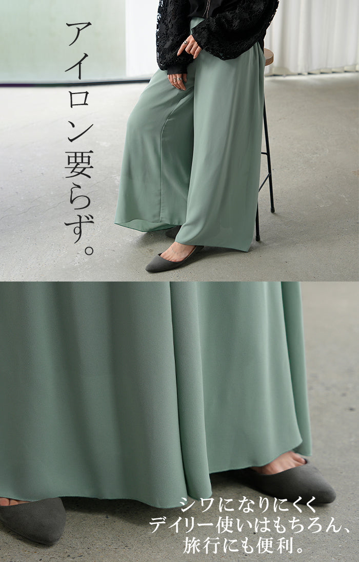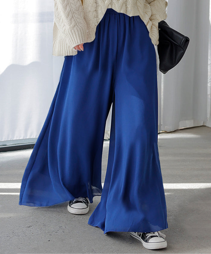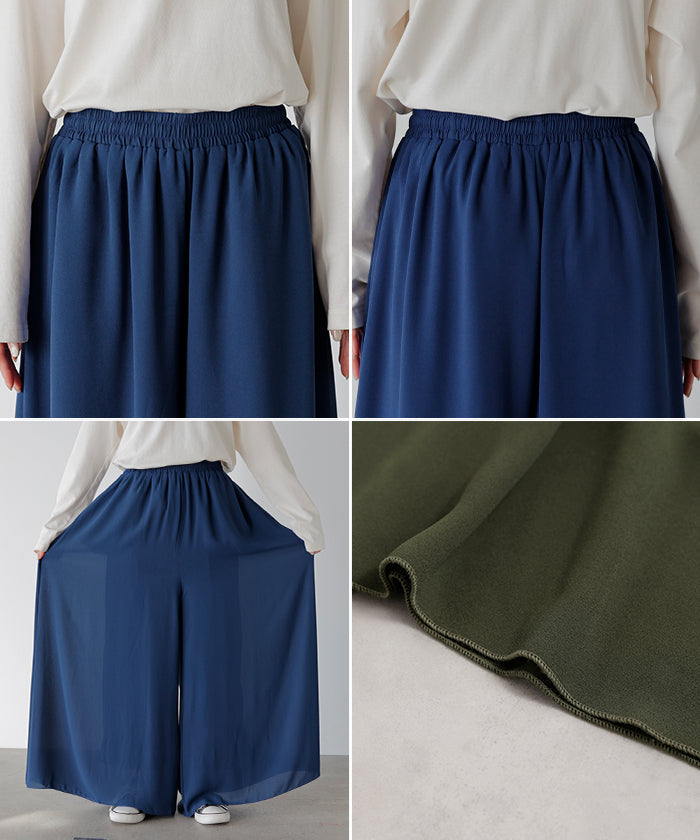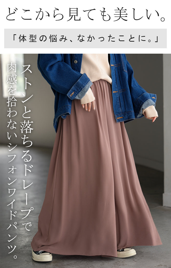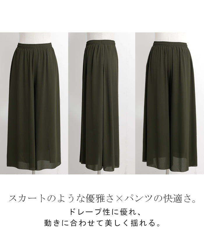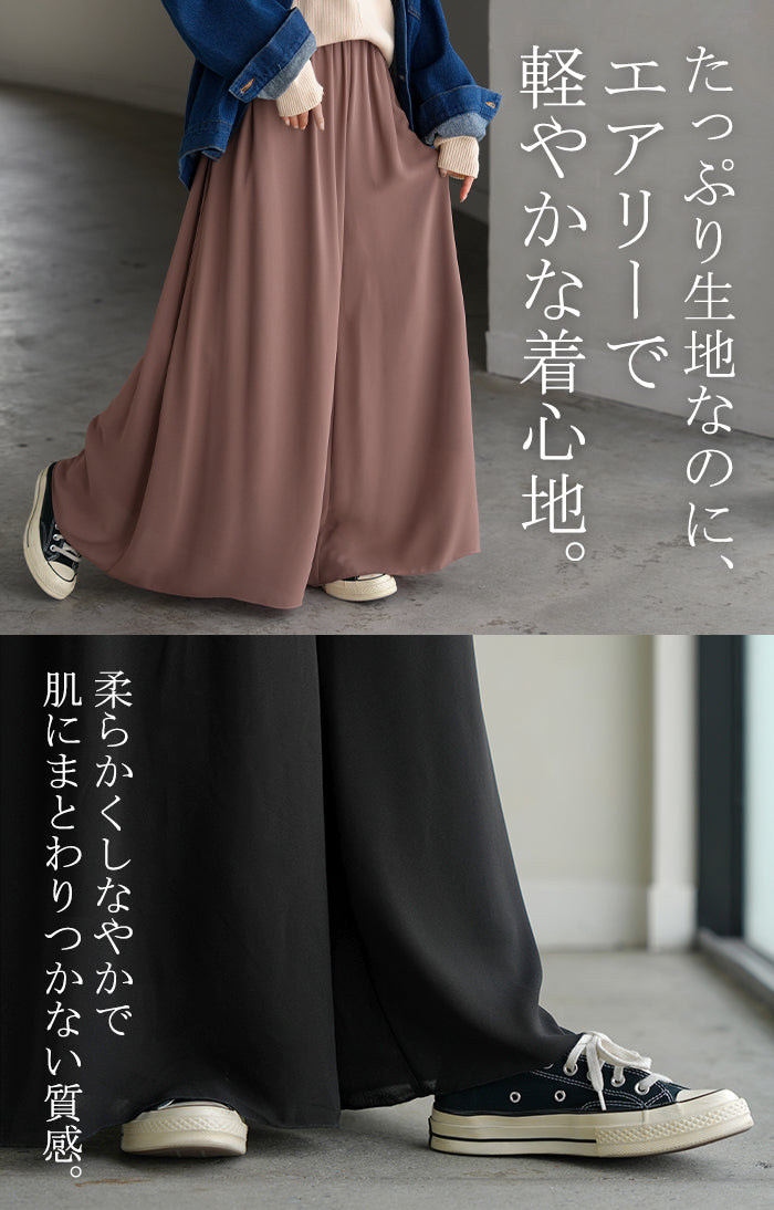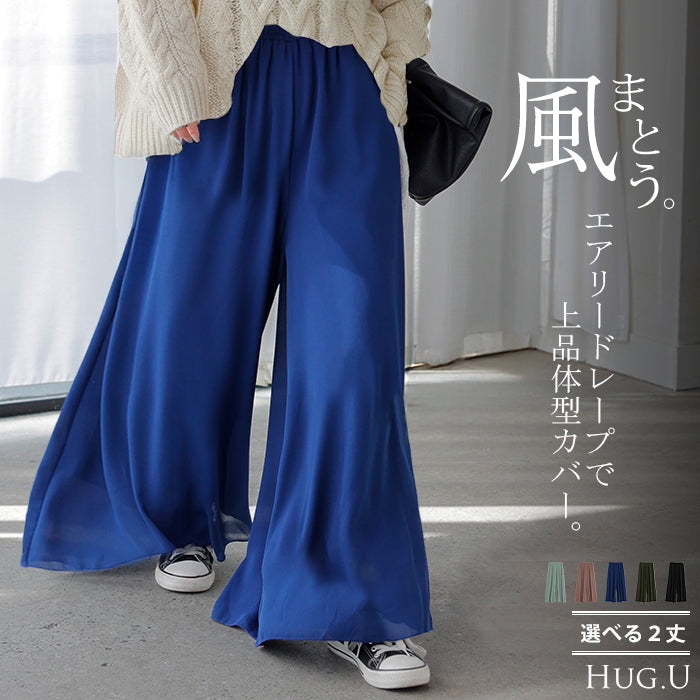 パンツ ワイド 選べる 2丈 シフォン ワイドパンツ レディース ロング ロングパンツ 体型カバー ボトムス ボトム フレア ストレート ズボン ゆったり ゴム ハイウエスト 軽量 ストレッチ 美脚 大きいサイズ カジュアル 黒 青 春 夏 HUG.U