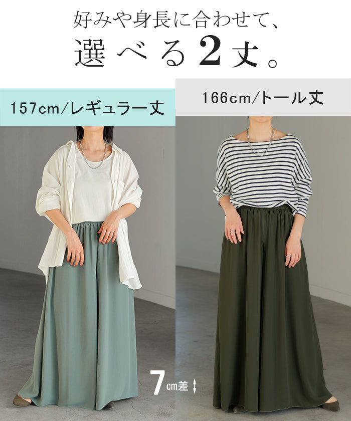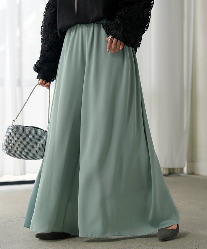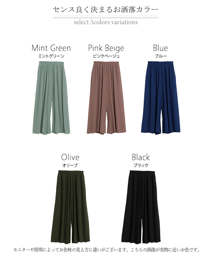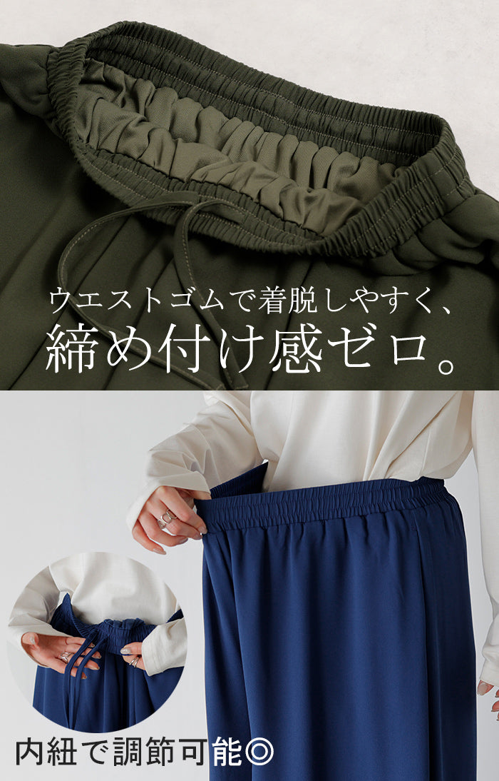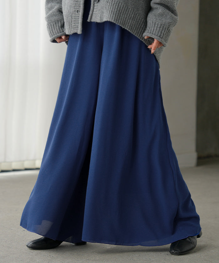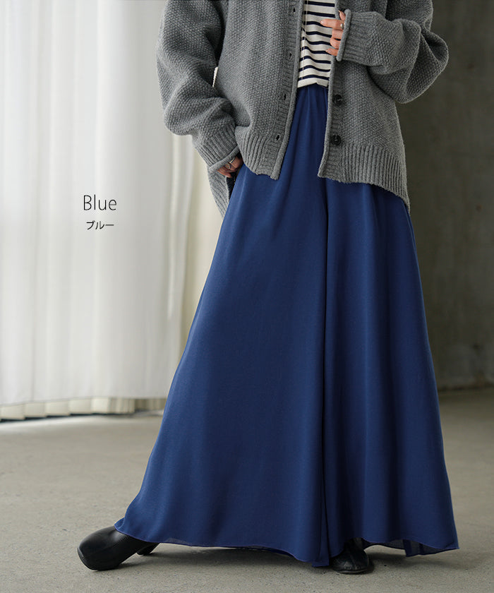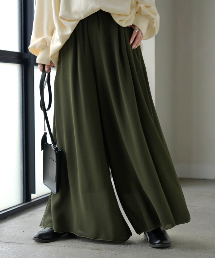 パンツ ワイド 選べる 2丈 シフォン ワイドパンツ レディース ロング ロングパンツ 体型カバー ボトムス ボトム フレア ストレート ズボン ゆったり ゴム ハイウエスト 軽量 ストレッチ 美脚 大きいサイズ カジュアル 黒 青 春 夏 HUG.U