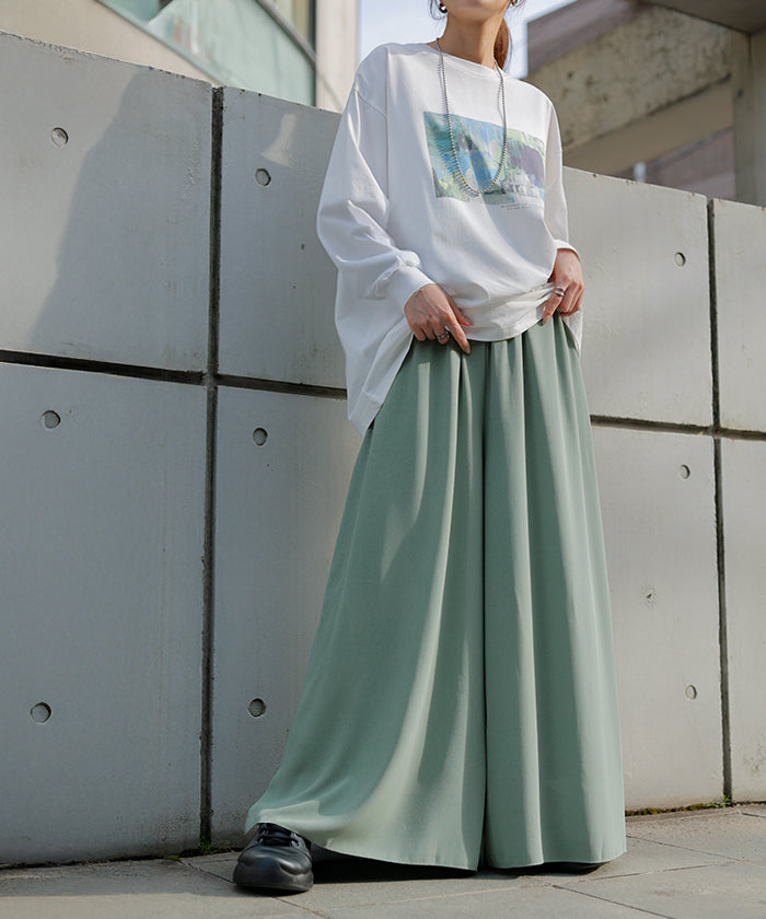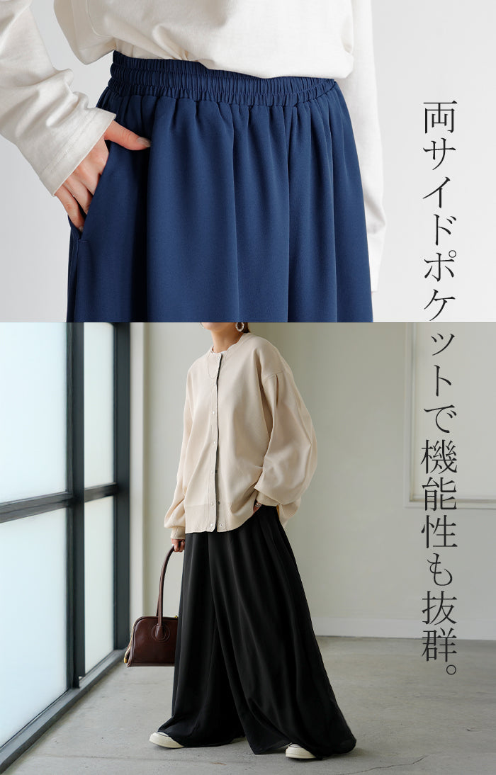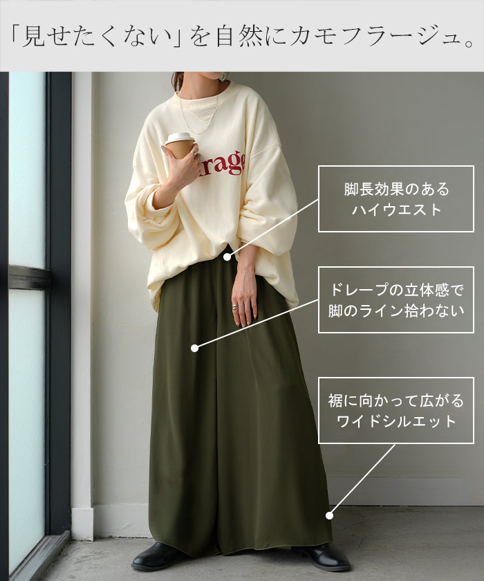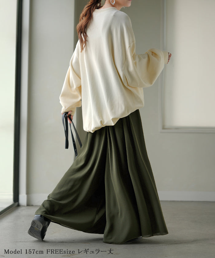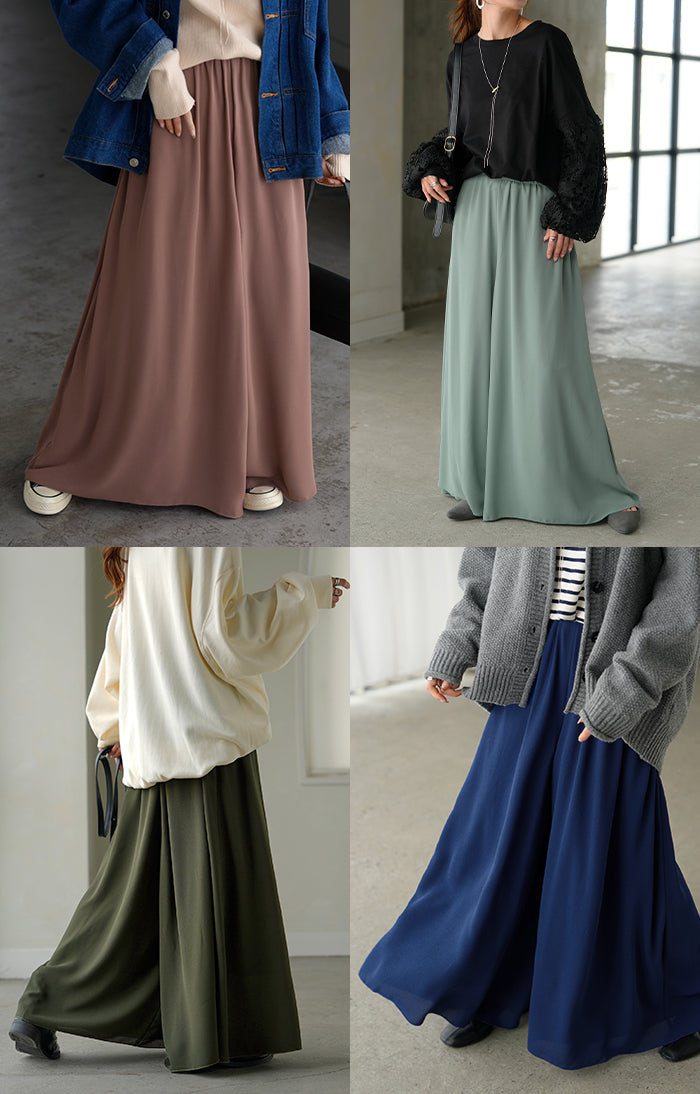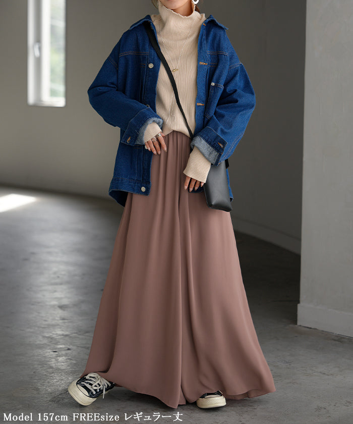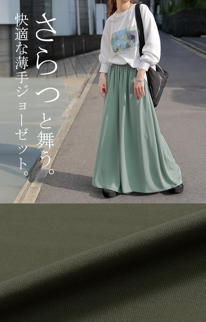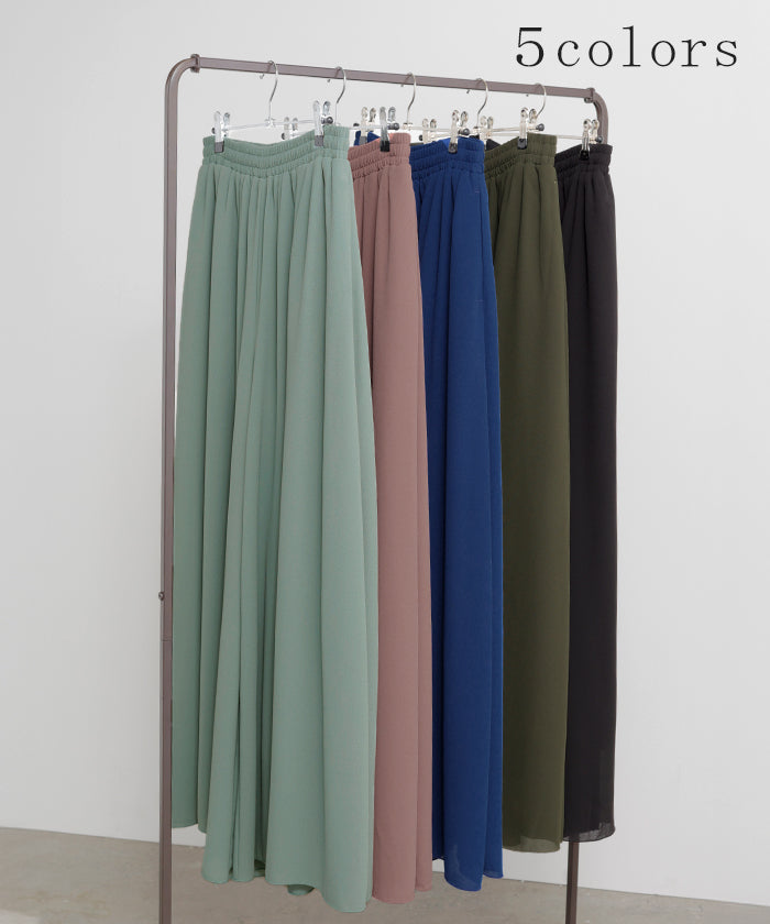 パンツ ワイド 選べる 2丈 シフォン ワイドパンツ レディース ロング ロングパンツ 体型カバー ボトムス ボトム フレア ストレート ズボン ゆったり ゴム ハイウエスト 軽量 ストレッチ 美脚 大きいサイズ カジュアル 黒 青 春 夏 HUG.U