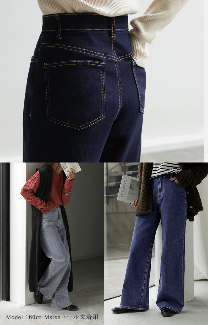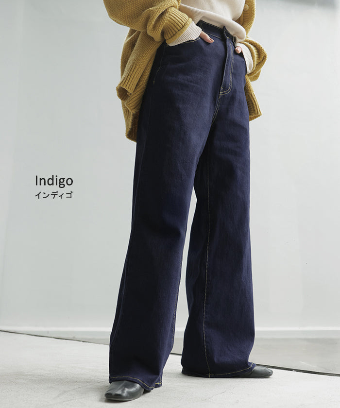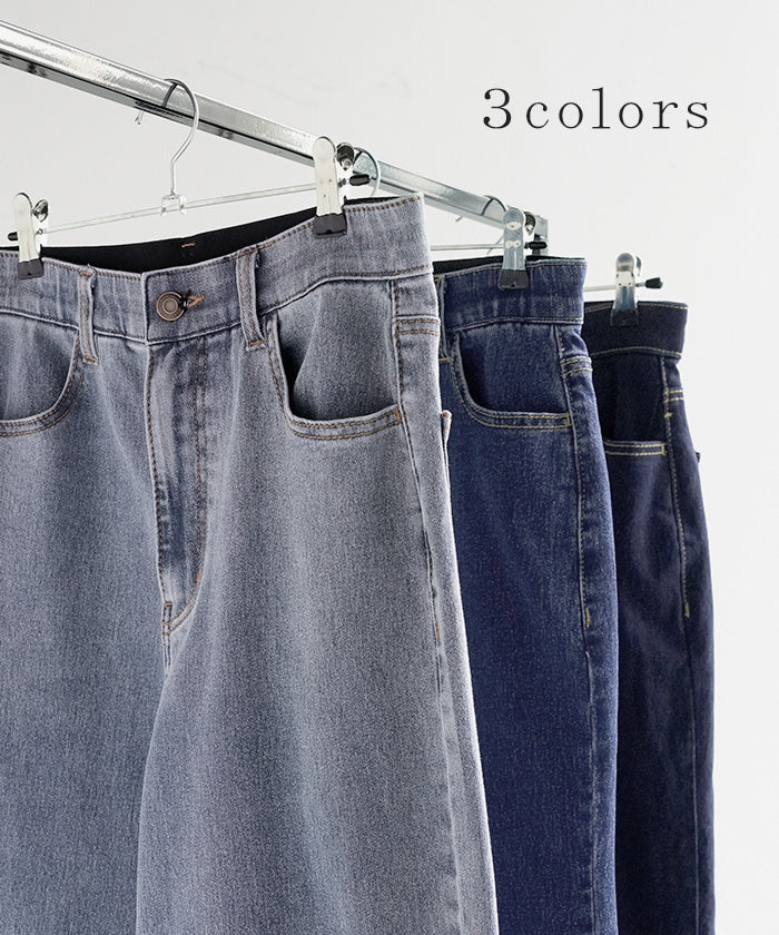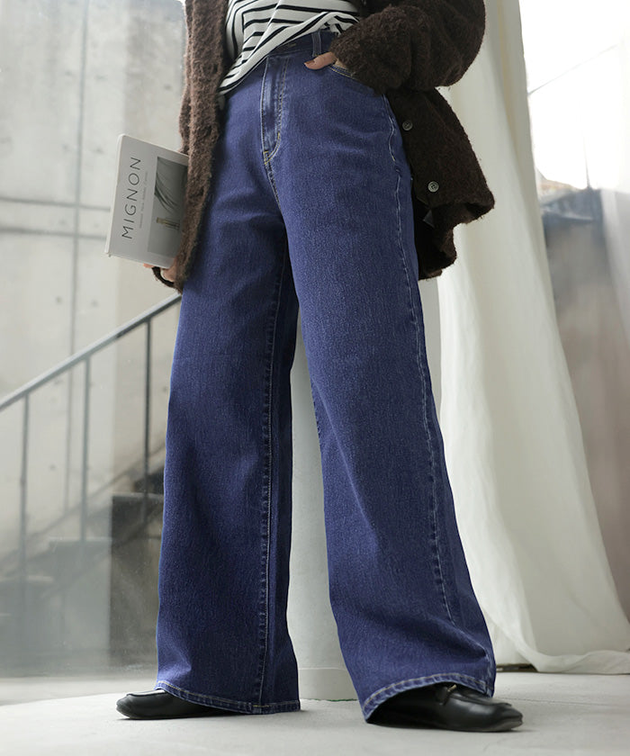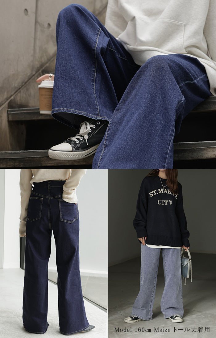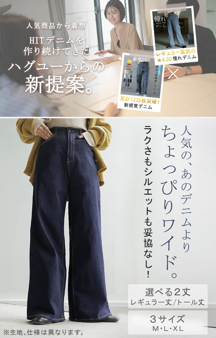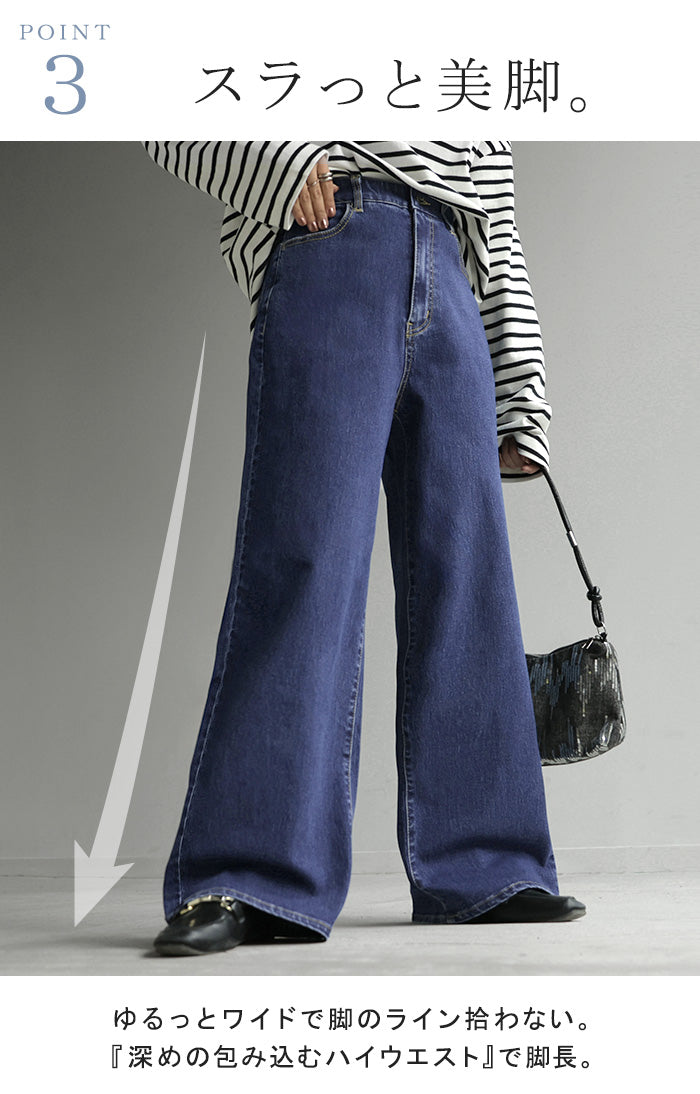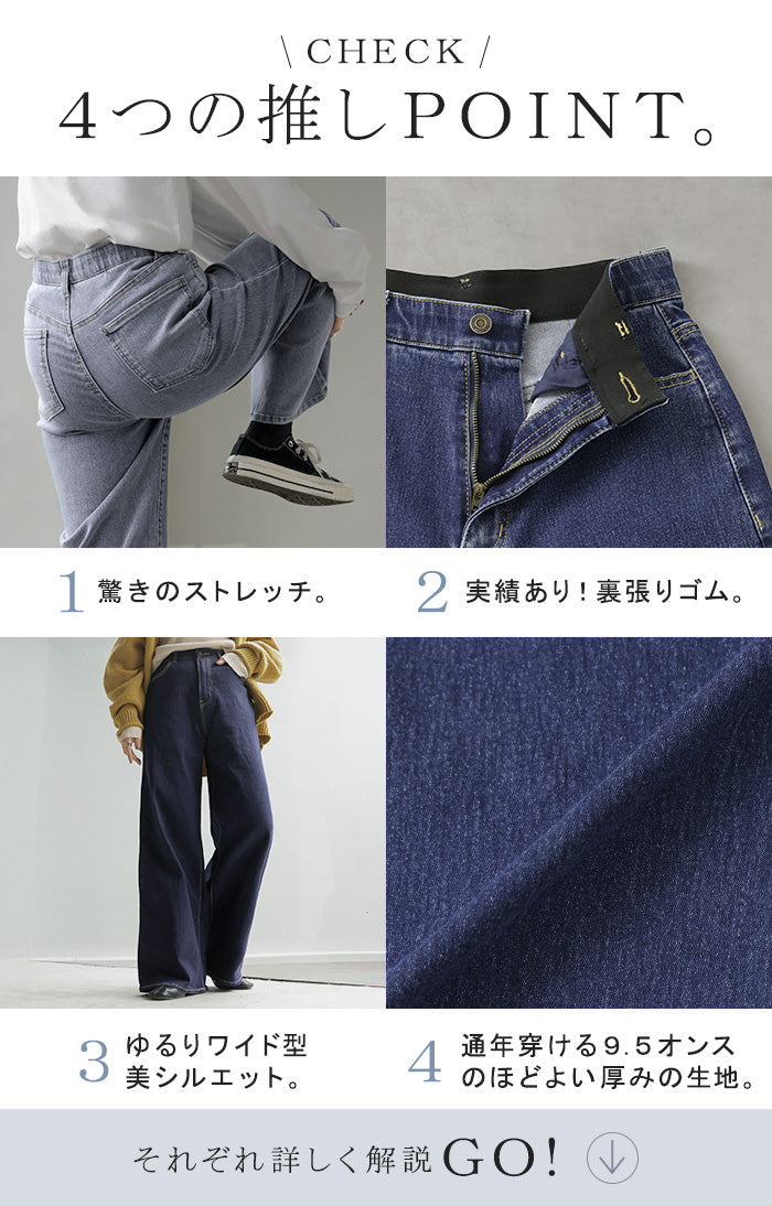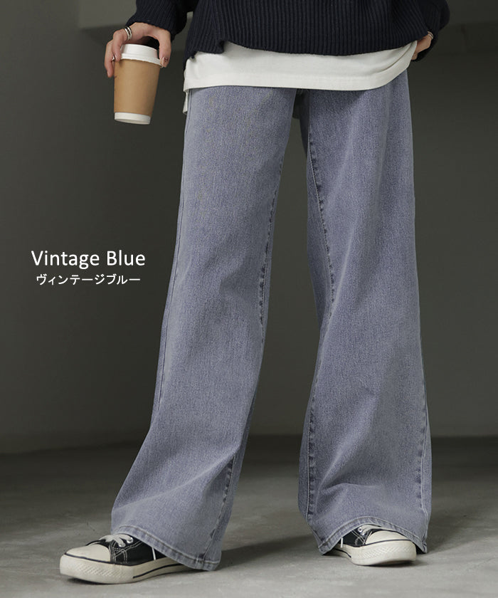 2025AW新作 デニム パンツ 美脚 デニムパンツ レディース ワイドパンツ ワイド ジーンズ ジーパン 体型カバー ボトムス ボトム ストレート ズボン ゆったり ハイウエスト 伸びる ゴム ストレッチ 大きいサイズ 秋 冬 HUG.U