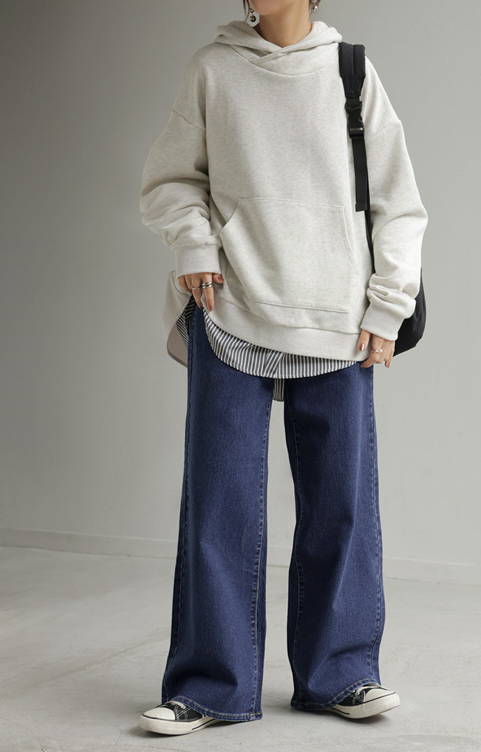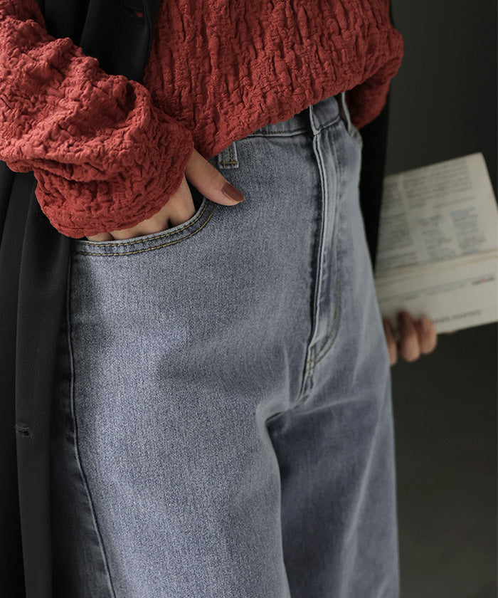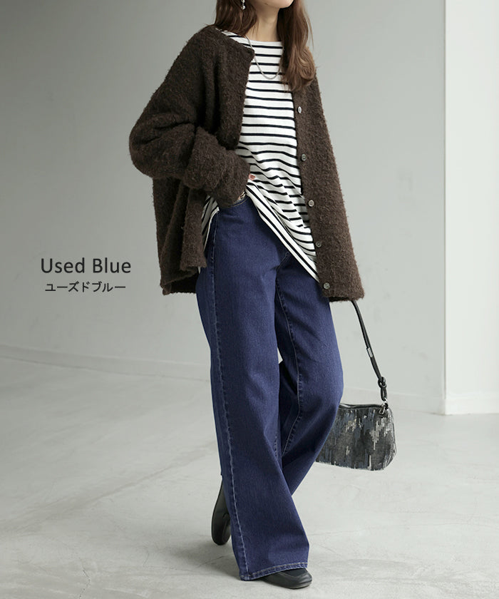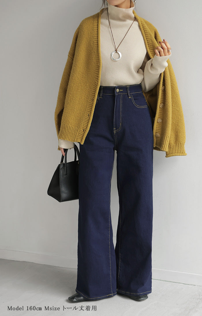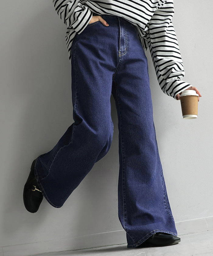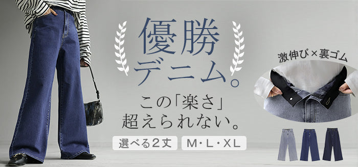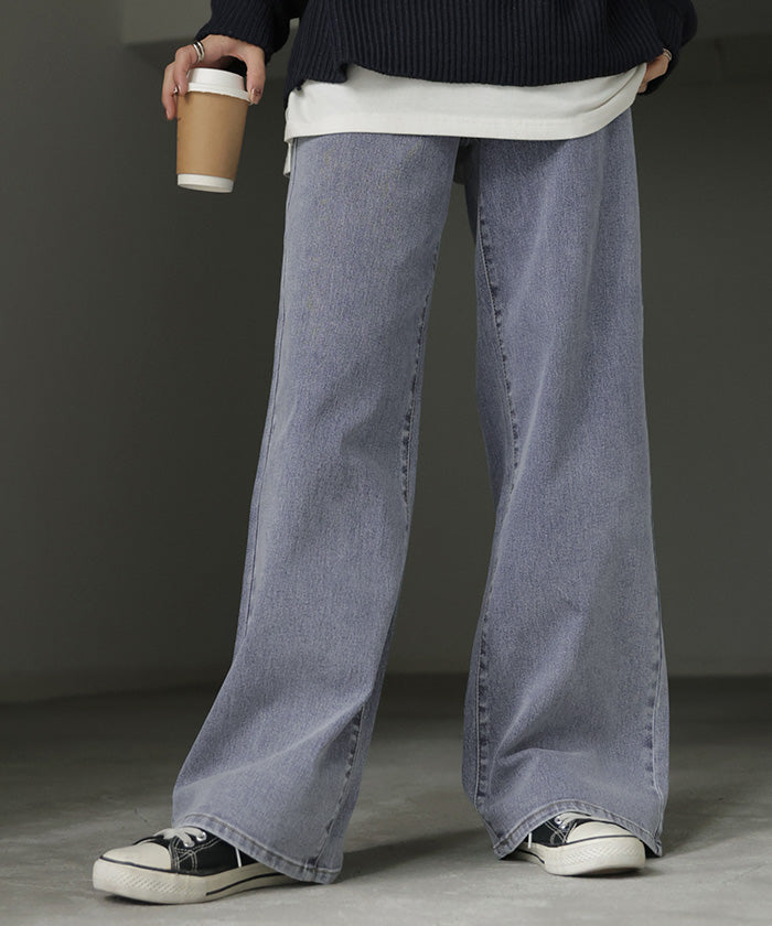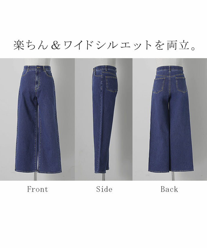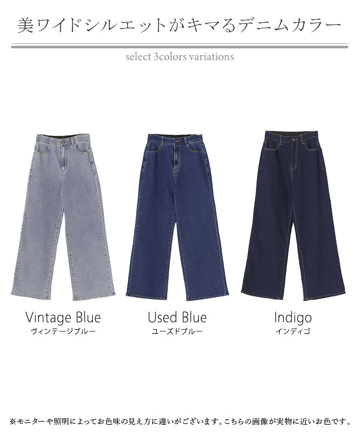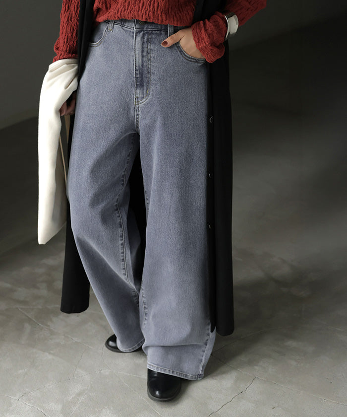 2025AW新作 デニム パンツ 美脚 デニムパンツ レディース ワイドパンツ ワイド ジーンズ ジーパン 体型カバー ボトムス ボトム ストレート ズボン ゆったり ハイウエスト 伸びる ゴム ストレッチ 大きいサイズ 秋 冬 HUG.U