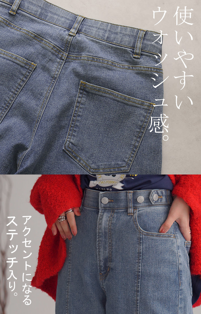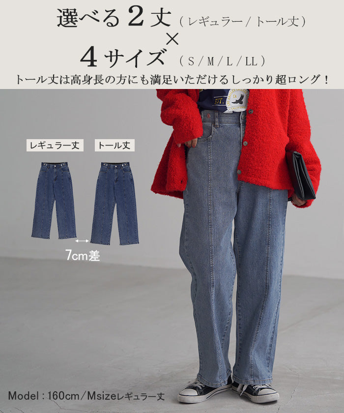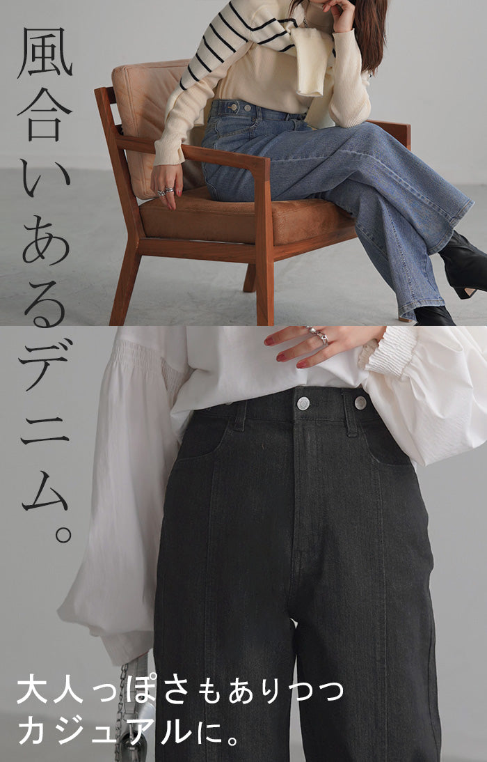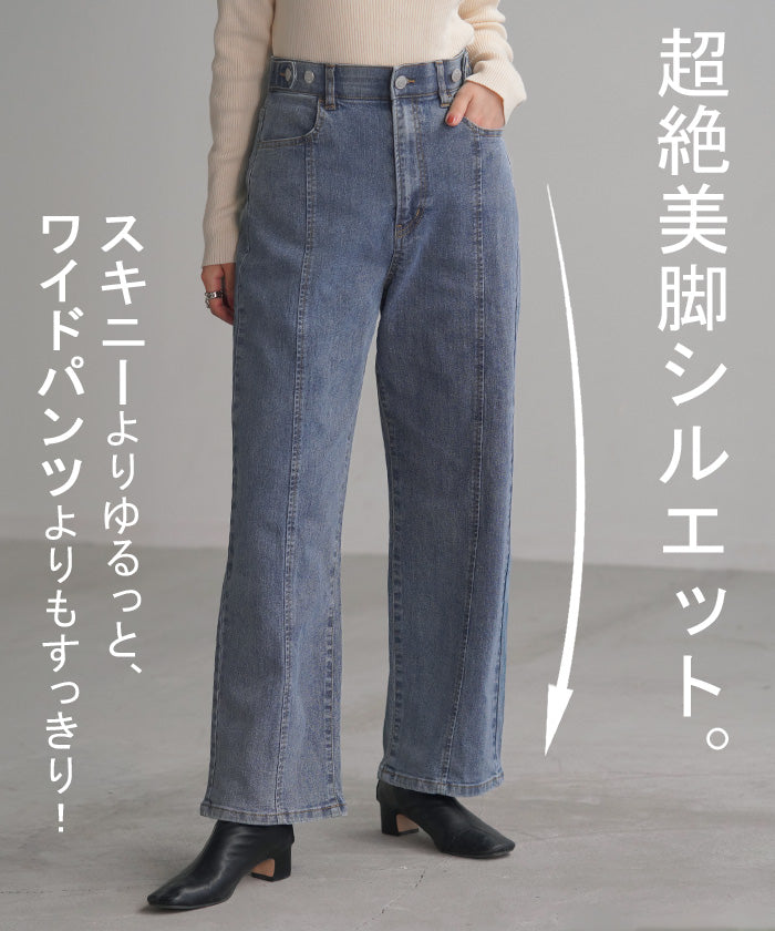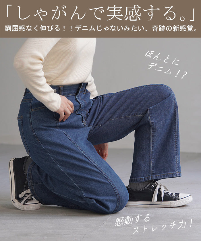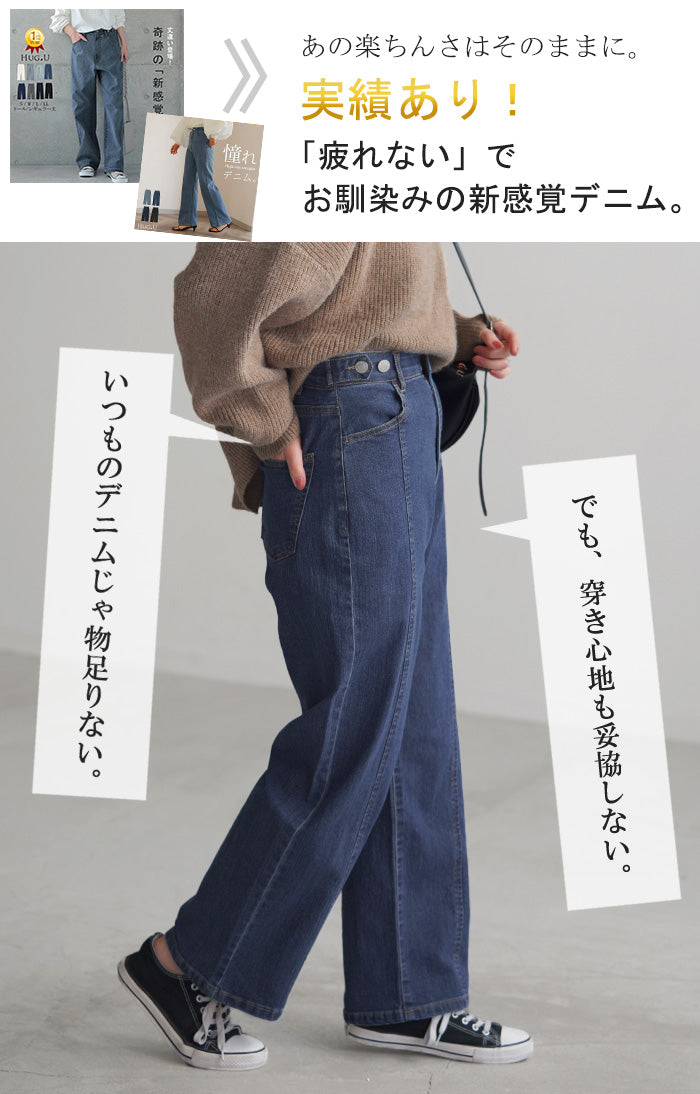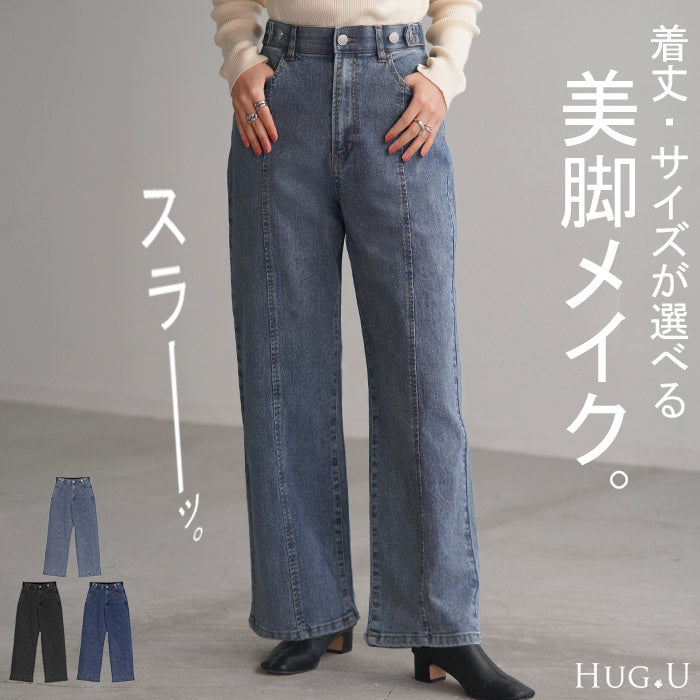 デニム パンツ デニムパンツ レディース ワイドパンツ ワイド センターライン 大きいサイズ ジーンズ ジーパン 体型カバー ボトムス ストレート ズボン ゆったり セミワイド セミワイドパンツ ハイウエスト 伸びる ゴム ストレッチ 美脚 春 夏 HUG.U