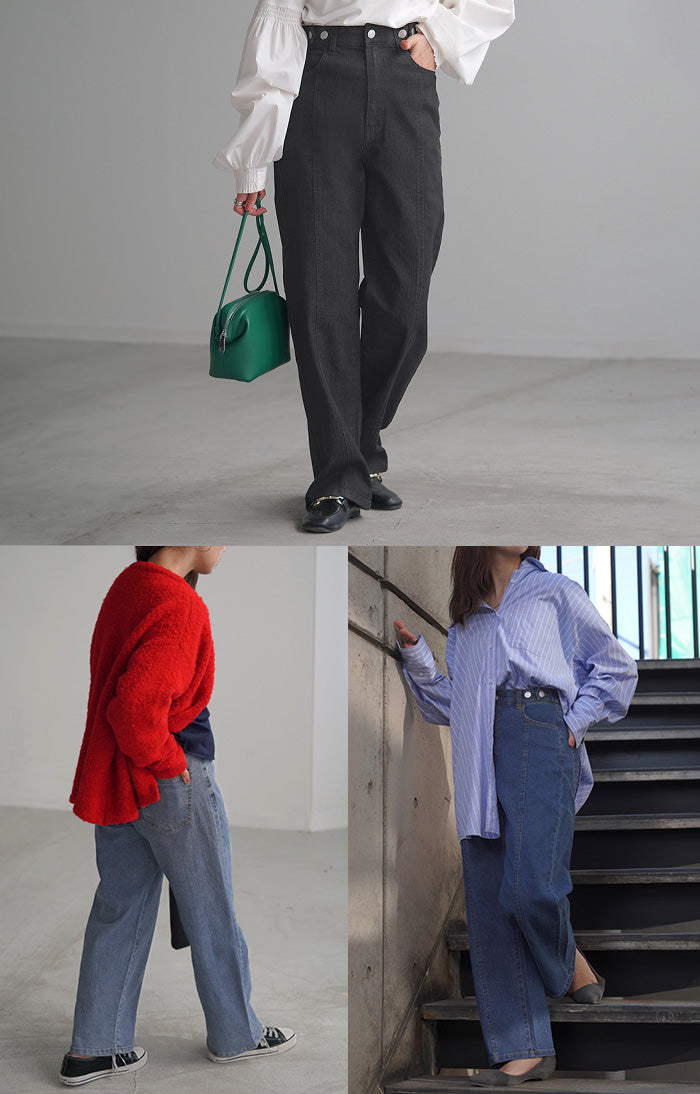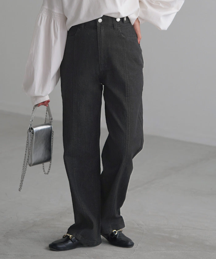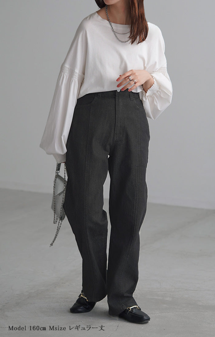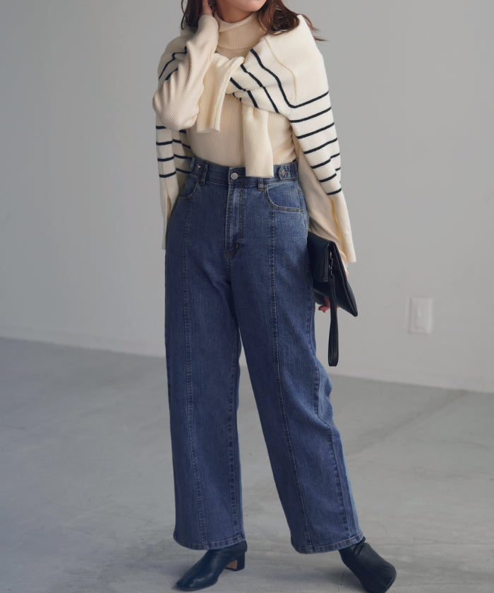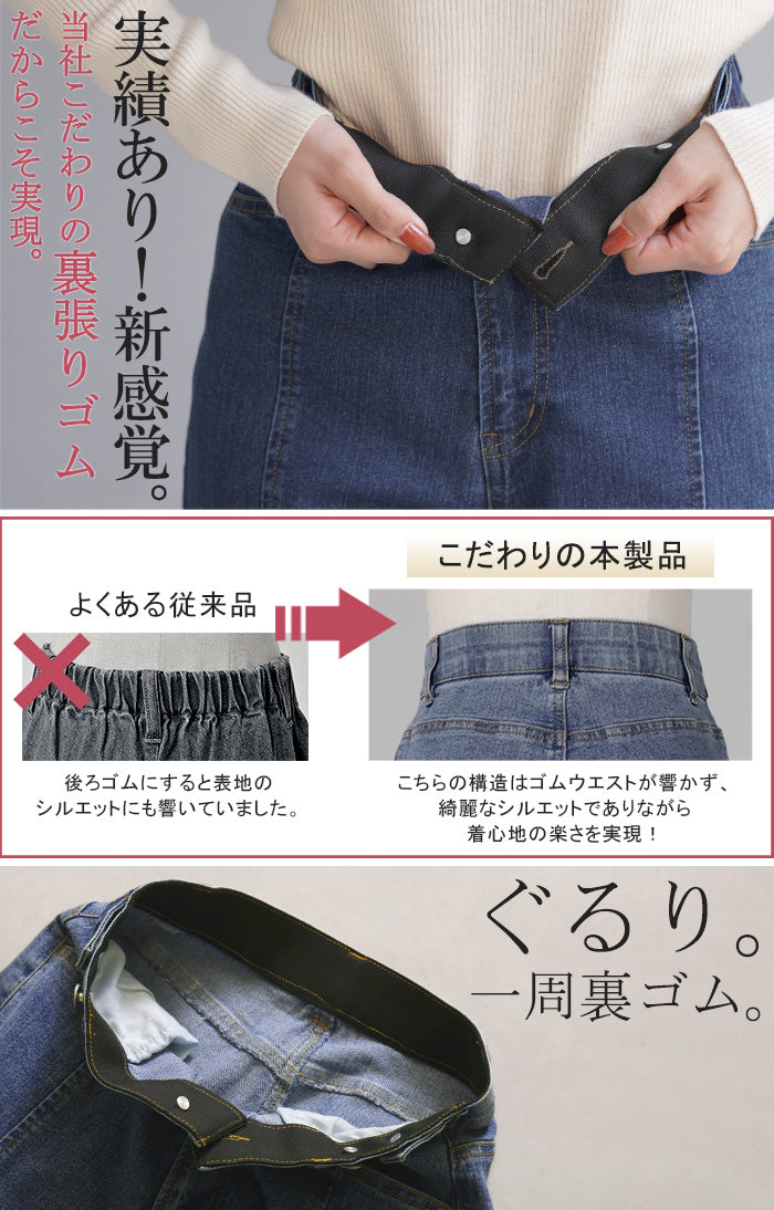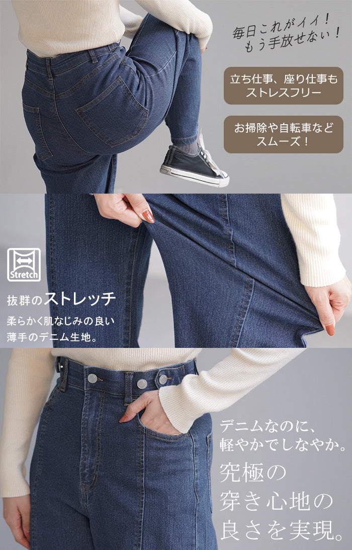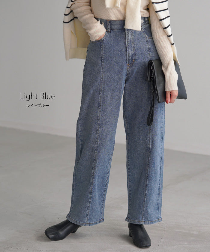 デニム パンツ デニムパンツ レディース ワイドパンツ ワイド センターライン 大きいサイズ ジーンズ ジーパン 体型カバー ボトムス ストレート ズボン ゆったり セミワイド セミワイドパンツ ハイウエスト 伸びる ゴム ストレッチ 美脚 春 夏 HUG.U