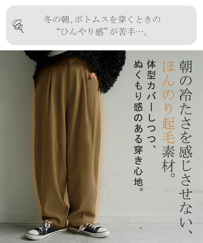2025AW新作 パンツ 裏起毛 コクーン レディース ワイド ワイドパンツ ロング ロングパンツ テーパードパンツ スラックス 微起毛 タック 体型カバー ボトムス ゆったり ハイウエスト ウエストゴム オフィスカジュアル ストレッチ 大きいサイズ 黒 グレー 秋 冬 HUG.U