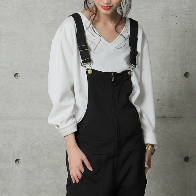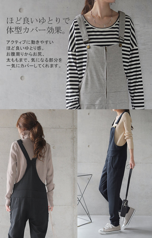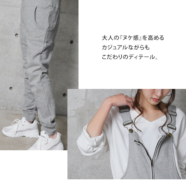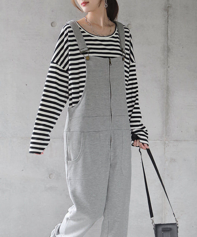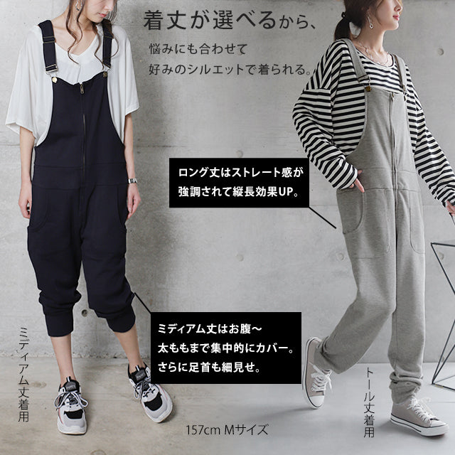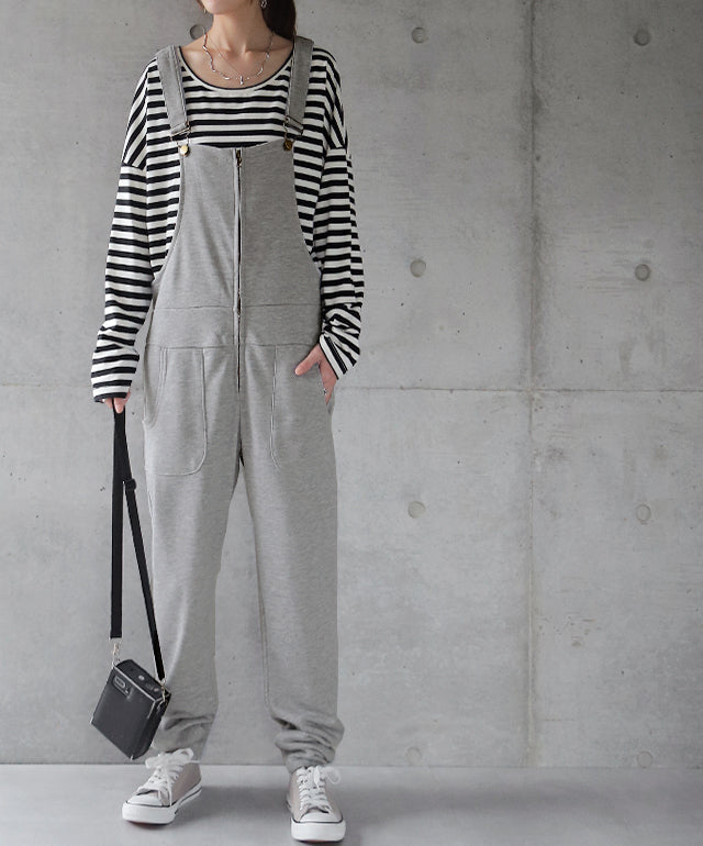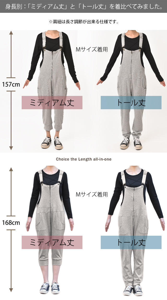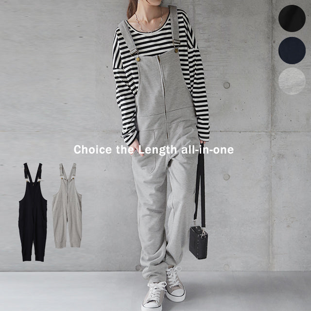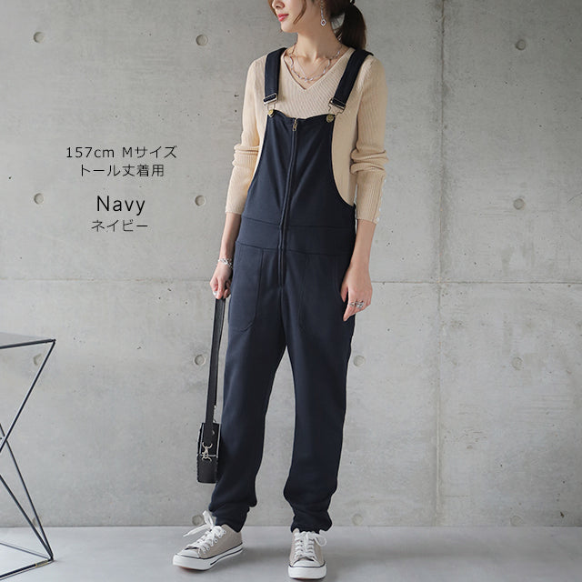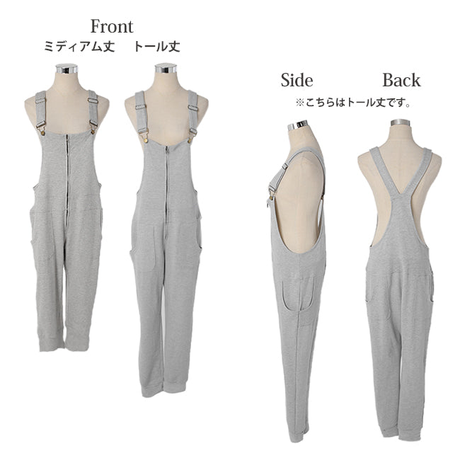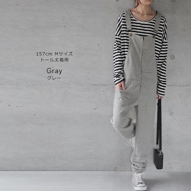 スウェットオールインワン。トール丈とミディアム丈の2タイプからお選び頂けます。スウェット素材で着やすさは抜群で、カジュアルスタイルが完成されます。1着は持っておきたいオールインワン。トール丈とミディアム丈で色違いでも欲しくります。