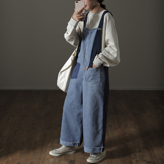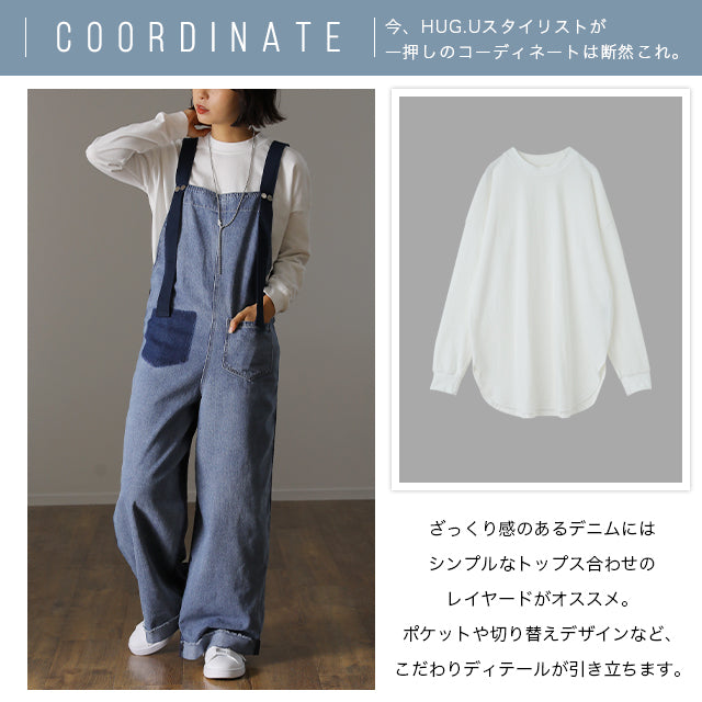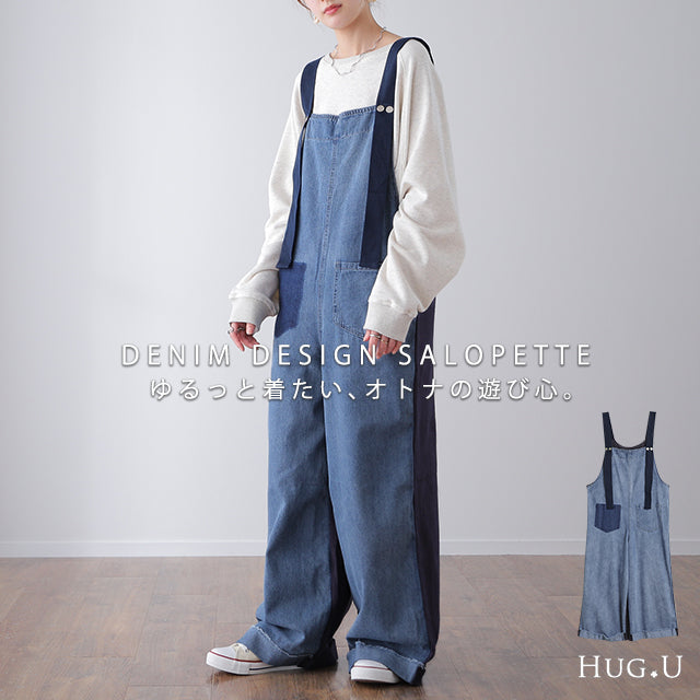 オールインワン レディース サロペット 体型カバー デニムデニムオールインワン 大きいサイズ フリーサイズ サロペ つなぎ ワイドパンツ ワイド オーバーオール セレカジ パンツ ボトムス ロング オーバーオール 切り替え 体型カバー 春 夏 HUG.U